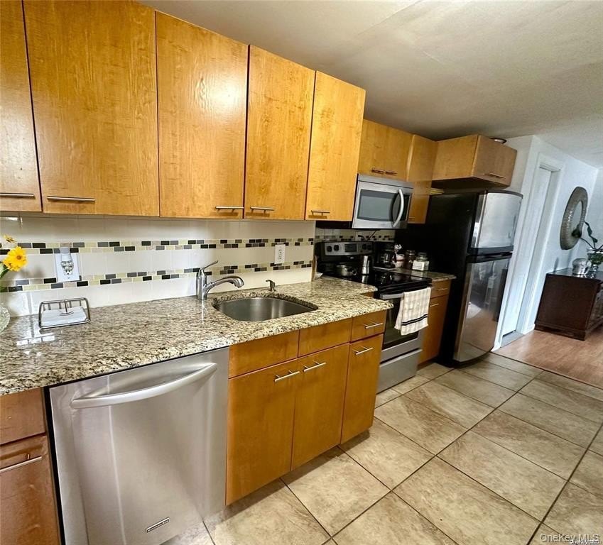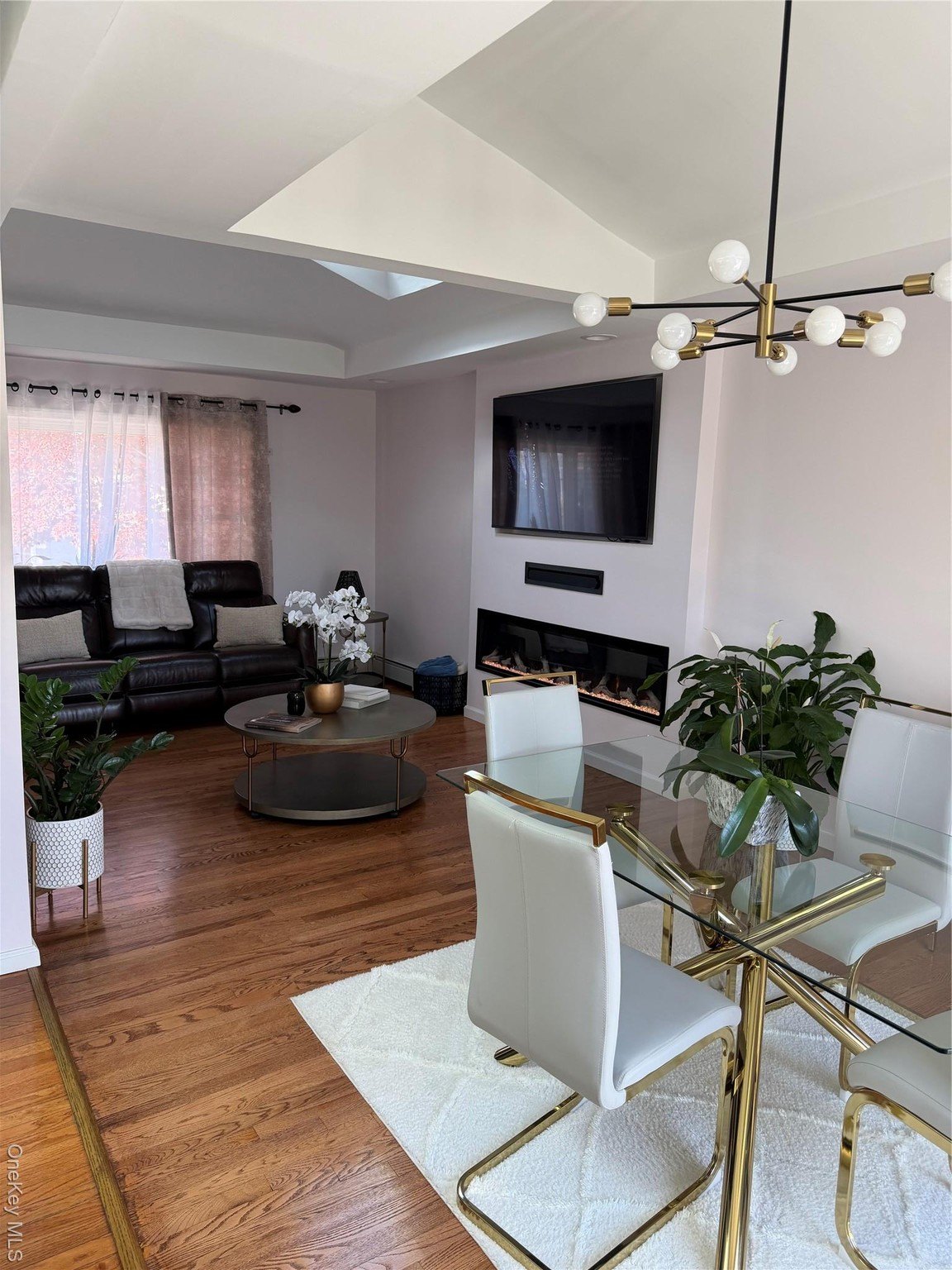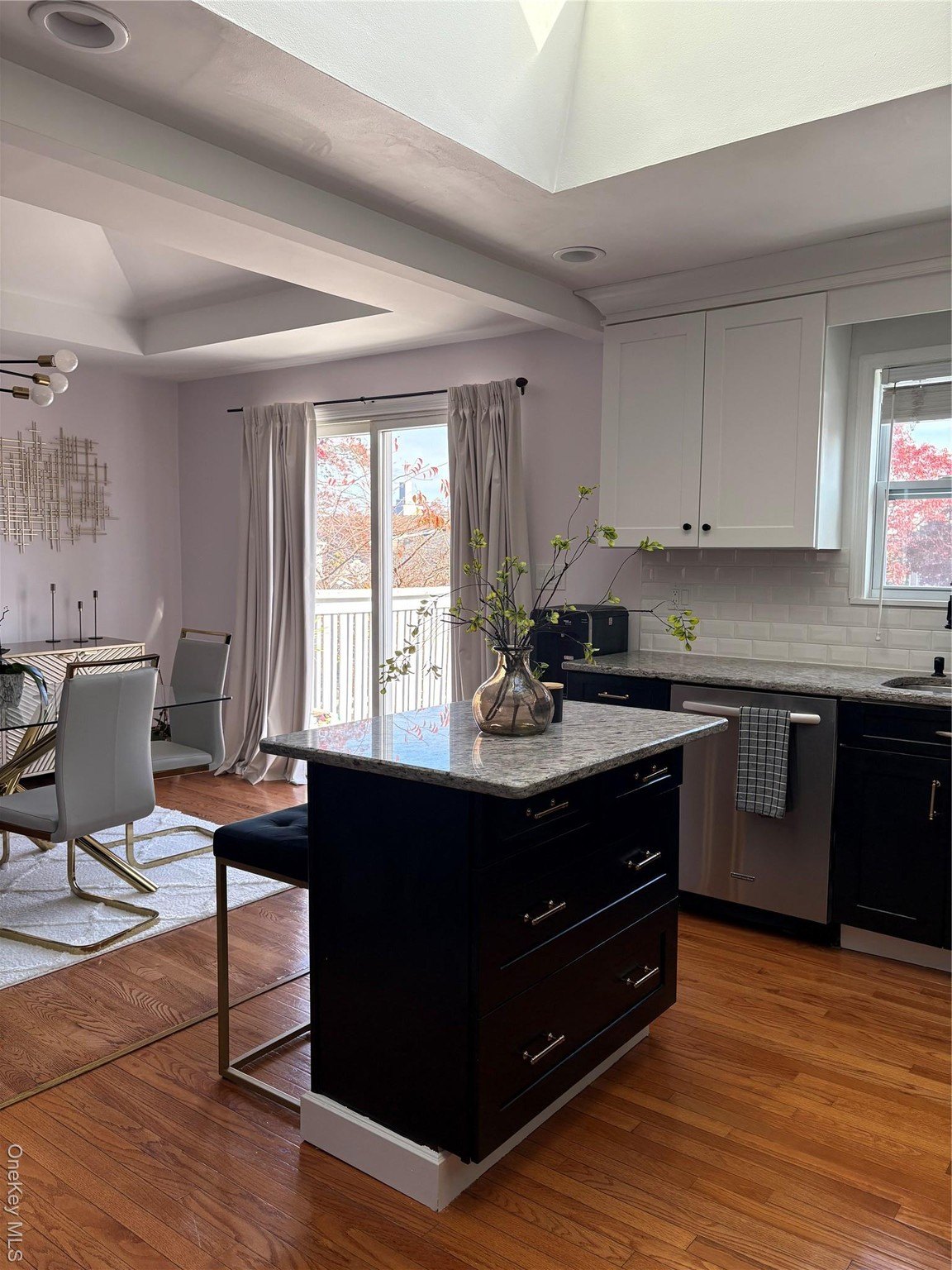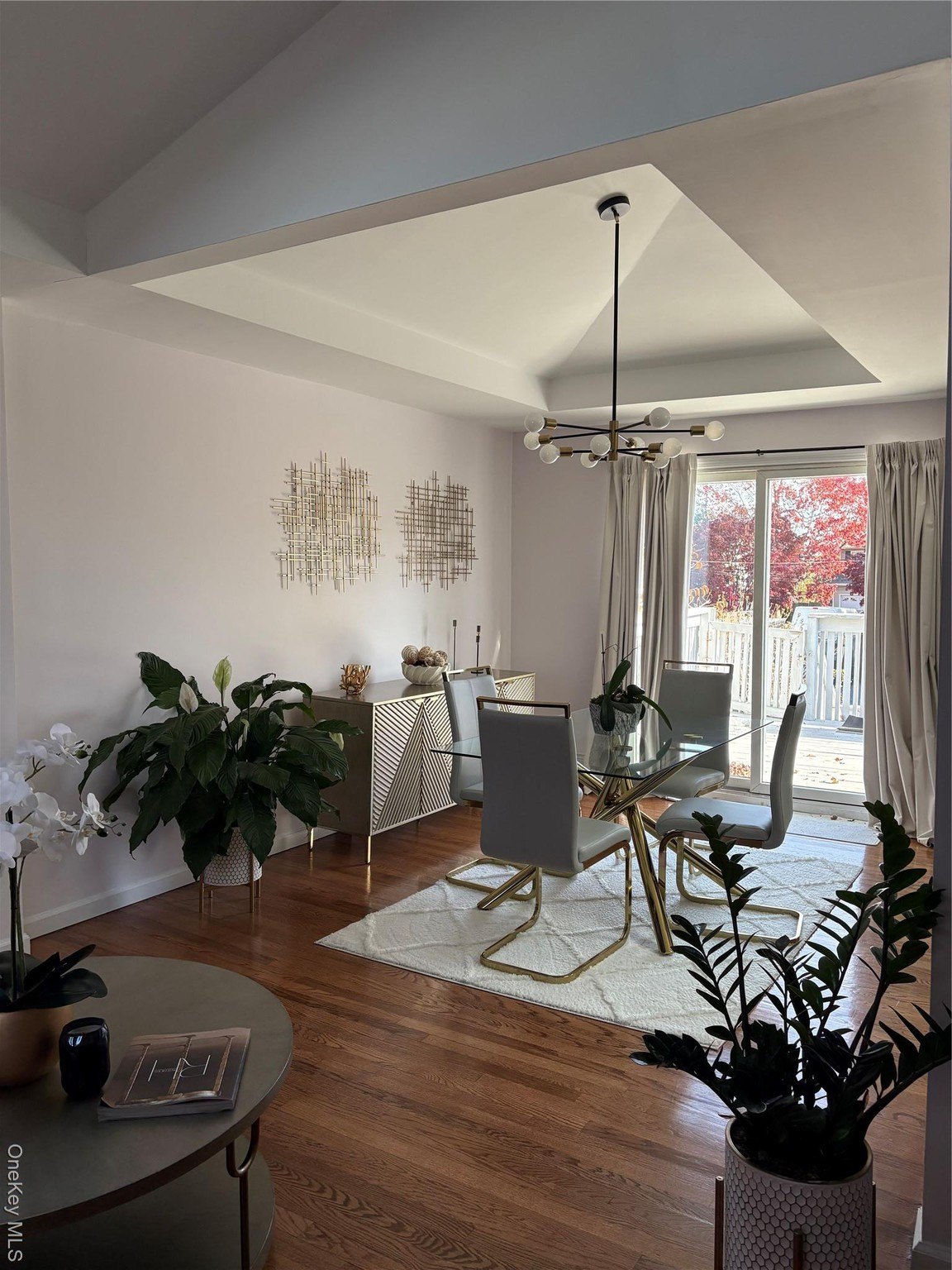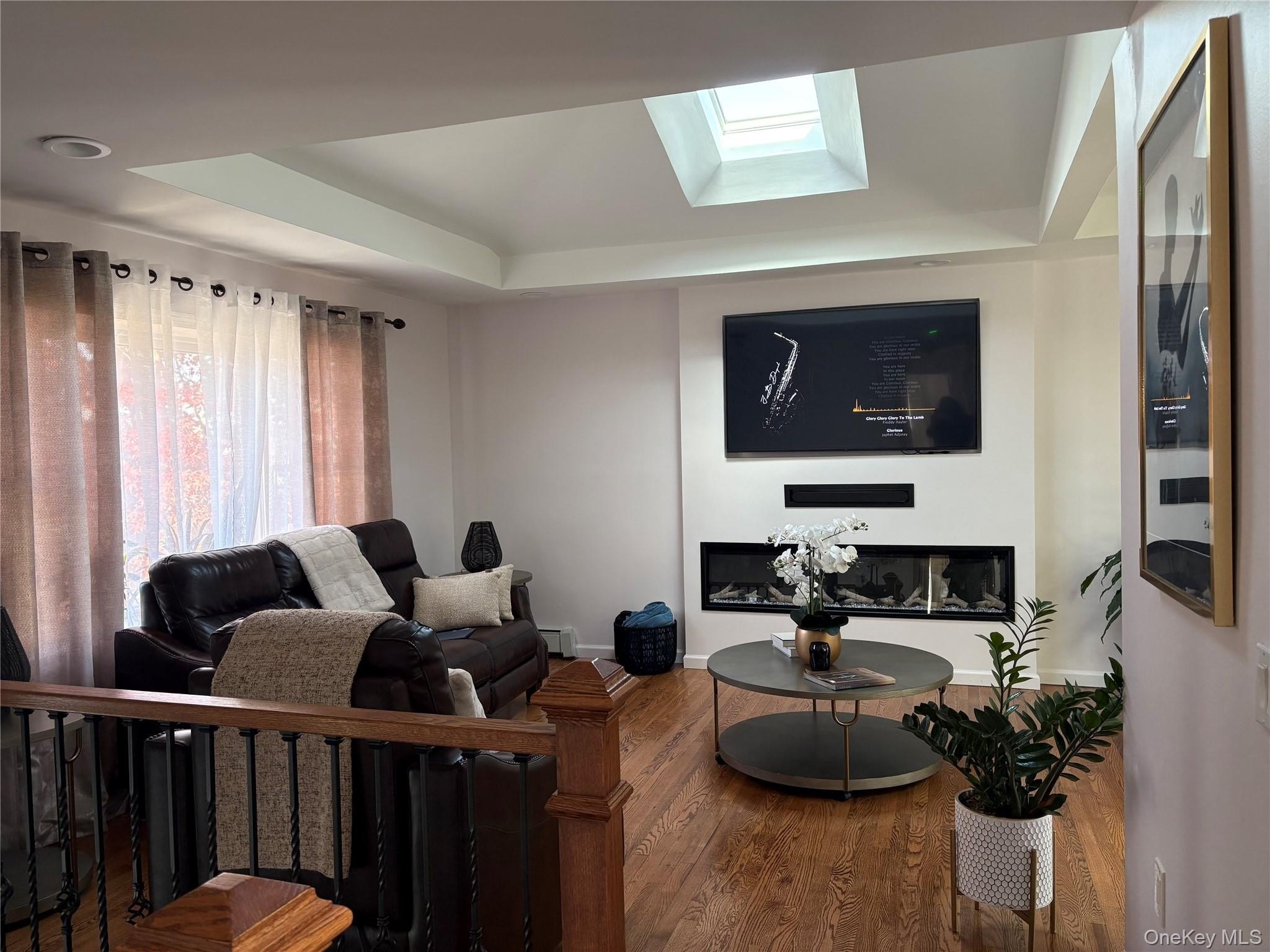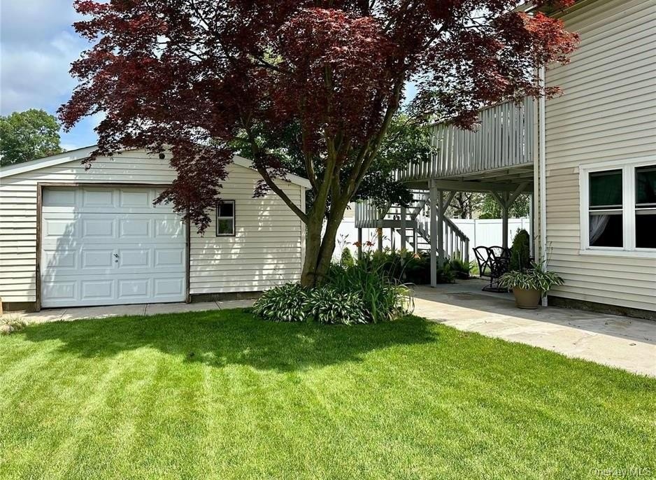 Welcome to this beautifully renovated Hi-Ranch, surrounded by serene and thoughtfully designed landscaping. This move-in-ready home features gleaming hardwood floors, abundant natural light enhanced by multiple skylights, updated bathrooms, and a stunning eat-in kitchen complete with granite countertops, custom cabinetry, and a gas boiler with a hot water heater. The upper level offers an open-concept living and dining area with sliding glass doors leading to a spacious deck-perfect for entertaining. The primary bedroom includes his-and-hers closets, accompanied by two additional bedrooms and an updated full bath. The lower level features a fully permitted accessory apartment, complete with its own living room, two additional bedrooms, a bathroom, a kitchen, a dining area, and a separate laundry/utility room. Additional highlights include in-ground sprinklers, a paved front patio area, a large rear deck, and a detached garage.