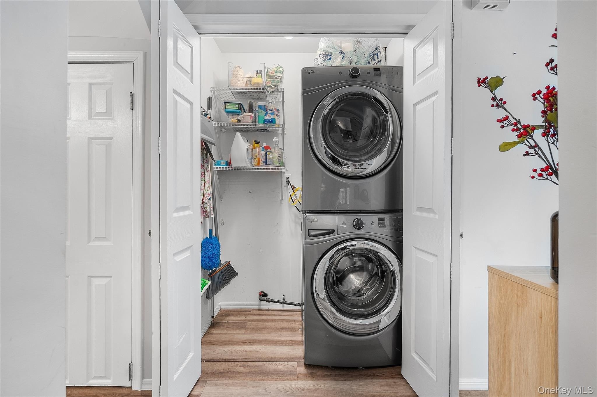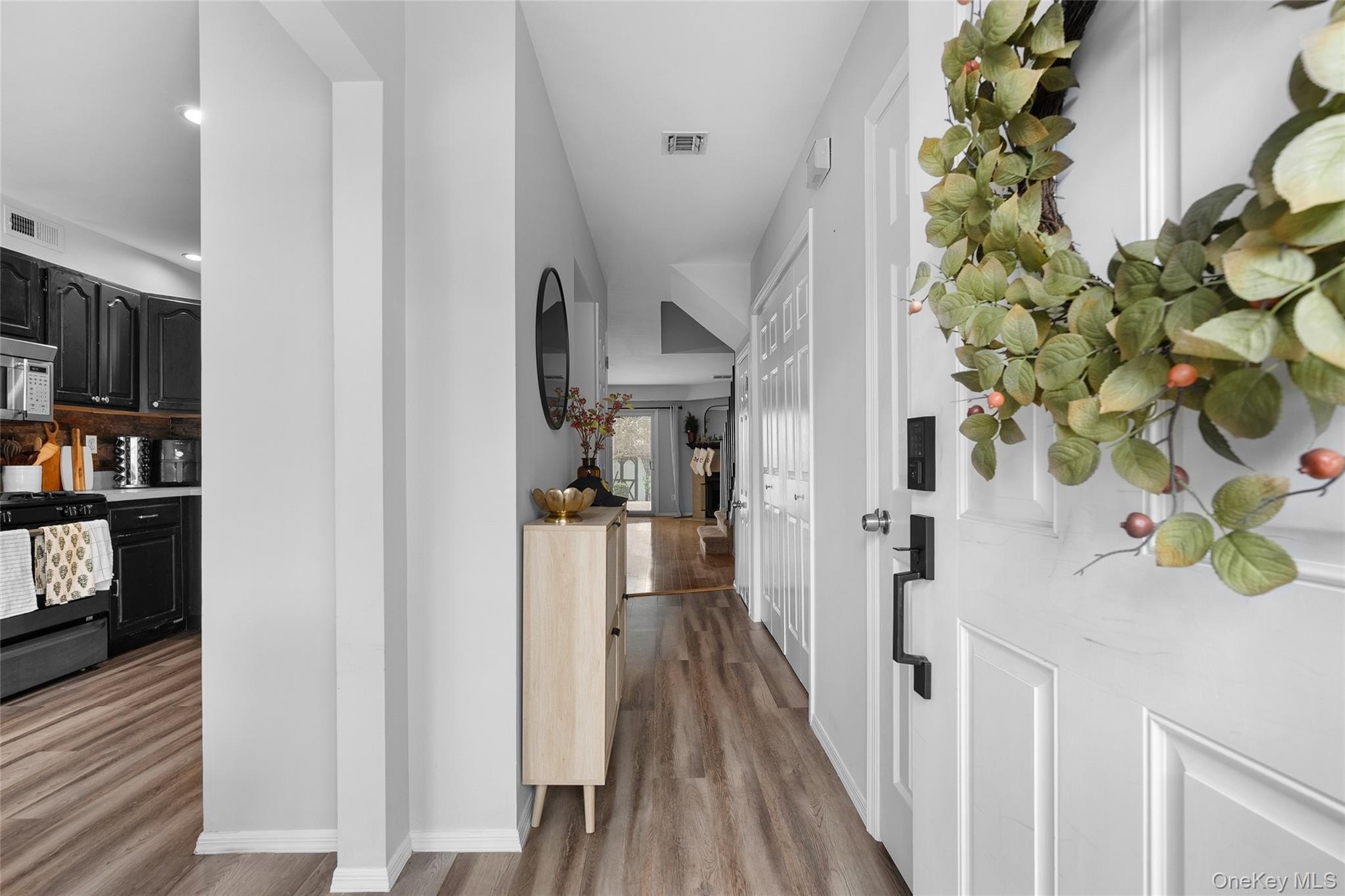 Discover this beautifully updated and impeccably cared-for townhouse tucked away on a quiet, private street in Islip. Filled with natural light, the open-concept main level features stunning new engineered wood floors, a modern eat-in kitchen with stainless steel appliances, a formal dining area, and a cozy living room with a gas fireplace. Upstairs offers two generously sized bedrooms, including a walk-in closet, and an updated full and half bath. Enjoy abundant storage with numerous closets and a large finished pull-down attic. Step outside to your own private paver patio-perfect for relaxing or entertaining-along with an outdoor shed for added convenience. Additional upgrades include windows, siding, roof, and front door. Assigned parking and a convenient location close to everything complete this exceptional home. Truly a must-see!
