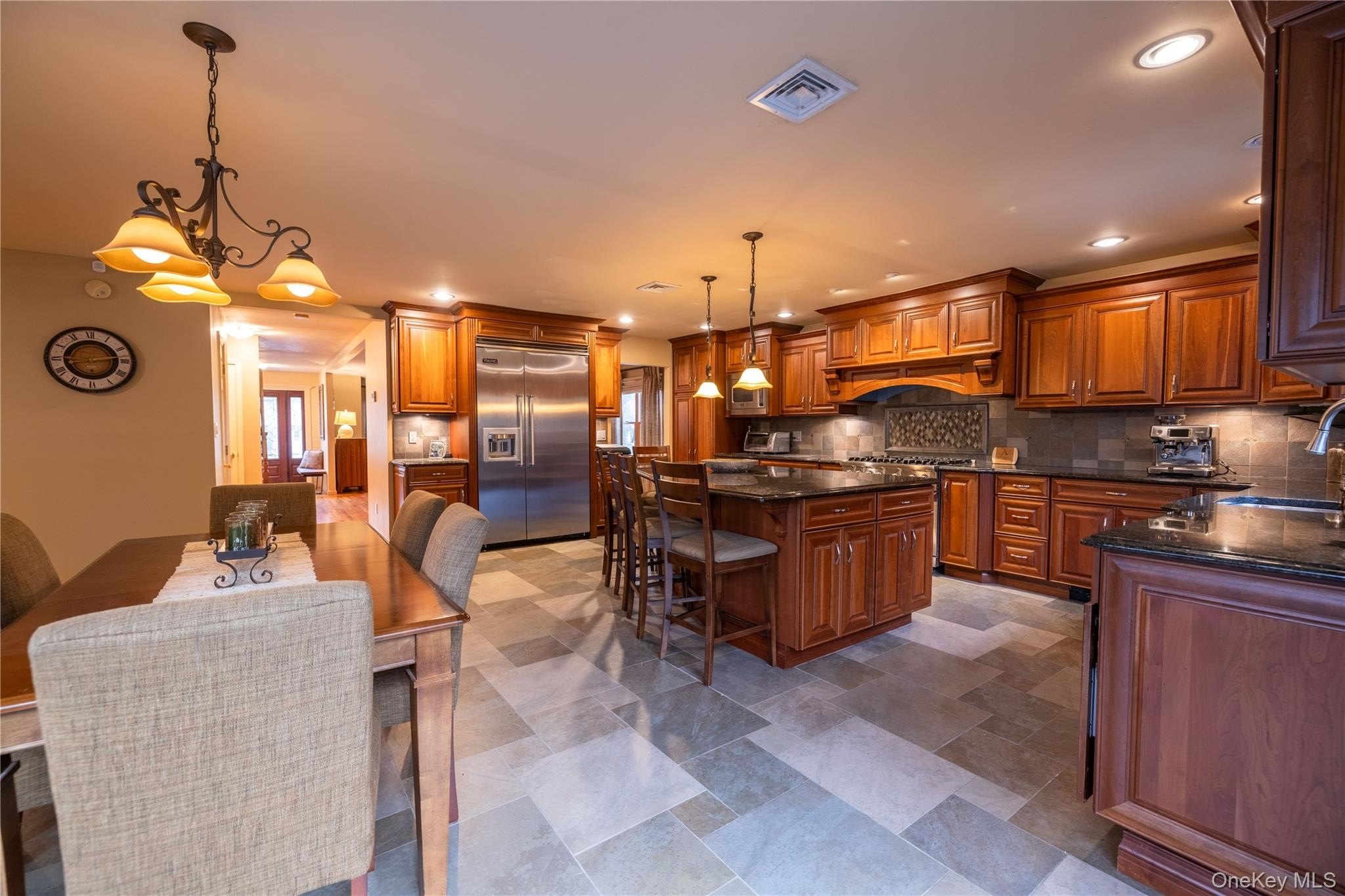 Welcome to this spacious, inviting, custom built colonial nestled mid block on a quiet, well-maintained tree lined street. This impeccable, tastefully designed home combines functionality, charm, comfort, and style in addition to it's convenient location. The home offers a warm and bright open floor plan with many possibilities. On the main level, you will find a welcoming foyer which leads you into the living room and formal dining room. Also On the main level, there is a half bath for your guests, and interior access to the attached 2 car garage that opens to a beautiful oversized Paver driveway and walkway. The heart of this stunning home is it's large eat in kitchen with granite counters, a Majestic Center Island with generous counter and cabinet space, and Viking appliances. The kitchen Flows into an adjoining sun filled den with a fireplace, and surround sound creating a cozy relaxed vibe. The basement is spacious and offers plenty of storage. Upstairs, you will find three generously size bedrooms, with custom closets, a walk up attic, a full bath, and a primary suite with en suite, vaulted ceilings, and two large walk-in closets. The home's oversized private yard provides a tranquil setting with a beautiful pool and landscaping, as well as an entertaining area and gas bbq. There's also a Whole house filtration system. This home is truly one of a kind! All information, deemed accurate buyer should verify.