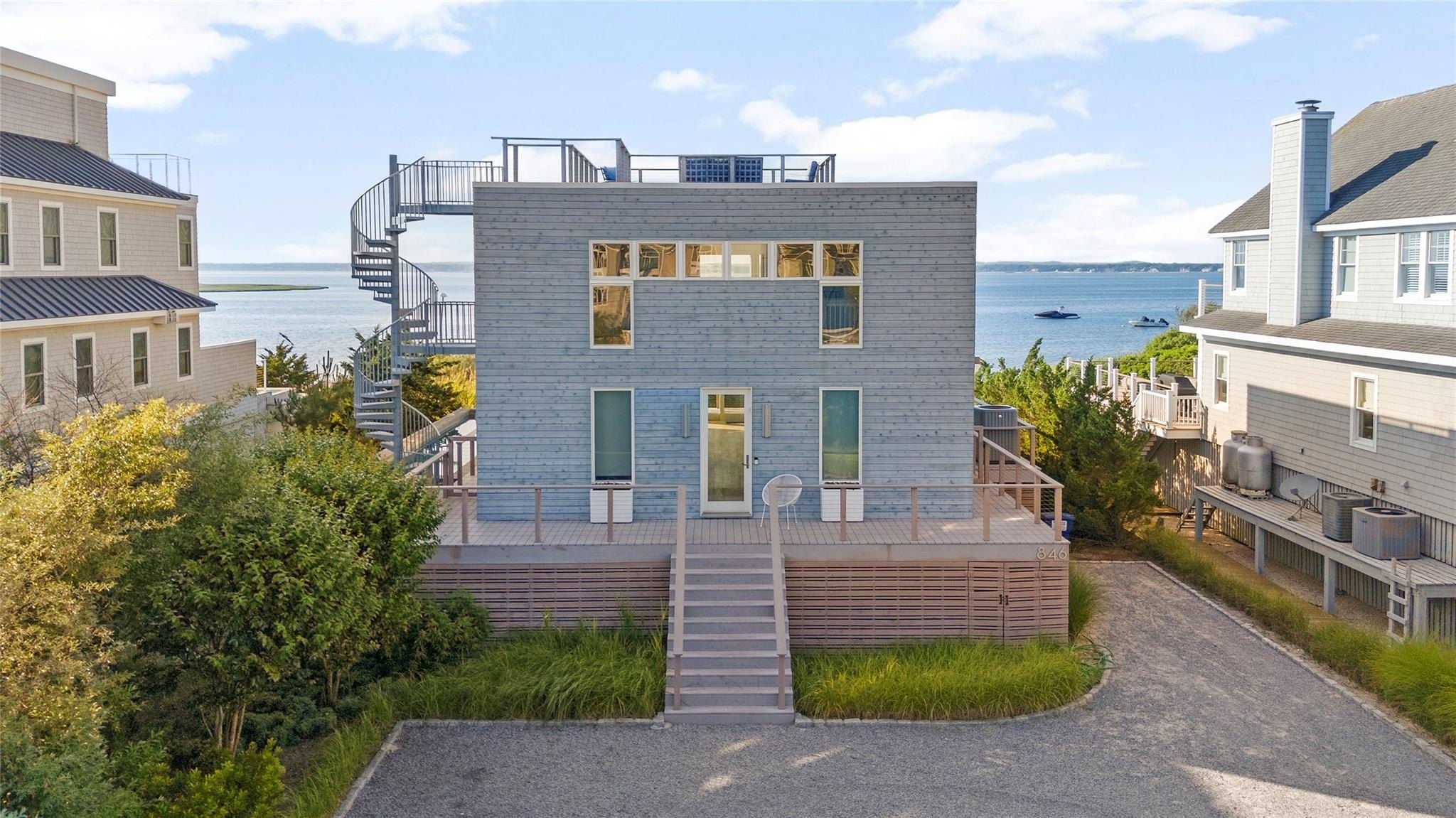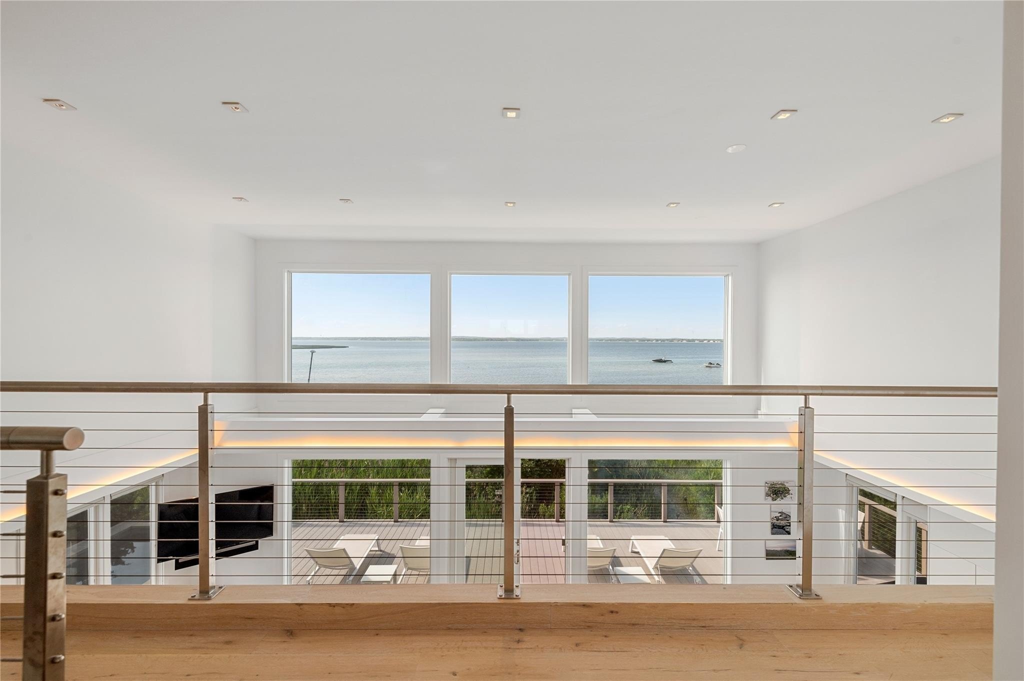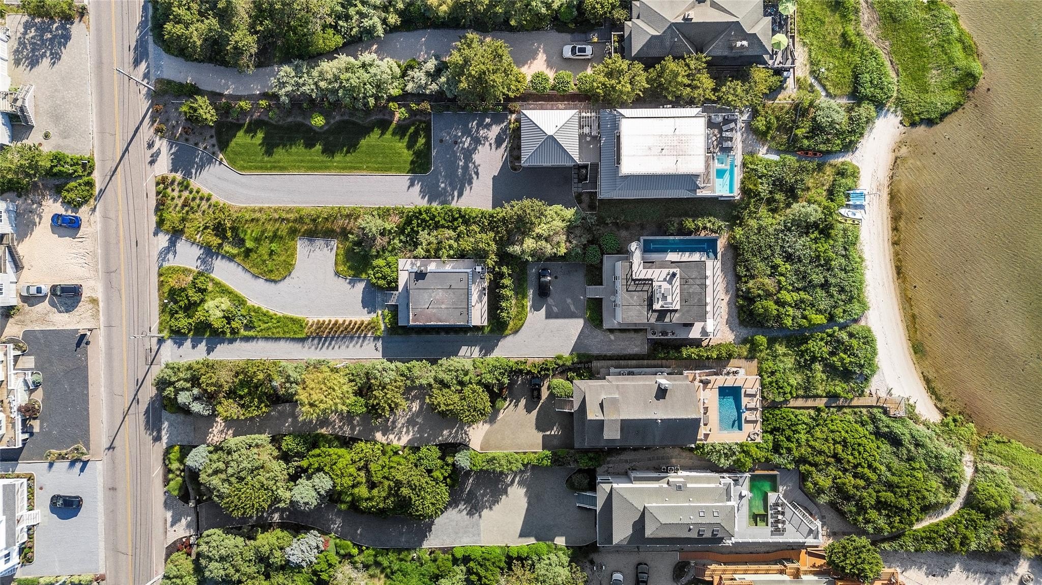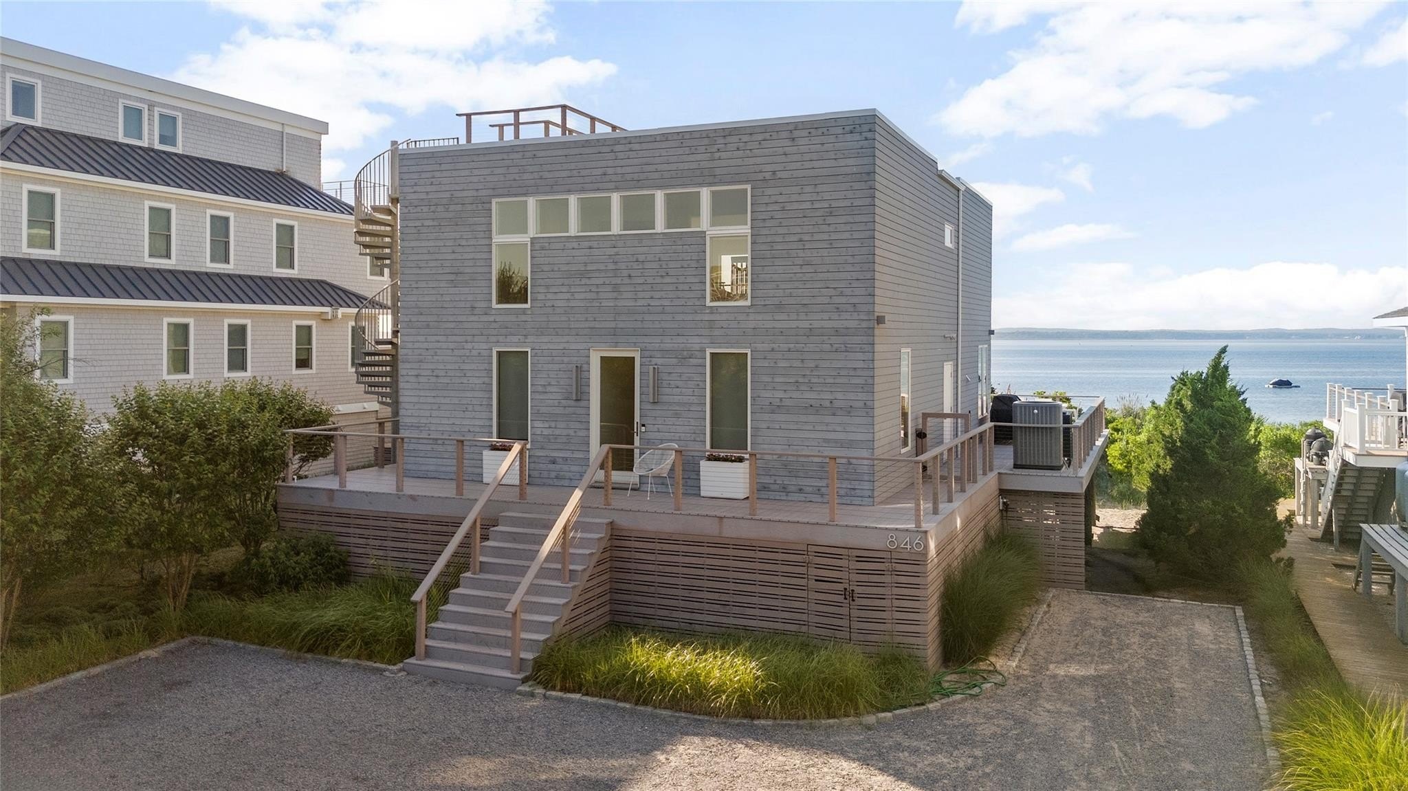 Experience the essence of relaxed coastal living, elevated by timeless design and exceptional rarity, at this unparalleled bayfront compound on Dune Road. Set on .78 acres of pristine waterfront, this private sanctuary offers a lifestyle few properties will ever match. Complete with mooring rights, a secluded bay beach, and deeded right-of-way to the Atlantic Ocean, it is a dream destination for boaters and lovers of nature's finest elements. The main residence invites you in with soaring ceilings, a sun-drenched open-concept layout, and dramatic picture windows that frame the endless expanse of water and sky, creating the sensation of being completely immersed in the elements. A spacious eat-in kitchen flows seamlessly into the living and dining areas and out to a wraparound deck, perfect for entertaining or simply soaking in the serenity. Thoughtfully designed to merge indoor luxury with outdoor splendor, the main house features 4 bedrooms and 3 bathrooms. The entire second level is devoted to the primary suite - a tranquil retreat with panoramic views of both the bay and ocean, a private balcony, and a spa-inspired bathroom that offers elevated privacy and indulgence. On the first floor, a gracious secondary suite with its own en-suite bath is joined by two additional guest bedrooms and a full bathroom, offering both comfort and privacy for family and guests. Outdoors, the property unfolds like a private resort - with a heated gunite saltwater pool, retractable awnings, lush mature landscaping, and a rooftop deck boasting sweeping 360-degree views from ocean to bay. It's the ultimate setting for sunset gatherings, stargazing, or simply escaping the world below. The charming guest cottage features 3 bedrooms and 2 full bathrooms, including a private en-suite. With a proven rental history, it offers built-in value as an income-producing asset or private quarters for extended guests. With subdivision potential, world-class beaches just across the road, and the village of Westhampton Beach mere minutes away, 846 Dune Road represents a once-in-a-generation opportunity to own one of the most distinctive, serene, and versatile waterfront properties on the East End. This is not just a home - it's a legacy.