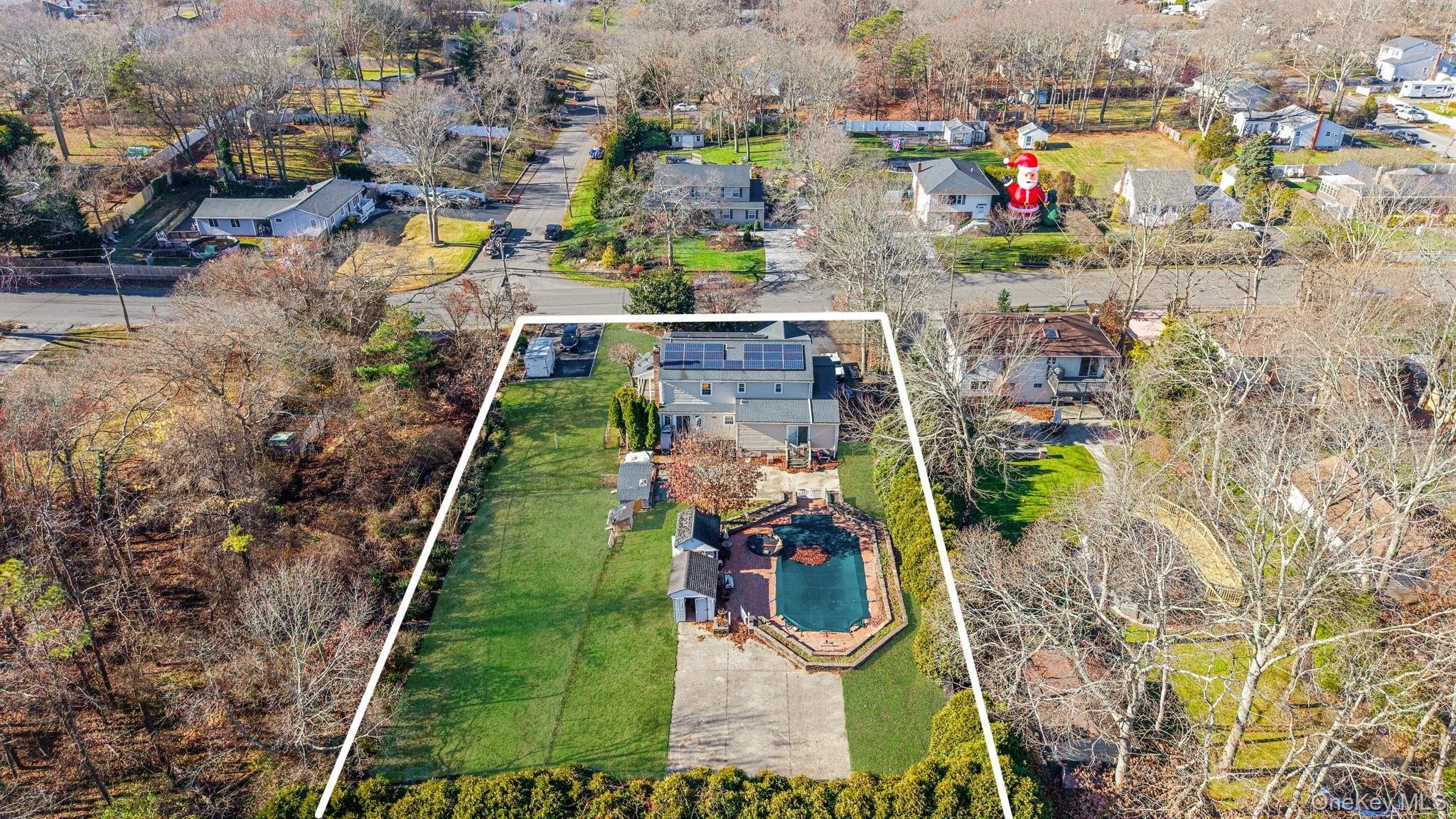 Welcome to 211 N. Titmus Dr., Mastic! This stunning colonial home is a true gem! With 4 bedrooms, 2 full baths, and over 2900 sqft, you'll have room to grow and entertain. The first floor features a beautiful kitchen, perfect for hosting dinner parties, while the second floor offers 4 spacious bedrooms and 2 full baths. Along with a full finished basement, with ceilings over 8ft and an outside entrance. But the real showstopper is the inground saltwater pool (2001, liner changed 2016) on a spacious .60-acre lot, perfect for summer BBQs and outdoor fun! Eco-friendly features include Solar City panels (now owned by Tesla) new doors and windows (5 years ago), a new roof, and new siding (2025). Plus, central air keeps both floors comfy year round. Conveniently located near Eastport School/South Manor School (District 35), 5 minutes from L.I.R.R. station, 5 minutes from sunrise highway, and 8 minutes from HWY 495. This PROPERTY is a MUST-SEE! Don't let this GEM slip away!