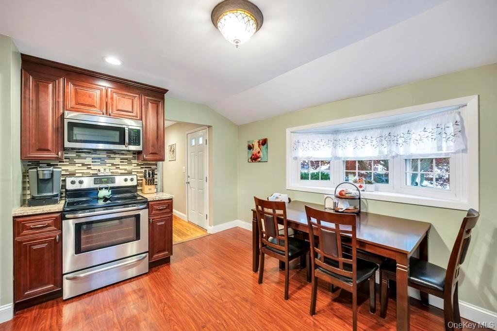 Welcome to this Mint Ranch in West Farmingdale, perfectly situated mid-block on a quiet, charming street. The home makes an incredible first impression with its vinyl-sided exterior, great curb appeal, and inviting portico. Step inside to a chef's kitchen featuring cherry cabinets, granite counters, a stylish glass tile backsplash, and stainless-steel appliances. The home currently offers 2 spacious bedrooms including a primary suite with a walk-in closet and full bathroom. You'll love the hardwood floors, main-level laundry room, and oversized 1-car garage. Located near Albany Avenue Elementary, plus close to shopping, transportation, and everything you need. Home is currently being converted to natural gas. HUGE PLUS This home truly checks the boxes; updated, mint condition, and move-in ready!