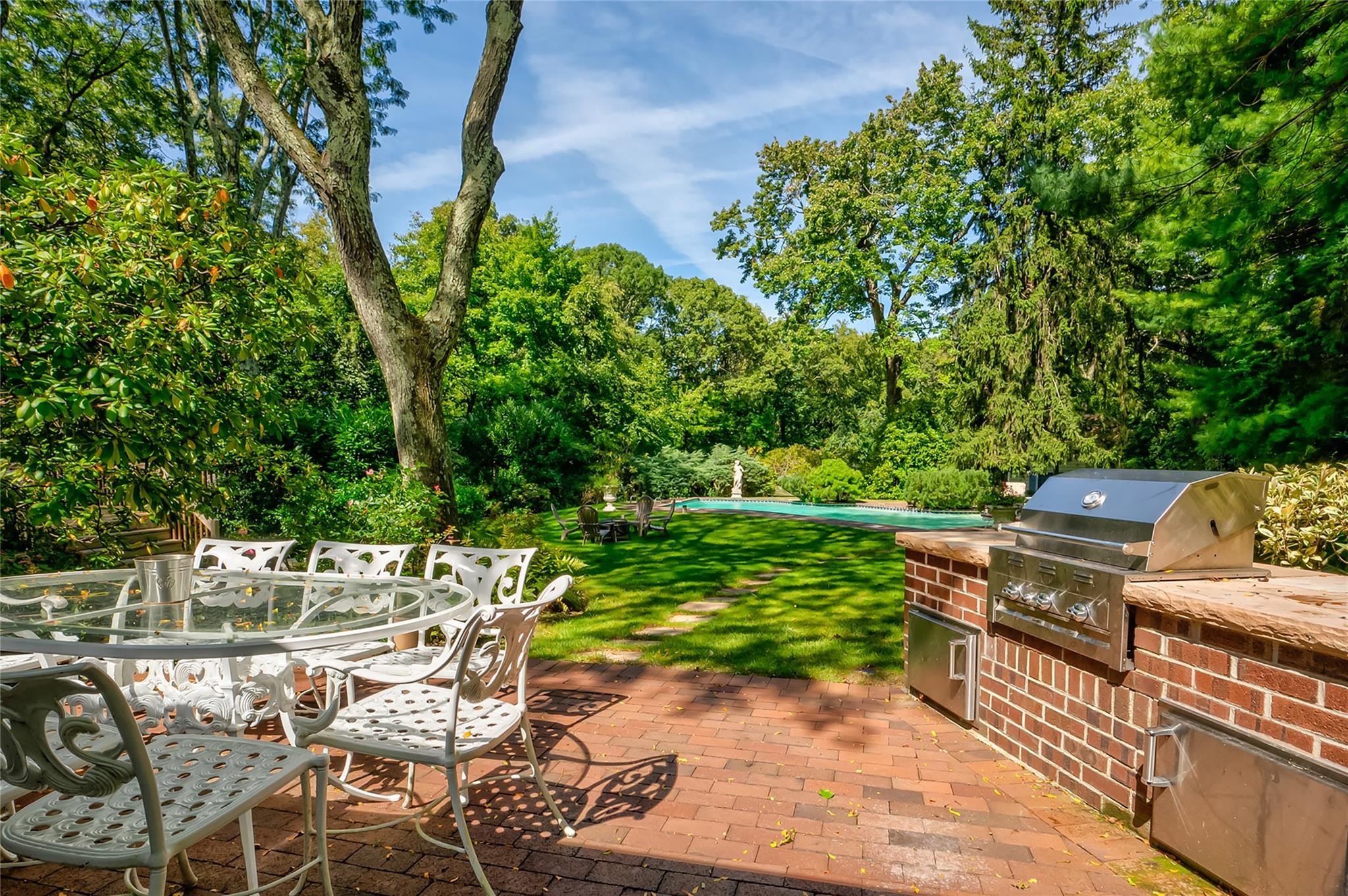 Nestled in the village of Laurel Hollow in Oyster Bay, this beautiful 5 bedroom, 4 bathroom home is a rare gem that exudes charm, warmth, and character. Situated on a sprawling 2-acre lot at the end of a peaceful cul-de-sac, this property offers the ultimate privacy and luxury living. As you approach, you'll be captivated by the lush landscaping and serene setting. Step inside to find a beautifully maintained and well-loved home featuring spacious, light-filled rooms, hardwood floors, and unique architectural details. The thoughtfully designed layout includes a gourmet kitchen with SS appliances, a cozy living room with a fireplace, and a formal dining room perfect for entertaining. The expansive backyard is a true oasis, complete with a sparkling pool and a charming 2 bedroom cottage ideal for visitors or as a private retreat. Whether hosting gatherings or enjoying quiet moments, this outdoor space is designed for both relaxation and recreation. Don't miss the opportunity to own this unique property where timeless elegance meets modern convenience.