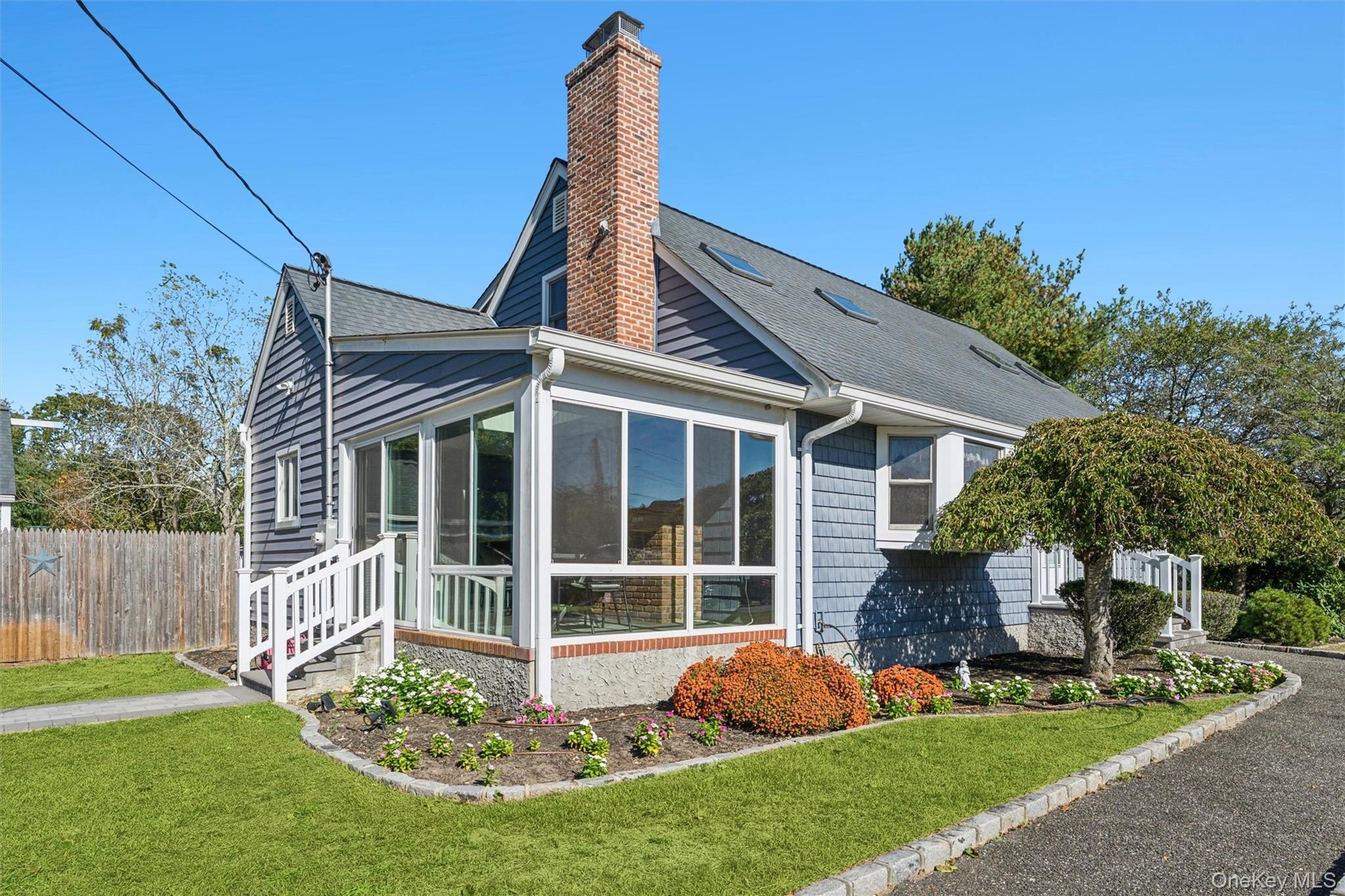 Welcome to this beautifully maintained 4-bedroom, 2-bath home located on a spacious property in the heart of Center Moriches. From the moment you arrive, you'll appreciate the inviting curb appeal and the sense of space that makes this home stand out. Inside, a warm and welcoming layout offers plenty of room for comfortable living. The main level features a bright and airy living area, perfect for both relaxing and entertaining. The sunroom is a true highlight - flooded with natural light, it's an ideal spot to enjoy your morning coffee, unwind with a good book, or simply take in views of the property. The extra-large kitchen and dining spaces flow effortlessly, creating the perfect setting for family meals or hosting friends. Four well-sized bedrooms provide flexibility for guests, a home office, or growing families, while two full baths offer convenience and comfort. Outside, the large yard provides endless possibilities. Whether you dream of adding a pool, creating a garden oasis, or designing outdoor entertaining spaces, there's plenty of room to bring your vision to life. Located just minutes from Main Street shops, local dining, schools, and waterfront access, this home offers the perfect blend of privacy and convenience. Value adds include newer siding and Anderson replacements, superior oil burner,mahagany decking and pvc rail, electric awning, central air, basement egress door, hardwood floors, automatic blinds, cobblestone lined driveway and walkway, and oversized garage.
