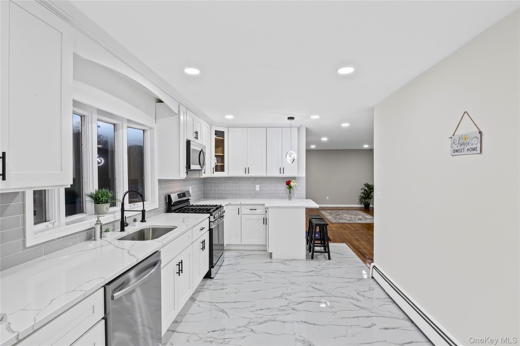 Introducing 201 Hilltop Dr- Step into a spacious layout featuring a large custom quartz kitchen with peninsula, gas stove, and brand-new stainless steel appliances. Polished hardwood floors flow throughout the main level, complemented by bright LED lighting. The home is powered by a new Navien wall-hung combo gas boiler providing efficient heat and hot water. Additional features include 100 amp electric and one-zone heating, with the system ready for a second zone if desired. The lower level offers a versatile one-bedroom apartment complete with kitchenette and private entrance-perfect for guests or extended family. Set on a generous gated property, this home also includes an attached garage, shed, and a freshly sealed blacktop driveway. Move-in ready with modern upgrades throughout!