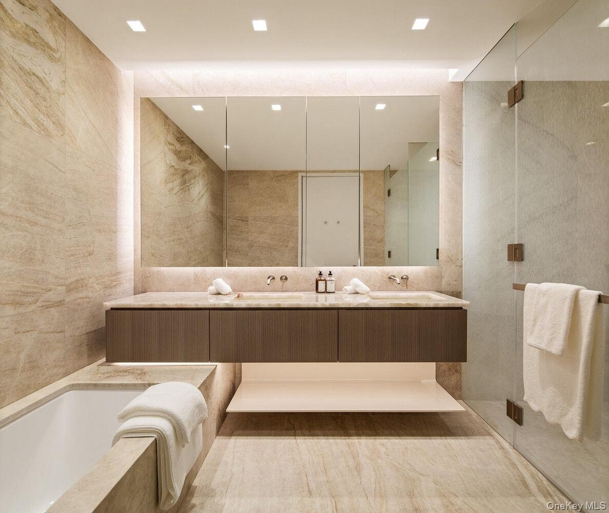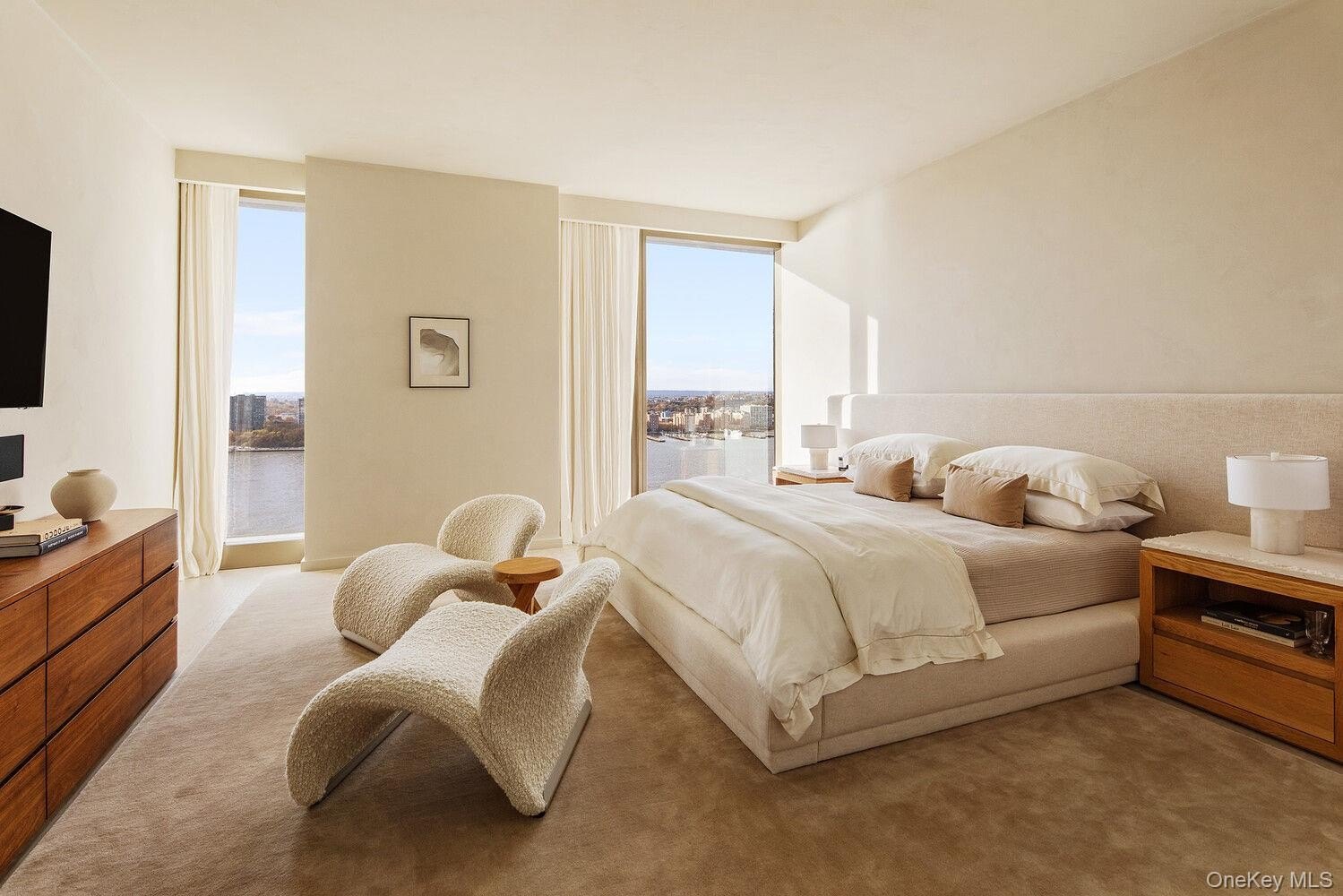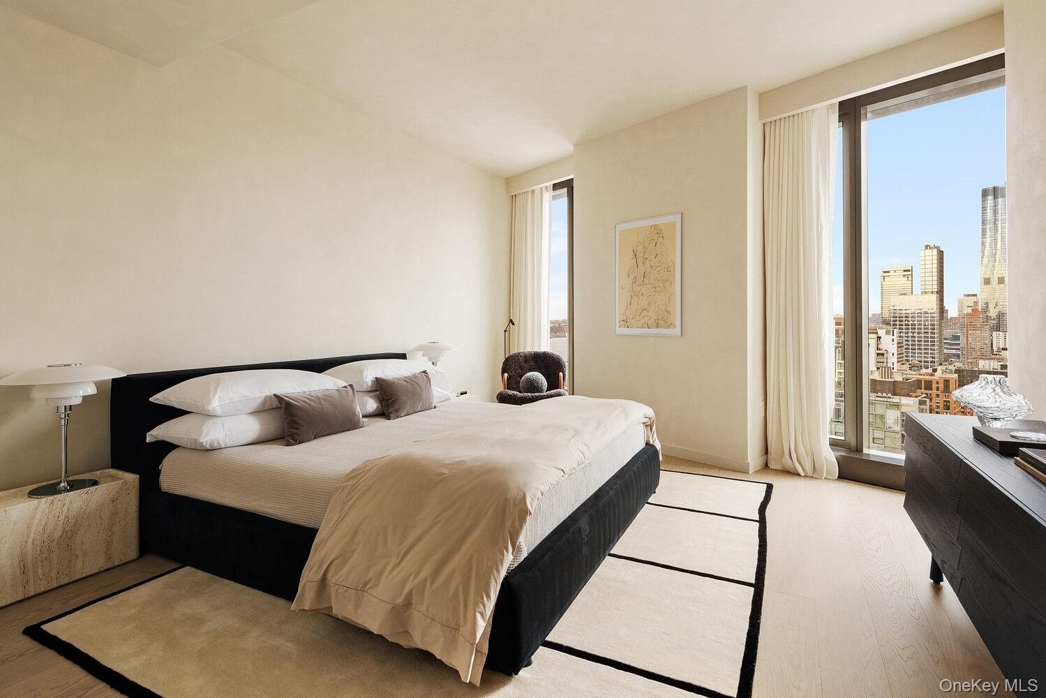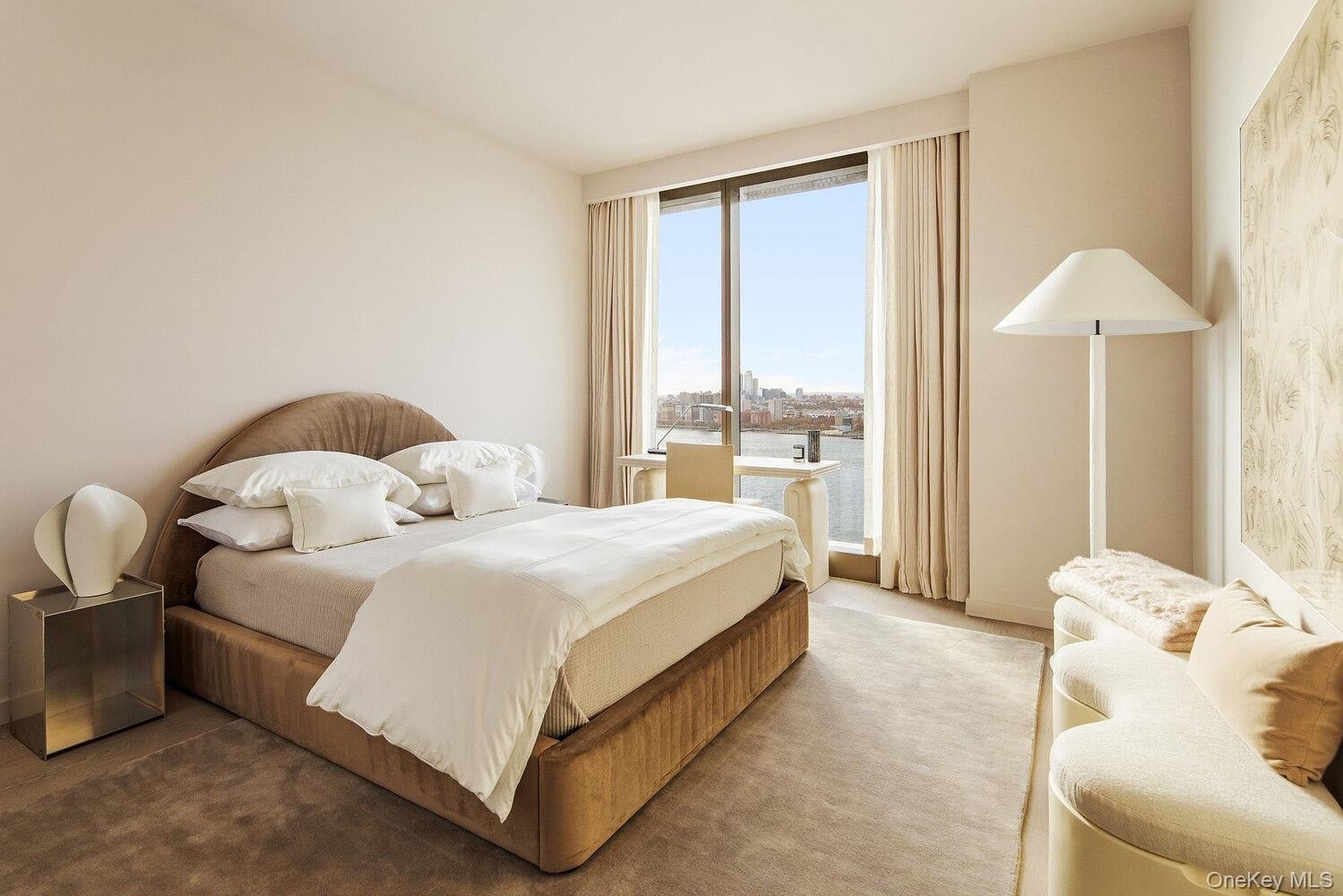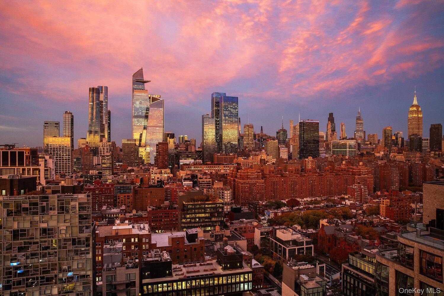 Rising above, where the High Line shapes toward the Hudson River, lies this new architectural landmark to Downtown: One Highline, developed by Witkoff and Access Industries was designed by Bjarke Ingels Group with interiors crafted by Gabellini Sheppard and Gilles et Boissier. This newly available grand 3-bedroom in the highly coveted west tower is available for resale for the first time. Life at One High Line is centered around elevated living, including the amenity portfolio at the High Line Club, a collection of elevated amenities that includes offerings from the Faena Hotel, curated lifestyle partnerships, and a series of refined spaces positioned to take in views of the iconic elevated park. Residence West 28B is a grand corner three-bedroom, three-and-a-half-bath home spanning 3,141 square feet with western views showcasing breathtaking sunsets. Designed by Gabellini Sheppard Associates, the layout maximizes the sweeping northern and western views that capture the city skyline and the Hudson River. The entertaining area spans a generous great room that transitions into a beautifully integrated Bulthaup kitchen. Finishes include white Princess Quartzite wrapping the counters and backsplash, and a full Gaggenau appliance suite and CEA Design stainless-steel fixtures. The primary suite occupies the western wing of the residence, where floor-to-ceiling windows frame steady daylight and river scenery. Custom built-in Ornare closet systems have been installed throughout the home. The five-fixture bathroom is finished in Taj Mahal Quartzite and features radiant heated floors, a custom Lumix double vanity, an illuminated medicine cabinet, and a Kaldewei soaking tub. Each secondary bedroom maintains a sense of luxurious autonomy with ensuite baths clad in Woodgrain Silver Marble and fitted with custom oak vanities, premium fixtures, and radiant heat. A dramatic powder room is lined in vein-cut Grigio Onyx. Extensive closet space, a laundry room with high-end washer and dryer, and a comprehensive home automation system by Kraus Hi-Tech complete the home. The building itself is designed for discretion and comfort, with each tower offering its own private residential entry and grand lobby accessed via a sheltered porte-cochere. Amenities include state of the art fitness center, 75-foot lap pool with adjoining jacuzzi, a full spa with sauna, steam and treatment rooms, private training studios within the fitness center, a golf simulator and virtual gaming suite, a children's playroom, and thoughtfully composed areas for dining, entertaining, and leisure. Residents can also enjoy concierge-level services courtesy of the Faena Hotel located in the East Tower. Turn key offer with full custom furniture package currently in place is also available.