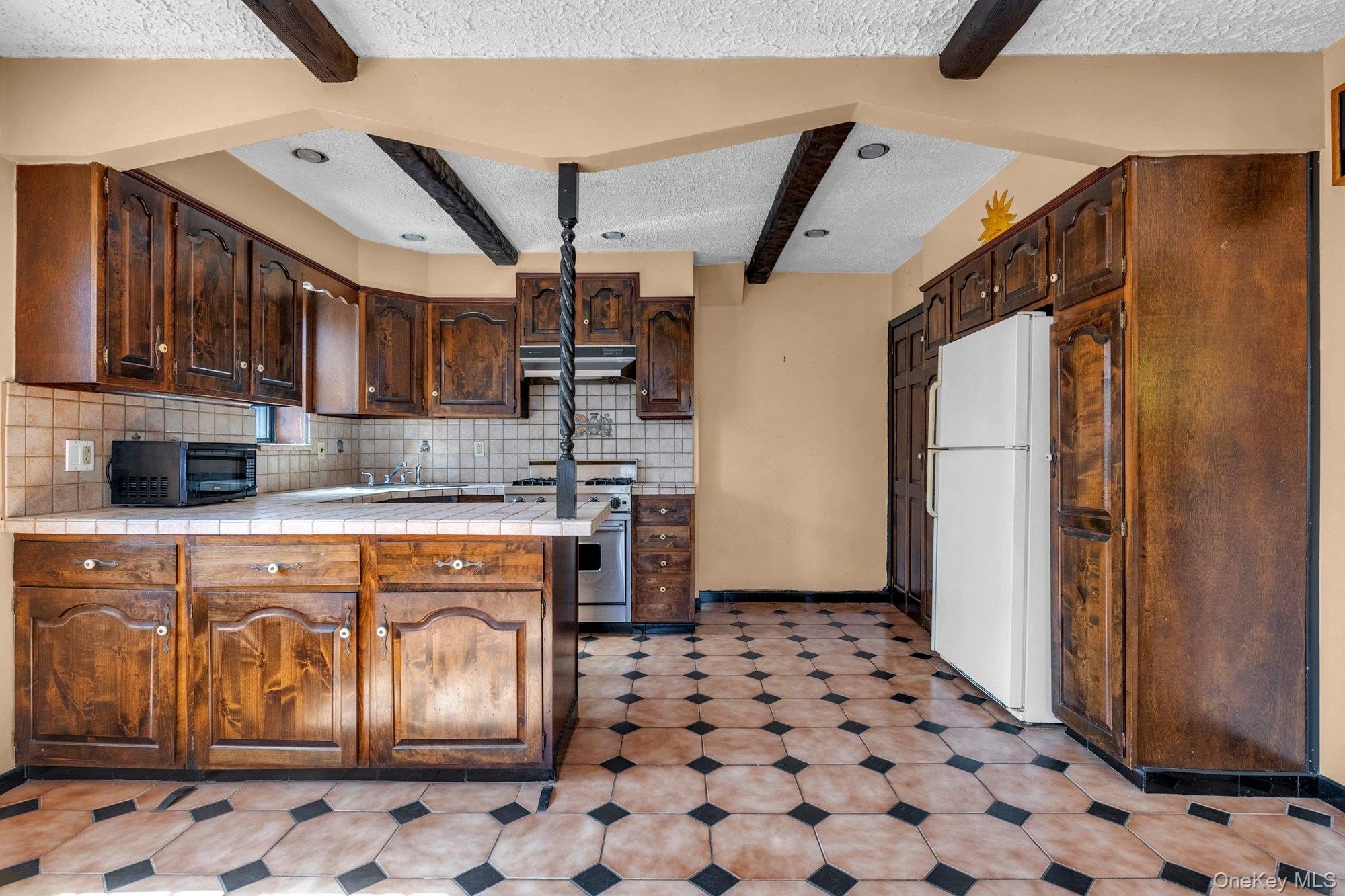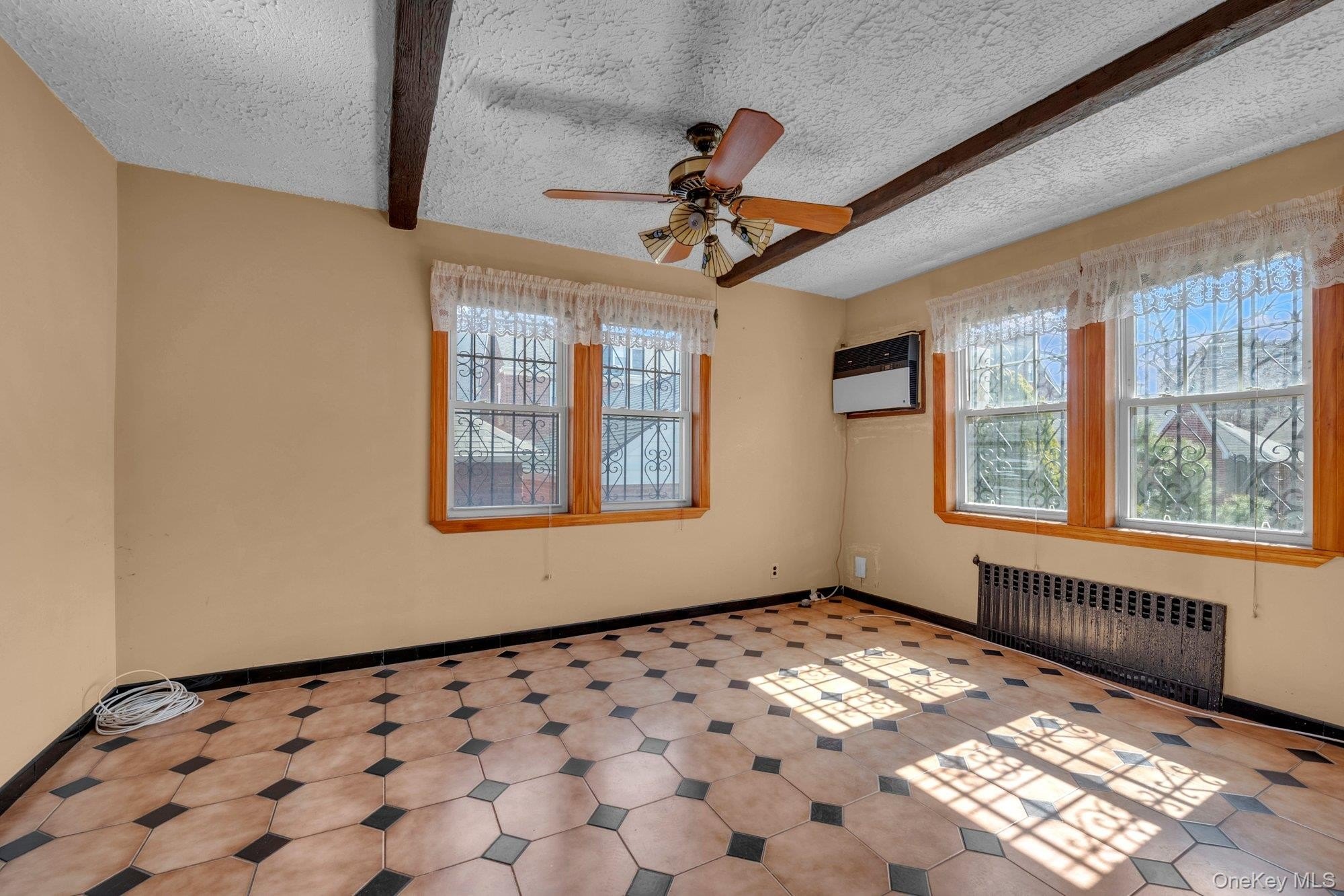 Welcome to this charming 1940s Tudor-style home, nestled in the peaceful and highly sought-after neighborhood In. Village in the Bronx. Bursting with character and timeless appeal, this three-bedroom, two full-bathroom residence offers a perfect blend of vintage elegance and modern comfort. Step inside and be greeted by warm hardwood floors throughout a spacious and cozy living room, featuring a classic fireplace and stunning eastern facing stained glass windows that flood the space with warm ambient morning light. Walk through into the open dining & kitchen space, excellent for intimate gatherings during mealtime. The home boasts three sunlit bedrooms, each offering ample closet space and natural light. Two full bathrooms have been thoughtfully updated, blending the home's vintage charm with contemporary conveniences. The expansive backyard provides plenty of space for outdoor gatherings, gardening, or simply enjoying the tranquility of your own outdoor retreat. A true gem in the area, the home includes a three-car driveway, ensuring convenient parking for family and guests. Situated on short and quaint tree-lined street, this Tudor-style home is the ideal place to call your own. Whether you're drawn to its historic charm, its prime location, or its spacious layout with ample storage, this property offers the perfect setting to create lasting memories. Don't miss out on the opportunity to own this unique and beautiful home. Schedule your private showing TODAY! Come See the Radiant Freshly Painted Interior Living Space! Roof Fully Replaced 7 years ago.