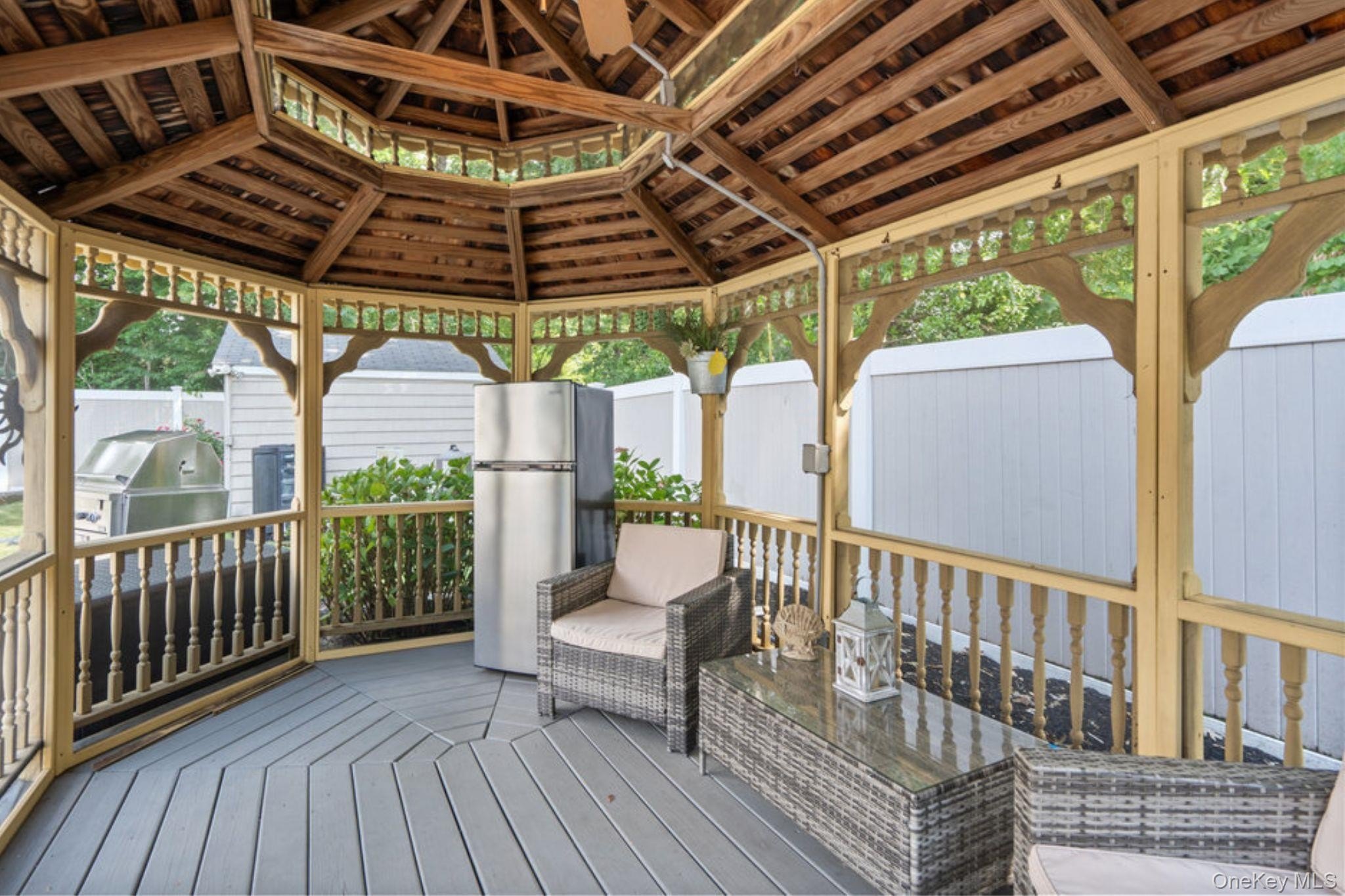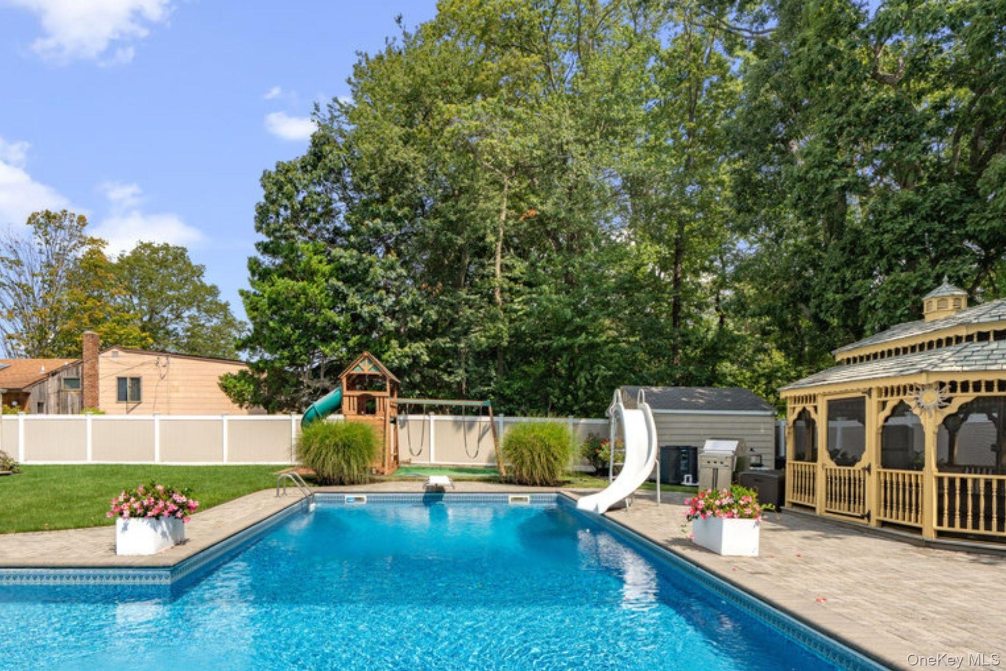 Welcome home to 939 Manor Lane in Bay Shore. This meticulously maintained 4-bedroom, 2.5-bath Split Style home offers both comfort and modern design. The heart of the home is the designer, custom oversized kitchen renovated 2022 featuring a stunning Cambria quartz waterfall island with microwave drawer, European Style cabinetry with pantry pull-outs, under cabinet lighting, porcelain plank tile and stainless appliances-making it a true entertainer's kitchen. Radiant heat runs throughout the entire main floor adding warmth and comfort underfoot. The oversized kitchen flows seamlessly into the living room, where soaring ceilings that creates an open and airy layout. An Anderson slider opens to a spacious Trex deck, perfect for outdoor dining. Step down to a lovely den with a custom granite window ledge and a tiled bathroom. For added convenience, a private laundry room with a new washer and dryer offers extra storage. Additional notable features include a 3-zone new heating system, separate new hot water heater, 200-amp electric service, a generator connection box/transfer switch for a portable or home generator for peace of mind, ductless air conditioning, central air, an in-ground sprinkler system, security camera system, and waterproof LVP flooring. The backyard is an entertainer's delight, showcasing an 18 x 36 heated L-shaped in-ground pool w new liner, new heater & solar cover, surrounded by brick pavers, a screened-in gazebo with electric for shaded relaxation, and a dedicated play area with a wood kingdom playset. This is the perfect home for both relaxation and entertaining. Do not miss this Bay Shore Beauty!!