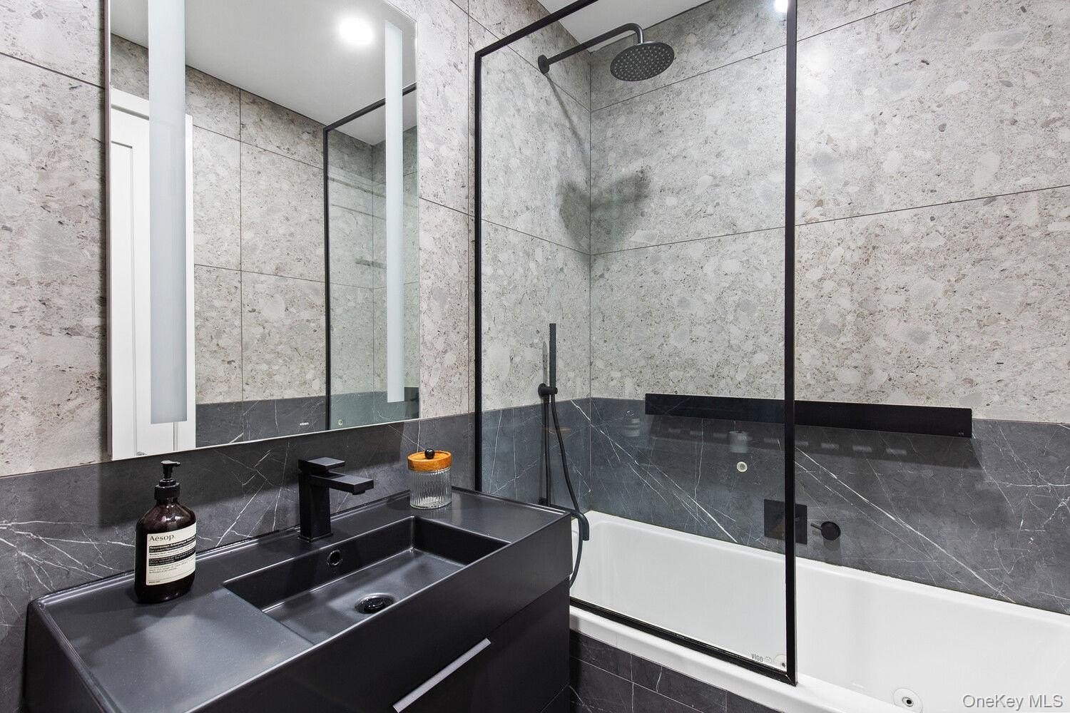 This impeccably renovated residence has been completely reimagined with an emphasis on flow, functionality, and refined, modern finishes. The home opens into a spacious living and dining area centered around a restored, operable wood-burning fireplace, an increasingly rare luxury in Midtown. The proportions are comfortable and generous, offering an effortless layout for both everyday living and entertaining. The kitchen was rebuilt from the studs with custom millwork cabinetry, Silver Roots marble countertops, a centered cooktop, top-tier Miele appliances, and a dedicated chef's workspace. Directly off the kitchen is a large pantry with extensive storage and a washer/dryer. The millwork continues seamlessly into this area, creating a clean, cohesive built-in look. The redesigned floor plan includes a large primary suite with an expanded en-suite bathroom featuring double vanities, a walk-in shower, Florim large-format marble tile, Phylrich fixtures, matte-black hardware, and LED mirrors. The secondary bedroom offers a handmade thin-brick accent wall and a custom closet designed for flexible use. The second full bathroom was also fully renovated with upgraded materials and added cabinetry. Additional features include refinished hardwood floors, low-VOC Benjamin Moore satin paint throughout, custom fitted closets, new through-the-wall A/C units, and a newly fabricated entry door modeled on the original but rebuilt with a sound-blocking core for enhanced quiet. The home is also fully outfitted with a Philips Hue smart lighting system, allowing complete control of light levels and ambiance. A private storage unit is included. 40 West 55th Street is a 1924 Rosario Candela-designed prewar condominium that underwent a $3.5M restoration featured in The New York Times. The building was returned to its original residential layout with upgraded mechanical systems, restored terrazzo lobby floors, and a Venetian-style fresco ceiling. Amenities include a full-time door attendant, elevator, and common laundry. Pets are welcome. Just moments from Central Park, MoMA, Carnegie Hall, Rockefeller Center, and Fifth Avenue, this home offers an elevated and exceptionally convenient Midtown lifestyle.