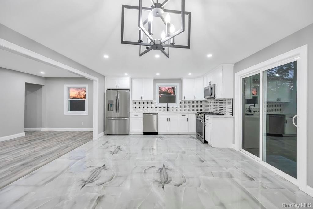 Welcome to this beautifully updated and expanded ranch! This spacious 4-bedroom, 2-bath home has so much to offer. Enjoy an open-concept layout with large windows that bring in an abundance of natural light. The generously sized kitchen features new appliances, gas stove, and sliding doors that provide easy access to the large backyard-perfect for outdoor gatherings. The formal dining room offers ample space for entertaining guests. All four generously sized bedrooms are thoughtfully situated for privacy. The updated bathrooms showcase dual showerheads, rainfall shower, and modern fixtures, creating a luxurious spa-like experience. Additional highlights include central air conditioning for summer comfort and efficient natural gas heating. New washer and dryer are located on the main floor. The property also offers plenty of parking with a double driveway. The partially finished basement provides extra storage space and includes a private entrance. Don't miss the opportunity to make this wonderful home yours!