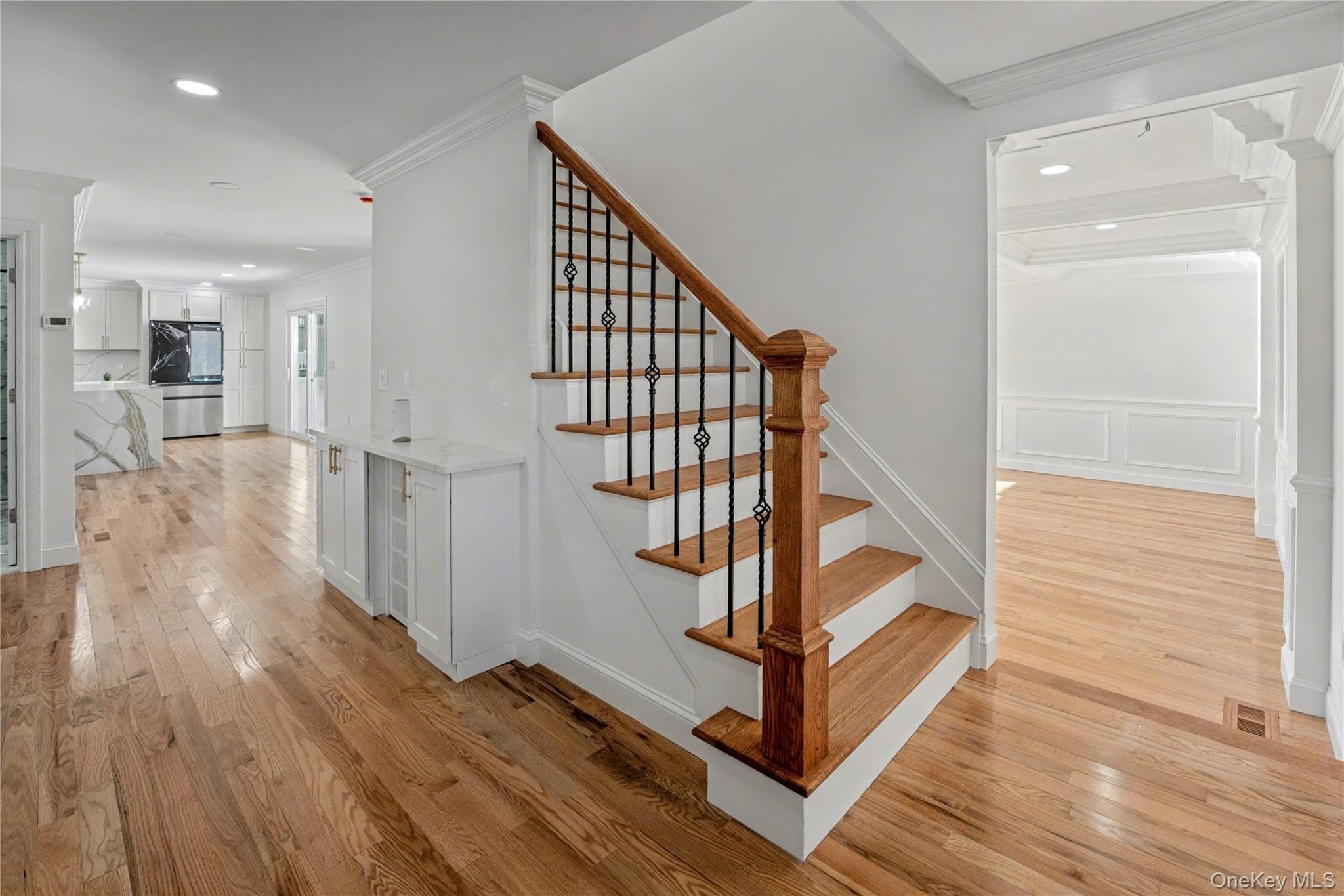 This beautifully renovated 2,680 sq ft modern Colonial home at 219 Granada Parkway, Lindenhurst, NY 11757, is move-in ready and a masterpiece of timeless elegance and modern efficiency. It boasts 5 spacious bedrooms and 3 luxurious bathrooms. Hardwood floors flow throughout, complemented by central air conditioning, energy-saving upgrades, and a full basement for storage. The open-concept chef's kitchen features French doors for natural light, stunning quartz countertops and backsplash, custom cabinetry, a large island, Energy Star appliances (including a smart fridge and professional-grade range), and stylish lighting. A sophisticated room with a coffered ceiling adds elegance, while the primary suite upstairs includes an en-suite bathroom and a walk-in closet. All bathrooms feature high-end fixtures and spa-inspired elements. Outside, enjoy a two-car garage and in-ground sprinklers for easy lawn maintenance. Located near schools, shops, and Venetian Shores Park, this home is in a prime spot.