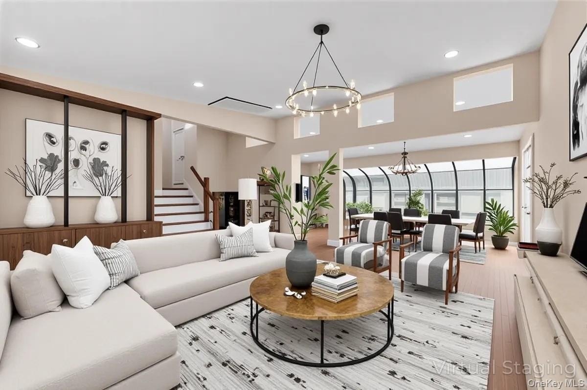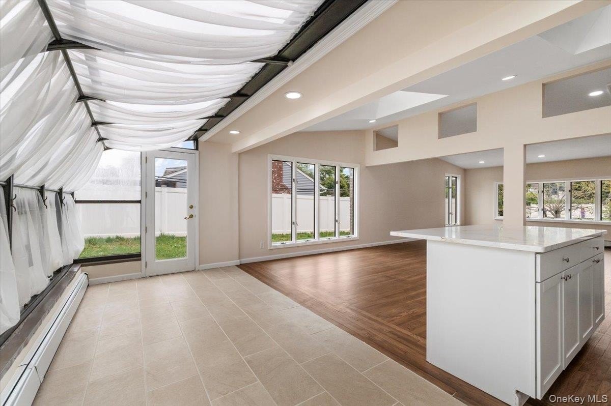 Welcome to 6 Nowick Lane, nestled in the desirable Legend Woods community of Smithtown. This completely renovated split-level home offers modern living with timeless style. The open-concept main level features a custom kitchen with modern finishes and solarium-style windows that fill the space with natural light while overlooking the private, landscaped yard. The primary suite offers a spa-like bathroom including a jacuzzi tub. With 3 full bathrooms throughout, this home is designed for comfort and convenience. The lower level provides a spacious family room and an additional full bath, perfect for multi-generational living or guest accommodations. Move-in ready and designed for today's lifestyle, this home combines elegance, versatility, and privacy in one of Smithtown's most sought-after neighborhoods.