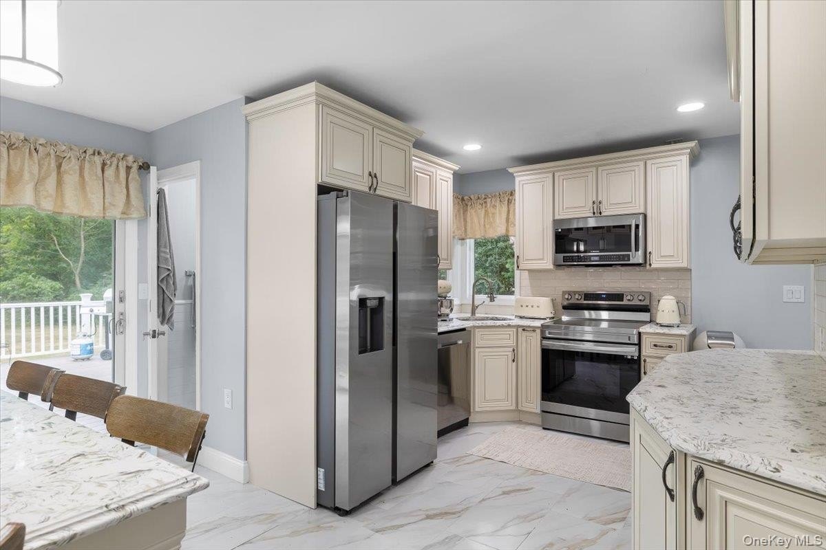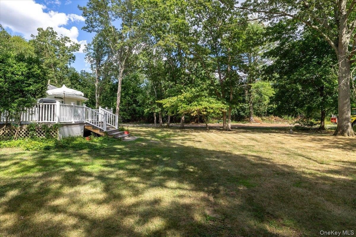 1.03 acres! Zoned for 4 horses, build a barn and a riding area! You'll feel as if you arrived at a home in the country on this quiet dead-end street. Privacy surrounds this charming ranch home sitting on a gorgeous property with perennials, mature shrubs, and stately shade trees. Large living room with stunning wood-burning fireplace, 3 bedrooms, 2 bathrooms, eat-in kitchen. Hardwood floors. Sliding doors lead to a large private deck. Full dry basement with exterior Bilco doors. Easy-to-access retractable attic stairs for additional storage. In-ground sprinkler system with 4 zones, Close to Southern State Parkway, Long Island Expressway, and a train station. Heckscher State Park, Connetquot State Park, and the Bayard Cutting Arboretum are a few of the highlights that surround this location, well well-maintained home with a circular driveway, nice-sized rooms, and hardwood floors under carpeting. Brand new tiled floor and newly renovated kitchen, and hardwood floors in the bedrooms. Completely renovated bathroom with brand new tiles, and the driveway has been extended all the way to behind the house in the backyard.