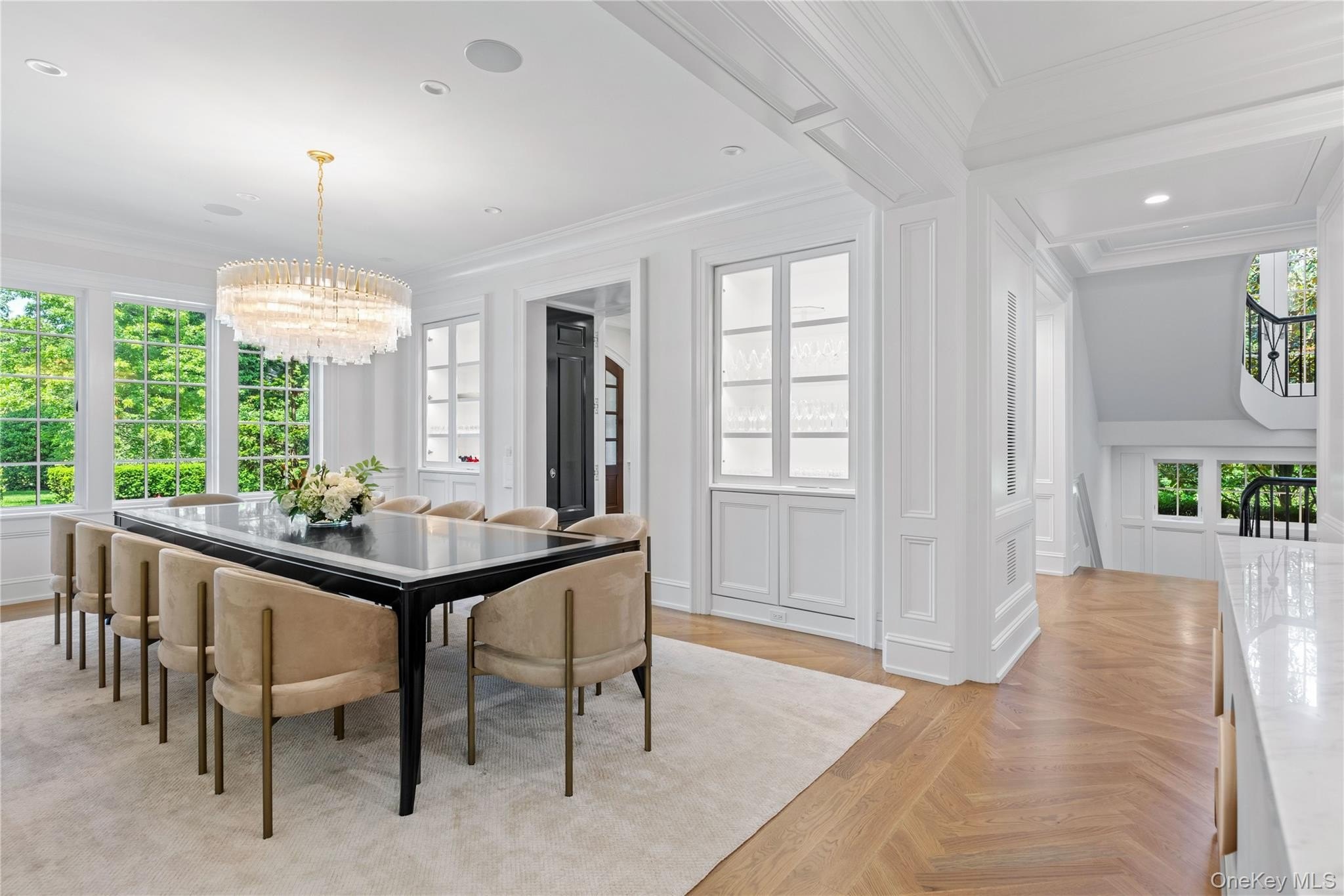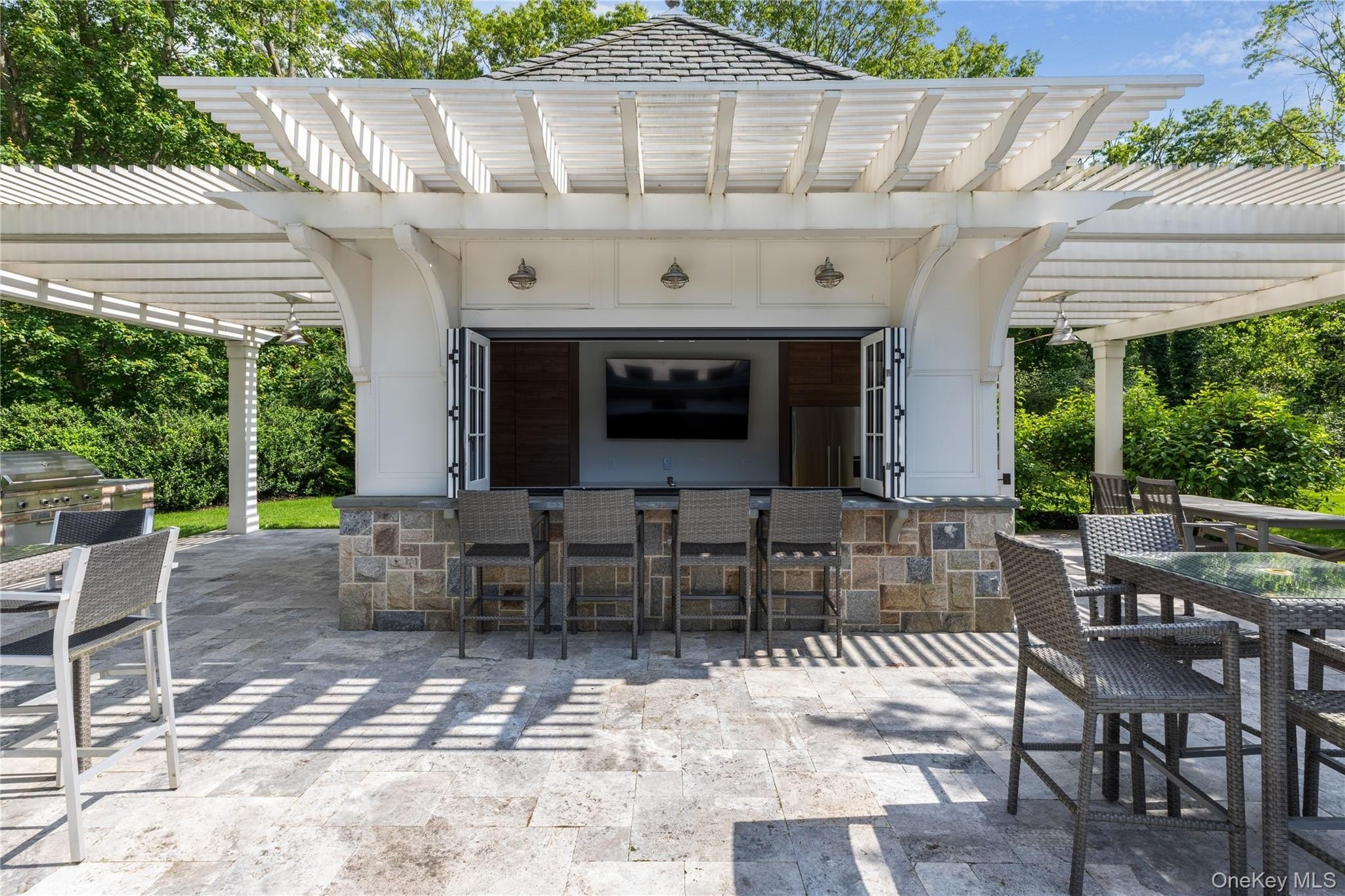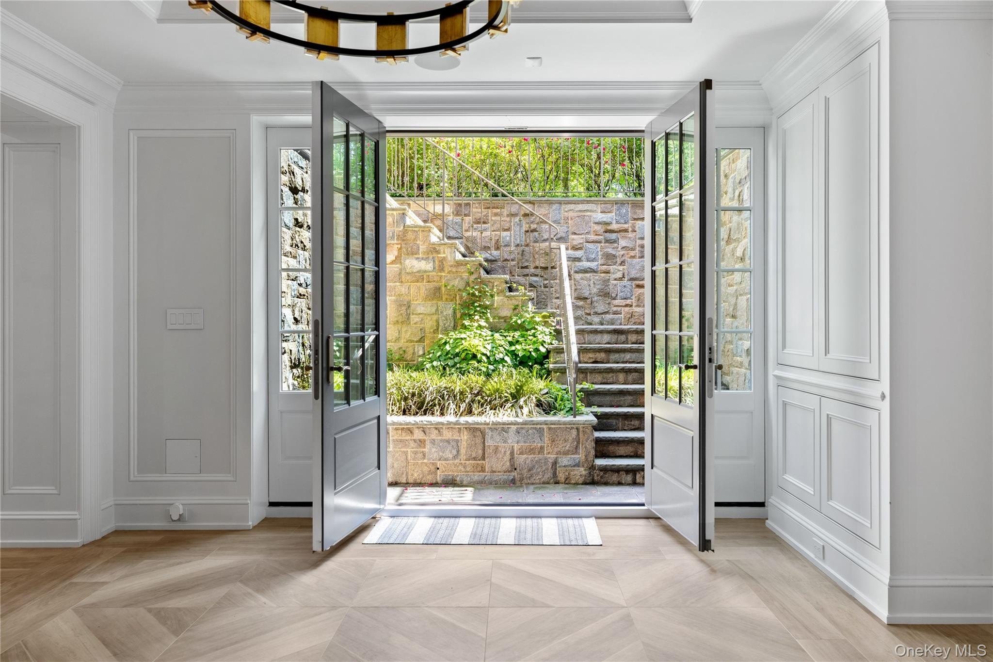Masterpiece in Old Westbury | Where Transitional Elegance Meets Contemporary Luxury Set on 2 perfectly flat and manicured acres, this custom-built estate is a rare blend of architectural excellence and modern sophistication. Constructed with hand-cut genuine granite stone, a slate roof, and zinc leaders and gutters, every inch of this home speaks to timeless craftsmanship and uncompromising quality. Inside, dramatic design moments unfold-beginning with a show-stopping stair tower that cascades from the upper level to the fully finished lower level. Wide-plank white oak floors in a herringbone pattern, extensive millwork, and exotic stone and marble throughout set a tone of refined luxury. The grand chef's kitchen is the heart of the home, anchored by a massive center island wrapped in rare Brazilian quartzite, and seamlessly connected to an oversized family room with fireplace and triple French doors leading outdoors. A formal dining room with custom built-ins, archways, and uplighting creates an elegant setting for entertaining. All bedrooms are en-suite, featuring uniquely designed marble-clad bathrooms. The primary suite is a private retreat overlooking the grounds, offering dual dressing rooms, two separate spa baths, and a steam shower. A gas fireplace adds warmth and ambiance to the bedroom. A first-floor library/home office with a gas fireplace provides a quiet, refined workspace. The lower level redefines entertaining with a striking wet bar, wine refrigeration, poker room, media lounge with marble fireplace, state-of-the-art fitness center, and a dedicated steam shower. Additional highlights include Control4 full smart home automation for lighting, climate, security, and audio, radiant heat throughout, soaring ceilings, oversized windows, built-in speakers inside and out, and extensive custom cabinetry. The exterior is equally extraordinary-featuring a gunite pool and spa with travertine surround and automatic cover, a full-house generator, outdoor fireplace, fire pit, and multiple lounge areas. An outdoor kitchen further elevates the entertaining experience. The full-service pool house/cabana offers panoramic windows that fully open, a full kitchen, full bathroom, laundry, and an outdoor shower-perfect for seamless indoor-outdoor living. The property also includes a heated 3-car garage, a dog spa, and three separate laundry rooms. This is more than a home-it's a lifestyle estate for those who demand the absolute best in design, function, and finish.