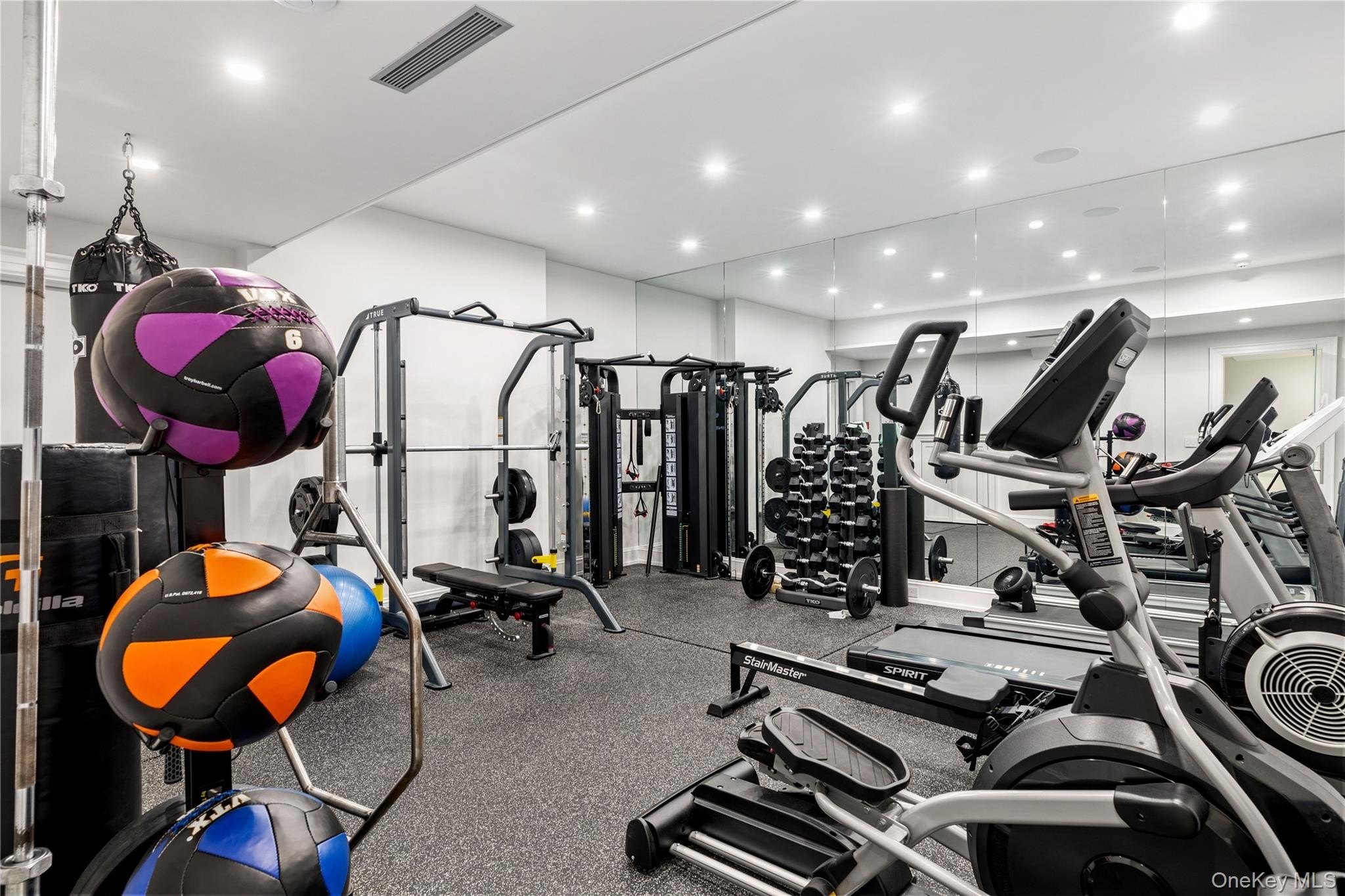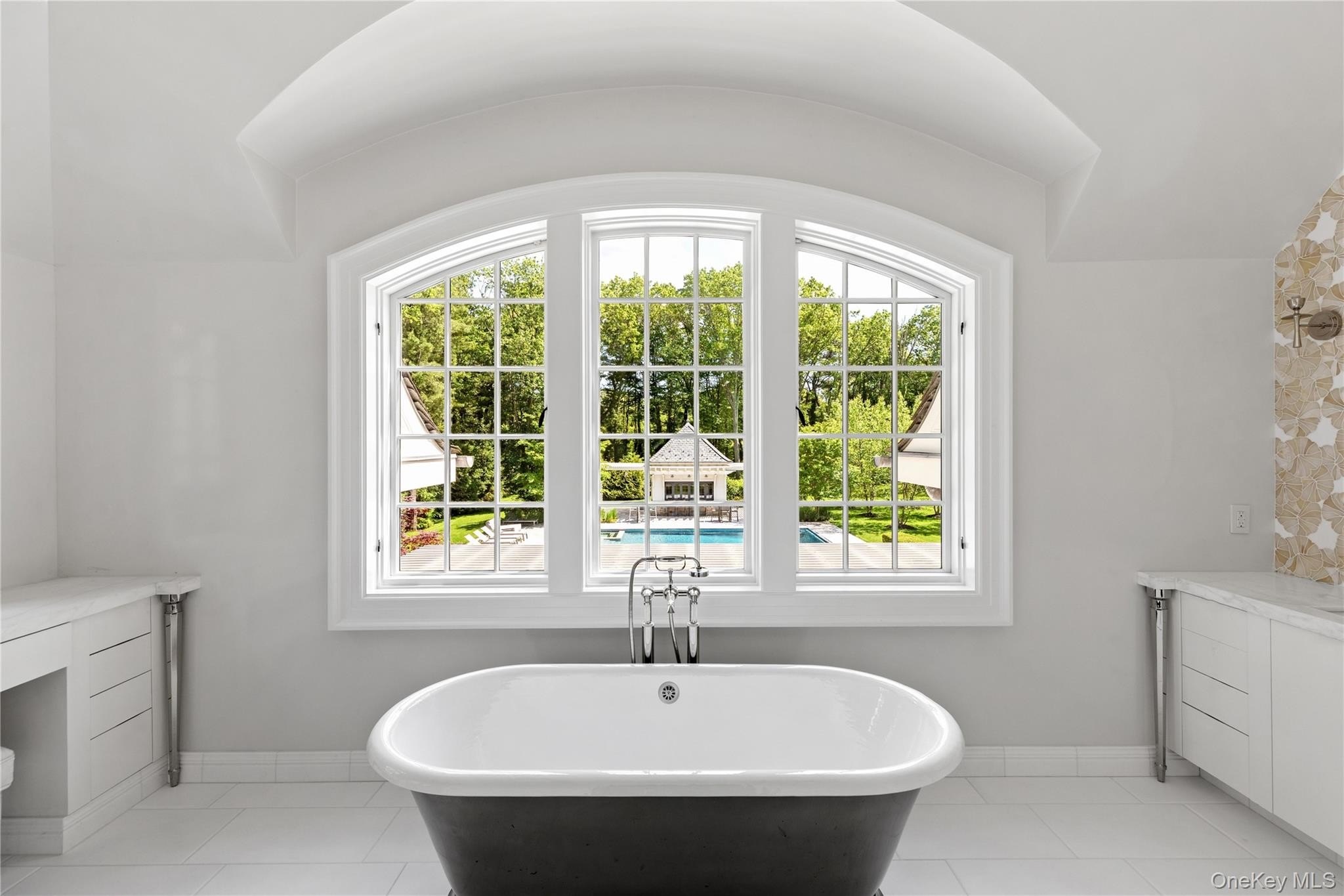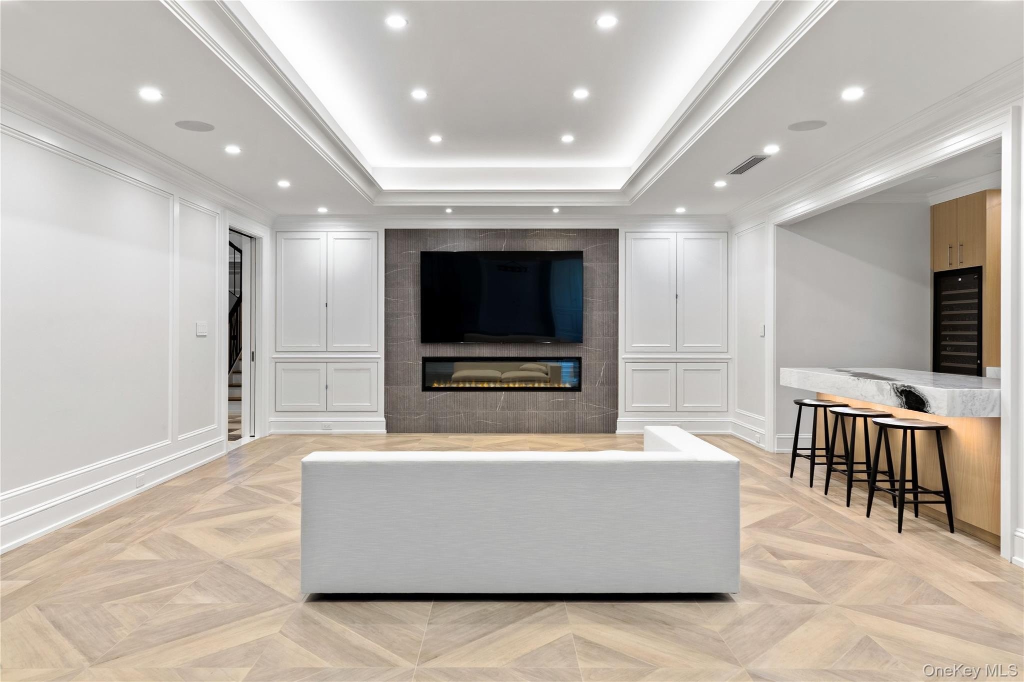 Masterpiece in Old Westbury | Where Transitional Elegance Meets Contemporary Luxury Set on 2 perfectly flat and manicured acres, this custom-built estate is a rare blend of architectural excellence and modern sophistication. Constructed with hand-cut genuine granite stone, a slate roof, and zinc leaders and gutters, every inch of this home speaks to timeless craftsmanship and uncompromising quality. Inside, dramatic design moments unfold-beginning with a show-stopping stair tower that cascades from the upper level to the fully finished lower level. Wide-plank white oak floors in a herringbone pattern, extensive millwork, and exotic stone and marble throughout set a tone of refined luxury. The grand chef's kitchen is the heart of the home, anchored by a massive center island wrapped in rare Brazilian quartzite, and seamlessly connected to an oversized family room with fireplace and triple French doors leading outdoors. A formal dining room with custom built-ins, archways, and uplighting creates an elegant setting for entertaining. All bedrooms are en-suite, featuring uniquely designed marble-clad bathrooms. The primary suite is a private retreat overlooking the grounds, offering dual dressing rooms, two separate spa baths, and a steam shower. A gas fireplace adds warmth and ambiance to the bedroom. A first-floor library/home office with a gas fireplace provides a quiet, refined workspace. The lower level redefines entertaining with a striking wet bar, wine refrigeration, poker room, media lounge with marble fireplace, state-of-the-art fitness center, and a dedicated steam shower. Additional highlights include Control4 full smart home automation for lighting, climate, security, and audio, radiant heat throughout, soaring ceilings, oversized windows, built-in speakers inside and out, and extensive custom cabinetry. The exterior is equally extraordinary-featuring a gunite pool and spa with travertine surround and automatic cover, a full-house generator, outdoor fireplace, fire pit, and multiple lounge areas. An outdoor kitchen further elevates the entertaining experience. The full-service pool house/cabana offers panoramic windows that fully open, a full kitchen, full bathroom, laundry, and an outdoor shower-perfect for seamless indoor-outdoor living. The property also includes a heated 3-car garage, a dog spa, and three separate laundry rooms. This is more than a home-it's a lifestyle estate for those who demand the absolute best in design, function, and finish.