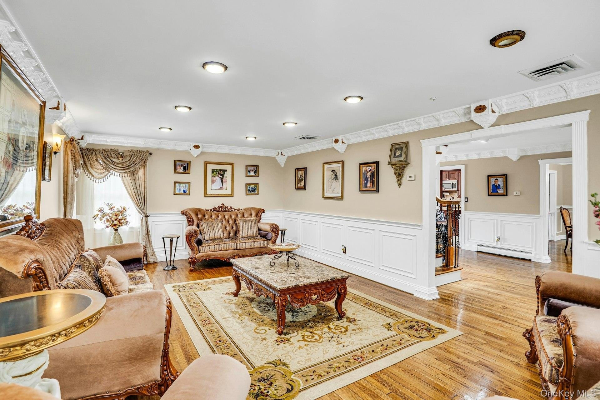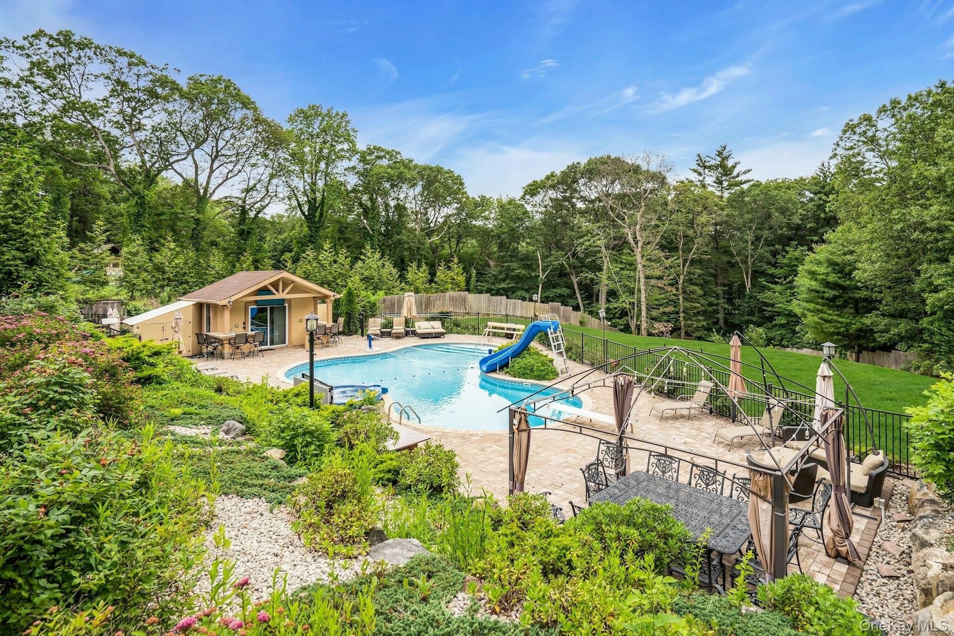This is the home you have been looking for! This expanded colonial in the heart of the sought-after Imperial Gardens sits on a beautifully landscaped 1 acre. The circular driveway enhances the curb appeal of the home, and the backyard is an entertainer's dream come true. Entering the home, you step into the center hall with custom moldings all around and a bridle staircase. The formal dining room can seat 12 comfortably. The formal living room is big and has hardwood flooring. The gourmet kitchen features custom cabinetry and fabulous stainless steel appliances. This is a gas house, so there is a VIKING range with 6 burners, a griddle, and 2 ovens (9 years). The refrigerator is a Samsung and is 8 years old, and the LG dishwasher is 2 months old. There is a large center island, lots of windows, and a door to the patio. The windows are Andersen's and are all approximately 8 years old. There is a first-floor bedroom/office with access to a full bath. The primary bedroom is ample with hardwood floors, a walk-in closet, and a bonus room to use as an office, gym, dressing room or nursery. All the bedrooms are nice sizes. The basement has a beautiful separate space for guests, with a wet bar (which can be a kitchen), great den, full bath, and outside entrance. Then there is the second part of the basement that also has a great den. The yard is a treat! It features a heated, Salt-Water in-ground pool with a slide and a hot tub. The landscaping and retaining walls are exceptional and top of the line. The liner is 7 years old. Enjoy yourself lounging by the pool, and if it gets too hot, just go cool off in the cabana! Have a BBQ down by the pool or enjoy a gathering on the enormous patio with the outdoor kitchen with a real PIZZA OVEN! Solar panels are owned. There is a whole house generator (15 years), a Boiler (5 zones) is 8 years, a Tankless Hot Water Heater, CAC (8 years), the Primary bathroom and basement have radiant heated floors. The cesspool is original but was maintained and pumped 2 years ago. There is an EV charger in the 2-car garage. HHH SD #5 - Vanderbilt, Candlewood, HHH West.