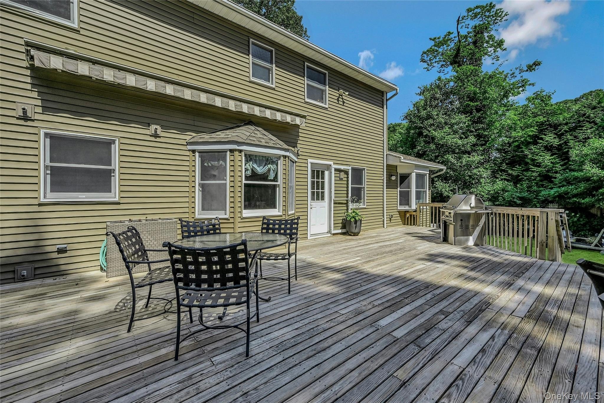 This 5 bedroom Colonial, totaling 3700sqft, is situated on a rare .82 acre in desired E. Setauket neighborhood. Spacious main living rooms include formal living & dining rooms, eat-in kitchen, sun drenched office with custom built-ins. The grand den features vaulted ceilings, skylights, fireplace, new floors and sliding doors to pool. The expansive primary suite is the perfect place to unwind from the day with new hardwood floors, surround sound speakers, trey ceilings, 2 walk-in closets, dressing area and sun-drenched ensuite bath, complete with spa tub and separate shower. Additional living space with a den, game room, full bathroom and work room in the basement. The exterior offers a variety of entertainment spaces: gated raised deck, fenced yard, inground gunite pool area (new filter and pump) and separate expansive athletic field (room for sport court). Updates include roof, siding, windows, CAC handlers, kitchen, hardwood floors through den & 2nd floor, 200 Amp electric and house generator. Located a few blocks from Gelinas Junior High, Frank Melville Park, weekly farmer's market, art galleries and nature preserve. Idyllic life with space for all.