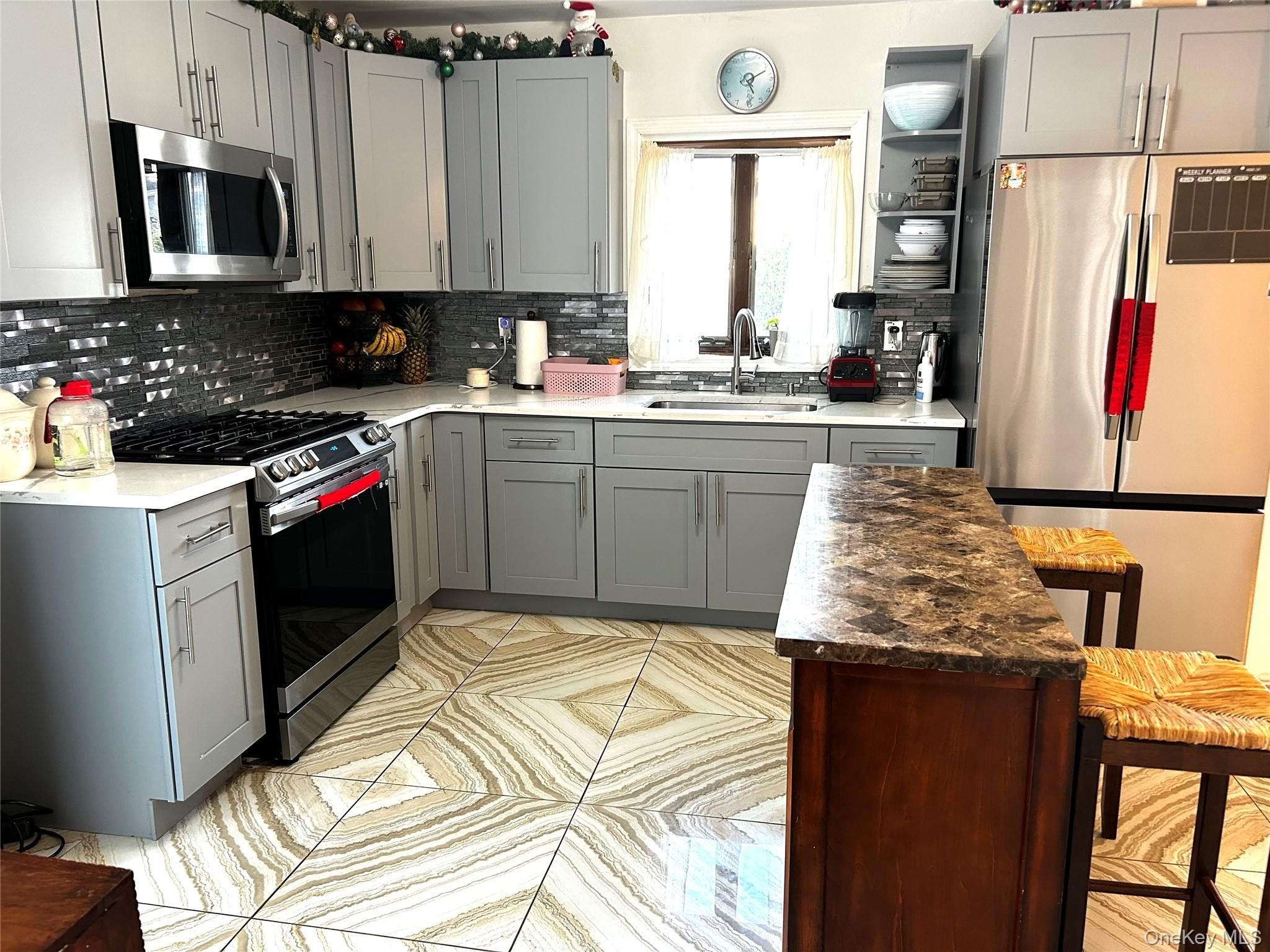 Bigger than it appears!! Fantastic Legal two family, First floor has two bedrooms, full bathroom, beautiful updated eat in kitchen tile floors, large living room with fireplace and wood floors, Second floor has two bedrooms, full bathroom, beautiful updated eat in kitchen, living room. Finished basement with laundry room, Park like yard, two car garage with long driveway, solar panels for second floor 56.00 monthly for 25 yrs. Village of Lynbrook has a community pool you can join, Lynbrook has its own private police department and private fire department. A recreation center for all. So much to offer in this community, along with being close to LIRR, shopping and restaurants. Lets make a deal!!