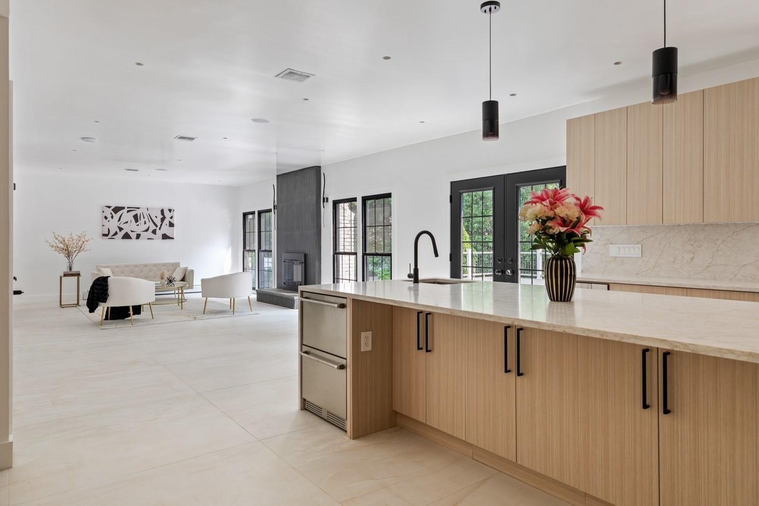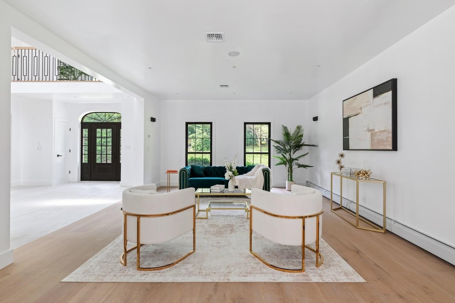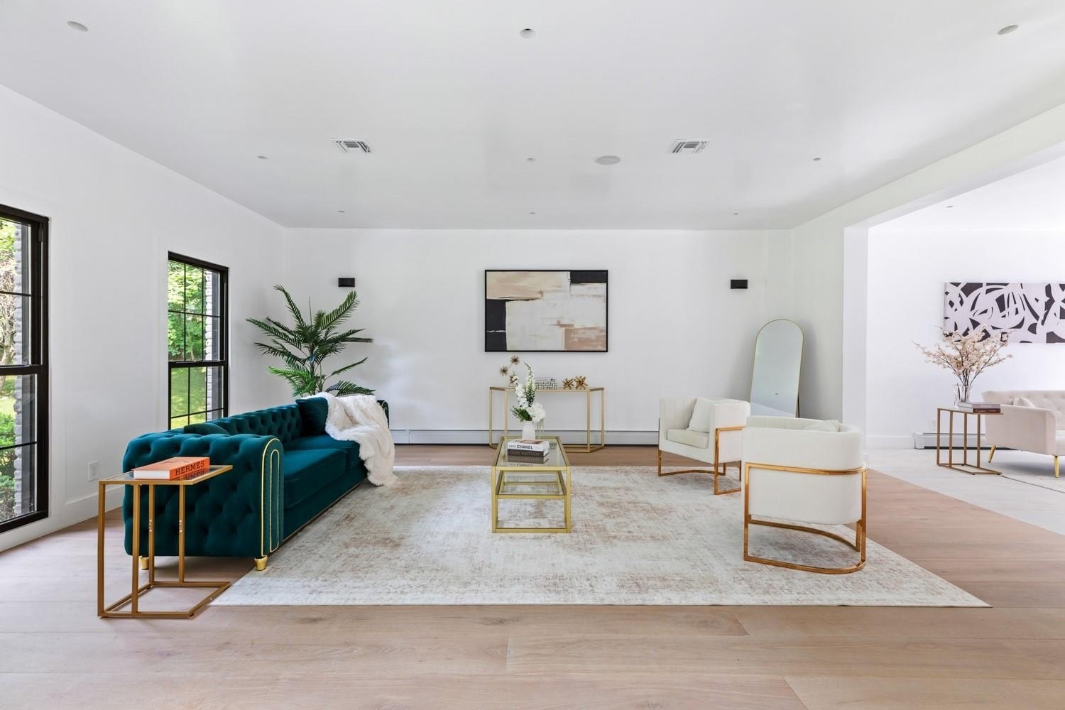 Welcome to a rare opportunity to own a fully renovated and extended estate-rebuilt from the studs up and reimagined for modern luxury in the heart of one of Long Island's most coveted neighborhoods. Set on a beautifully manicured 2 acre lot, this 6-bedroom, 5.5-bathroom smart residence combines sophisticated design, premium finishes, and cutting-edge amenities, offering a seamless blend of elegance. Every inch of the home reflects quality and intention-from the radiant heated floors throughout the entire main level and every bathroom to the sleek, designer fixtures and finishes throughout. The gracious first floor features a private guest suite with a separate entrance, ideal for extended family and guests. The chef's kitchen is the true centerpiece-a culinary dream outfitted with a massive center island, top-tier stainless steel appliances, including a 48" Bertazzoni induction range with double ovens, oversized refrigerator and freezer, dual dishwashers, custom cabinetry, beverage drawers, and thoughtful built-ins-all designed to inspire both intimate dinners and large-scale entertaining. The second floor is home to a luxurious primary suite with a spa-inspired en-suite bath, radiant heated floors, oversized closet, and tranquil views of the property. Three additional spacious bedrooms upstairs offer generous closets, and large windows that flood the rooms with natural light. With a dedicated second-floor laundry area, convenience meets everyday function for busy households. The fully finished basement features its own private exterior entrance and offers an abundance of versatile space, including a wine cellar, gym, recreation, full laundry room, and more- The home's brand-new exterior features include a new roof, striking black energy-efficient windows, and a large Trex deck that opens from the kitchen to your own private oasis complete with an in-ground pool. Every system has been updated-new electrical, plumbing, floors, HVAC, and insulation-ensuring true turnkey luxury living. This is more than a home-it's a statement. A rare offering of timeless craftsmanship and modern design in one of the most distinguished enclaves.