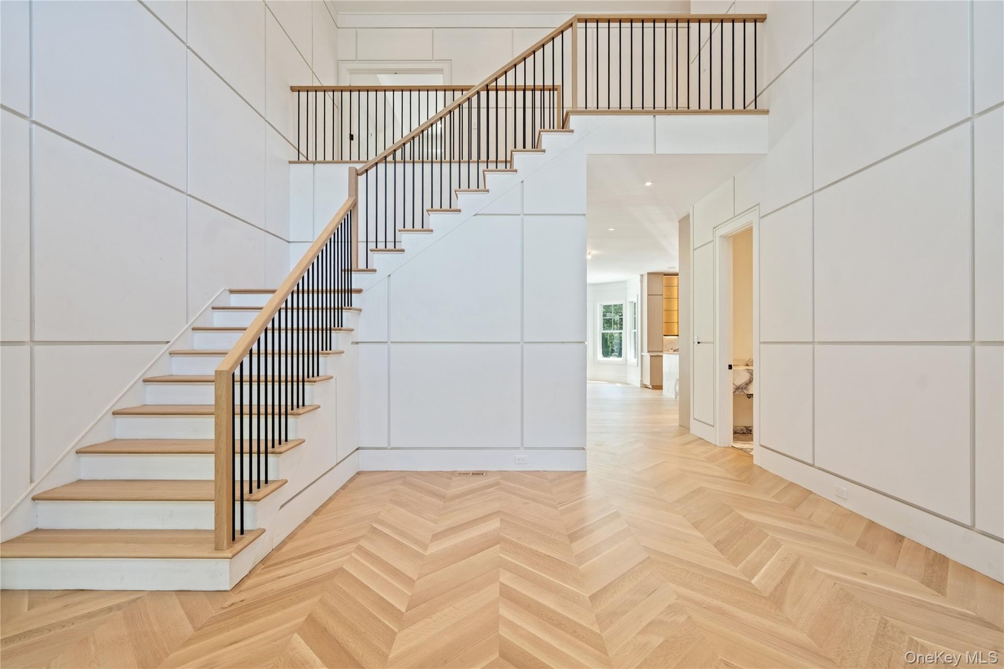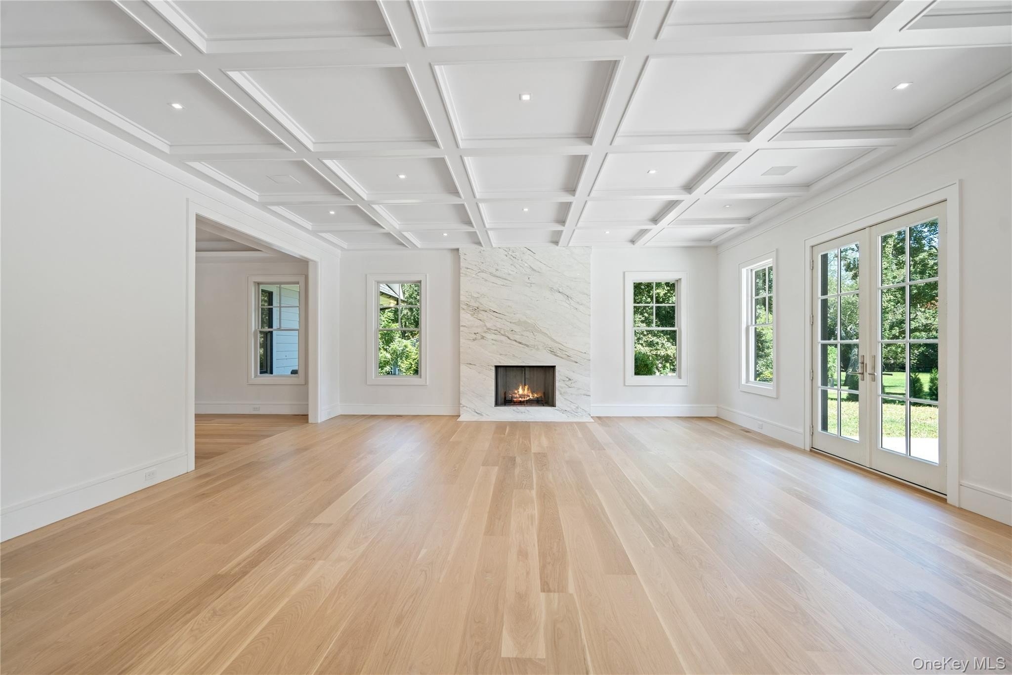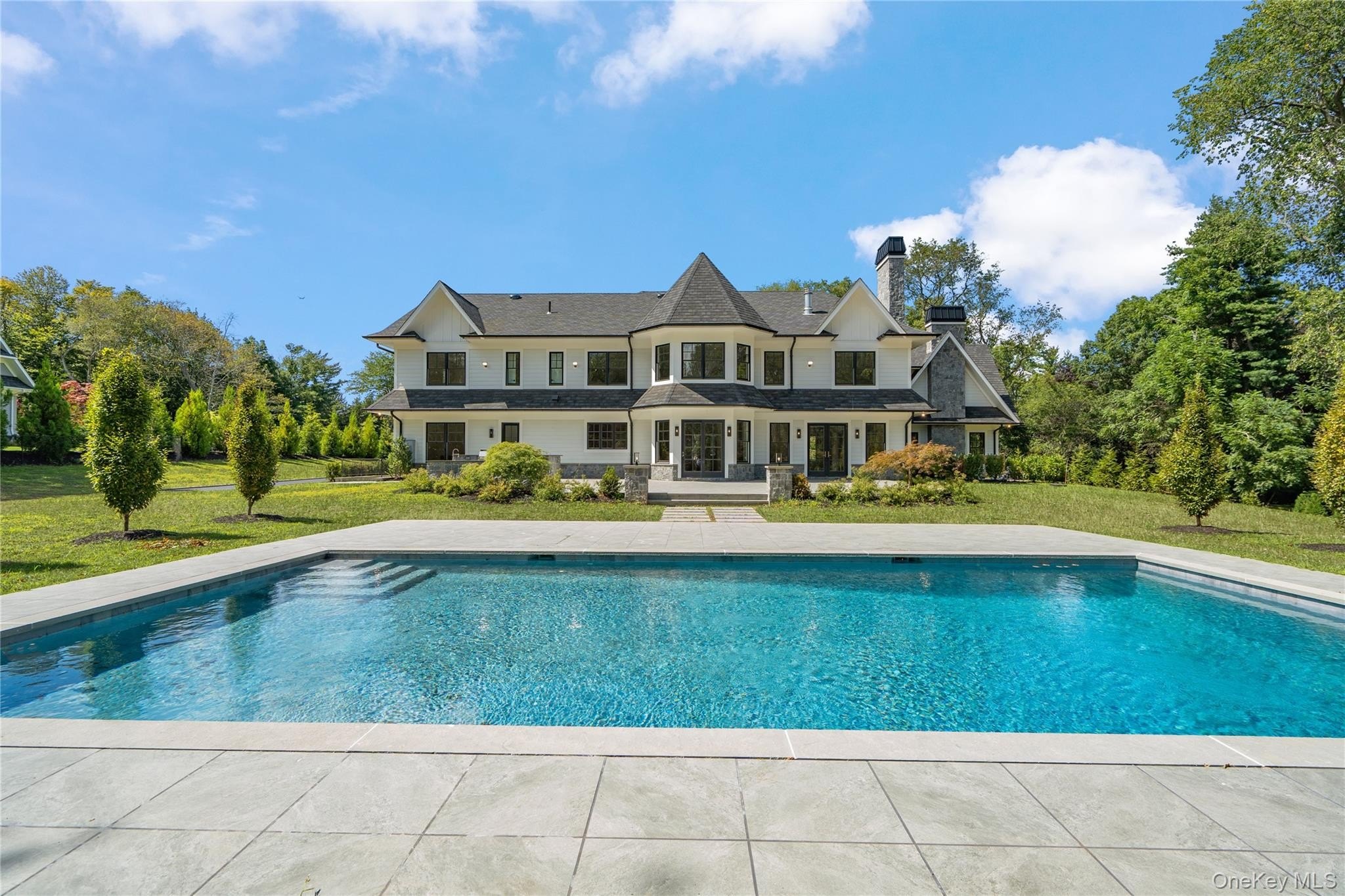 Brookville | An immaculate modern colonial has made its debut in Brookville. Sitting on 2.57 acres and totaling over 8,600 sq.ft. of living space, welcome to 8 Dogwood Hill - a newly completed luxury residence located on a lengthy, picturesque street just off of Cedar Swamp Road. Beyond the stone pillar entrance at the end of the driveway are two courtyards with belgium block accents that lead to the home - featuring a sleek white exterior, complemented with stone accents and black windows. Entering through the front door welcomes you into the lofty foyer, revealing an elegant staircase leading to the second floor, large coat closet and marble powder room, catering to guests. Hidden behind a translucent glass door off the formal living room is a truly breathtaking space - a den with airy, cathedral ceilings, creamy oak paneling, and centered around a marble-encased fireplace. Paired with a powder room, this den can be transformed into a cozy retreat or private office space. Adding to the open-concept flow of the first floor, the formal living room leads to a spacious family room with a second marble fireplace, breakfast nook and the heart of the home - a custom chef's kitchen. Complete with a waterfall marble island, white oak cabinetry, paneled dual dishwashers and Sub-Zero refrigerator & freezer, envision everyday meals, holiday gatherings, and hosted parties in this aesthetic and inviting atmosphere. Off the kitchen is a galley-style butler's pantry providing extra storage and a wet bar, leading to the formal dining room. Thoughtfully curated for the modern lifestyle is an optimized service area, conveniently connecting the main living quarters to the rest of the home and property. The mudroom connects a back, side, and garage entrance to built-in storage, a hidden pantry, and access to all three floors via the backstaircase or elevator. Additionally, the first floor full bathroom is accessible via an outdoor entrance off the pool, and the first floor bedroom provides an excellent guest space or maid's quarters. Making way upstairs and hidden behind double doors is a grand primary suite - offering an open bedroom and sitting area, separated by a double-sided marble fireplace. Just past the huge walk-in closet with build-in storage and island is a spa-like bathroom, with floor to ceiling marble tiling. Featuring a soaking tub with views of the front courtyard, double vanities and makeup station, the main highlight of possibly the entire home is a stunning, oversized walk-in shower. A rainfall showerhead is centered around steamers, body jets, and handhelds, with two benches, creating a tranquil escape to wash the day away. The second floor contains the remaining four bedrooms all feature en-suite full bathrooms and walk-in closets, full laundry room, and opportune bonus room with the potential to be transformed into a home office or play room. Outside, a 40' x 20' saltwater and heated gunite pool is surrounded by an expansive patio with outdoor kitchen, transforming the backyard into a private oasis. It also offers the opportunity to add personal amenities, such as a tennis/sports court or pool house, catering to your every need. The property features additional perks such as a full-home generator, central vac, radiant heat under all tile, smart home system, 3-car heated garage and an expansive lower level with outside access and potential to transform into a home gym/wellness center, media room, wine cellar or additional storage. Blending the Hamptons' aesthetic and resort lifestyle with the prestige of Long Island's North Shore-all while offering effortless access to New York City-8 Dogwood Hill embodies the very best of modern luxury living.