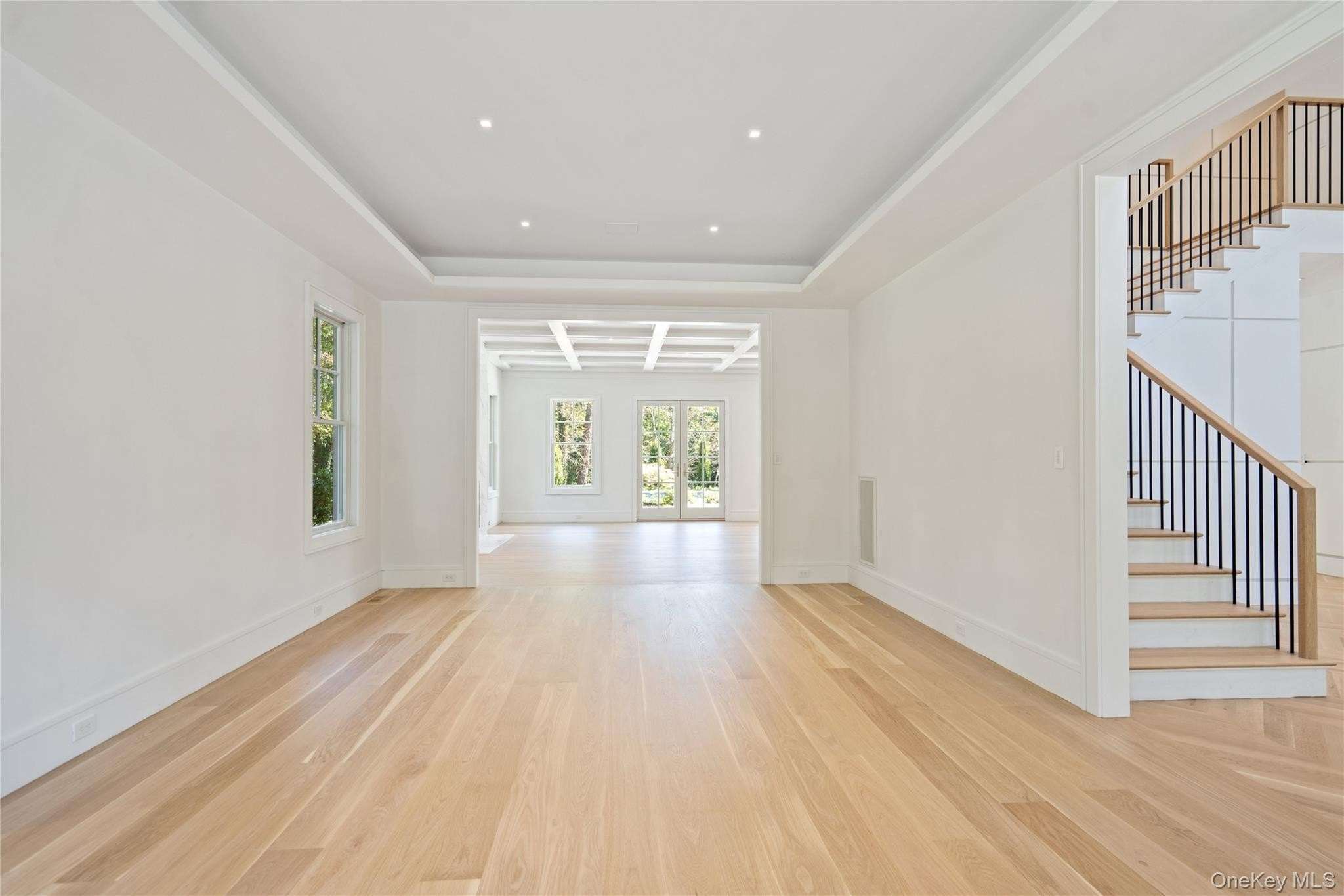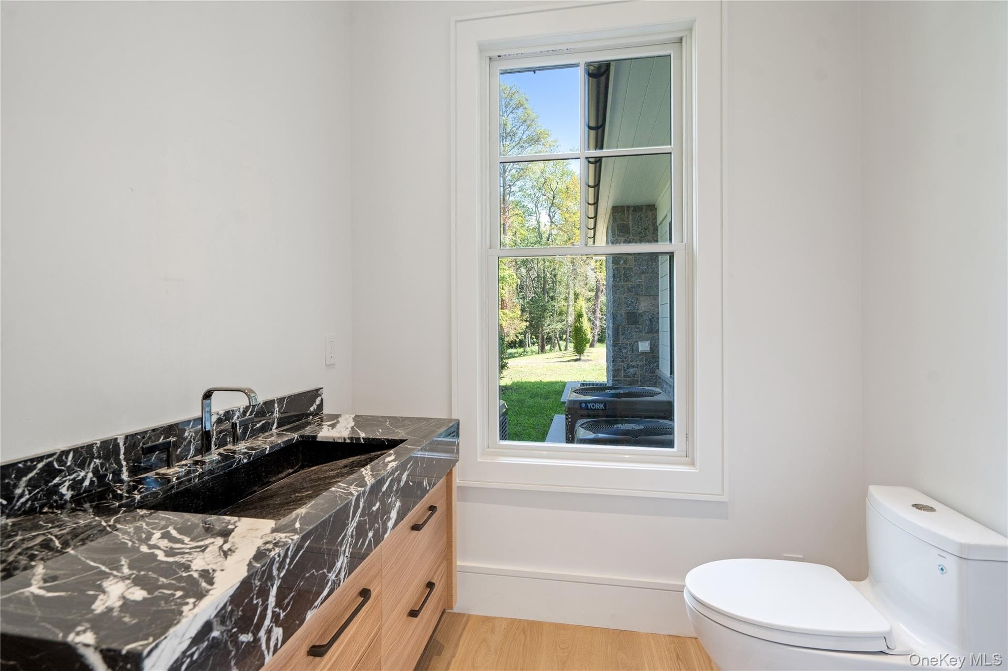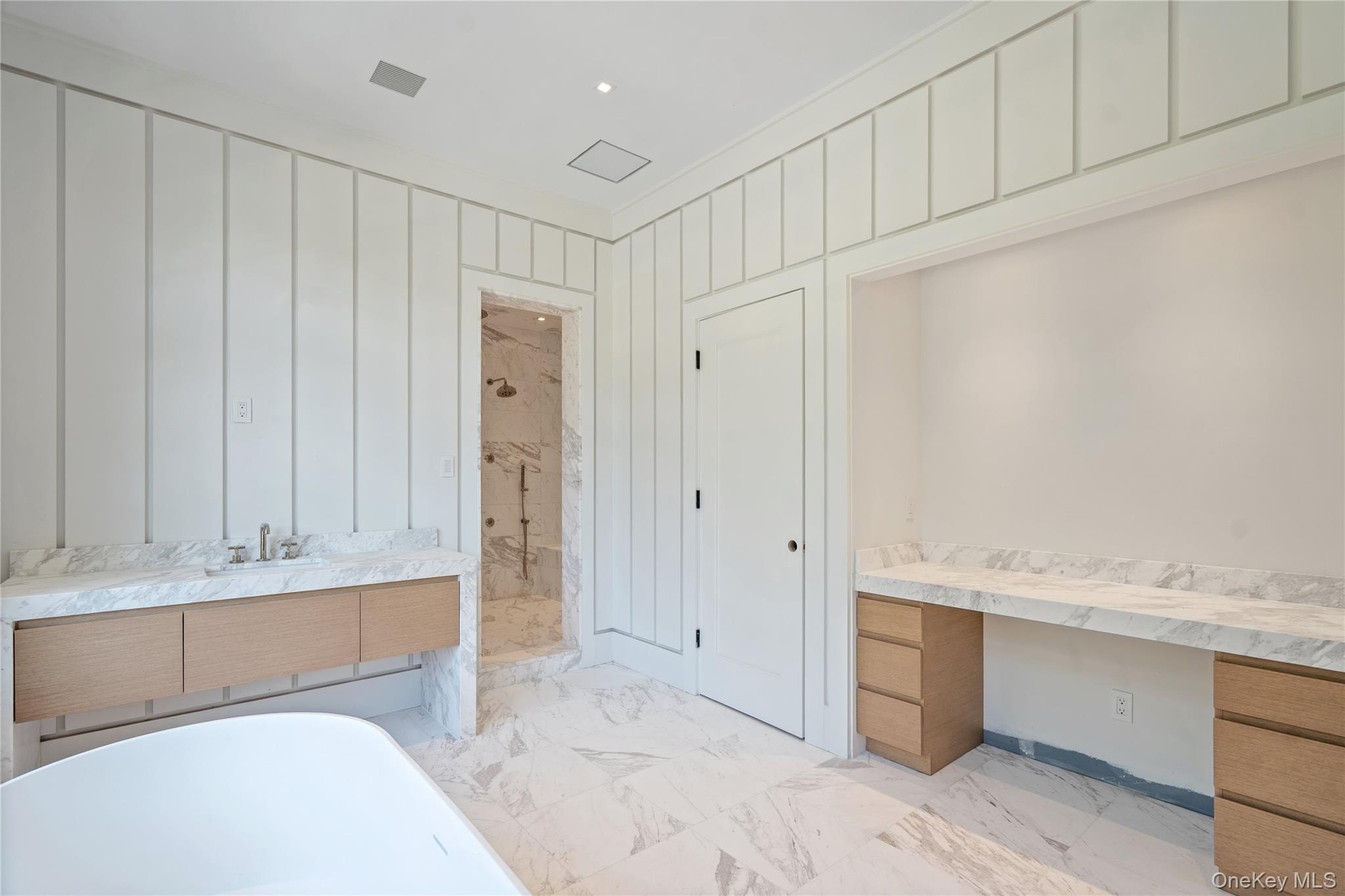 Brookville | An immaculate modern colonial has made its debut in Brookville. Sitting on 2.57 acres and totaling over 8,600 sq.ft. of living space, welcome to 8 Dogwood Hill - a newly completed luxury residence located on a lengthy, picturesque street just off of Cedar Swamp Road. Beyond the stone pillar entrance at the end of the driveway are two courtyards with belgium block accents that lead to the home - featuring a sleek white exterior, complemented with stone accents and black windows. Entering through the front door welcomes you into the lofty foyer, revealing an elegant staircase leading to the second floor, large coat closet and marble powder room, catering to guests. Hidden behind a translucent glass door off the formal living room is a truly breathtaking space - a den with airy, cathedral ceilings, creamy oak paneling, and centered around a marble-encased fireplace. Paired with a powder room, this den can be transformed into a cozy retreat or private office space. Adding to the open-concept flow of the first floor, the formal living room leads to a spacious family room with a second marble fireplace, breakfast nook and the heart of the home - a custom chef's kitchen. Complete with a waterfall marble island, white oak cabinetry, paneled dual dishwashers and Sub-Zero refrigerator & freezer, envision everyday meals, holiday gatherings, and hosted parties in this aesthetic and inviting atmosphere. Off the kitchen is a galley-style butler's pantry providing extra storage and a wet bar, leading to the formal dining room. Thoughtfully curated for the modern lifestyle is an optimized service area, conveniently connecting the main living quarters to the rest of the home and property. The mudroom connects a back, side, and garage entrance to built-in storage, a hidden pantry, and access to all three floors via the backstaircase or elevator. Additionally, the first floor full bathroom is accessible via an outdoor entrance off the pool, and the first floor bedroom provides an excellent guest space or maid's quarters. Making way upstairs and hidden behind double doors is a grand primary suite - offering an open bedroom and sitting area, separated by a double-sided marble fireplace. Just past the huge walk-in closet with build-in storage and island is a spa-like bathroom, with floor to ceiling marble tiling. Featuring a soaking tub with views of the front courtyard, double vanities and makeup station, the main highlight of possibly the entire home is a stunning, oversized walk-in shower. A rainfall showerhead is centered around steamers, body jets, and handhelds, with two benches, creating a tranquil escape to wash the day away. The second floor contains the remaining four bedrooms all feature en-suite full bathrooms and walk-in closets, full laundry room, and opportune bonus room with the potential to be transformed into a home office or play room. Outside, a 40' x 20' saltwater and heated gunite pool is surrounded by an expansive patio with outdoor kitchen, transforming the backyard into a private oasis. It also offers the opportunity to add personal amenities, such as a tennis/sports court or pool house, catering to your every need. The property features additional perks such as a full-home generator, central vac, radiant heat under all tile, smart home system, 3-car heated garage and an expansive lower level with outside access and potential to transform into a home gym/wellness center, media room, wine cellar or additional storage. Blending the Hamptons' aesthetic and resort lifestyle with the prestige of Long Island's North Shore-all while offering effortless access to New York City-8 Dogwood Hill embodies the very best of modern luxury living.