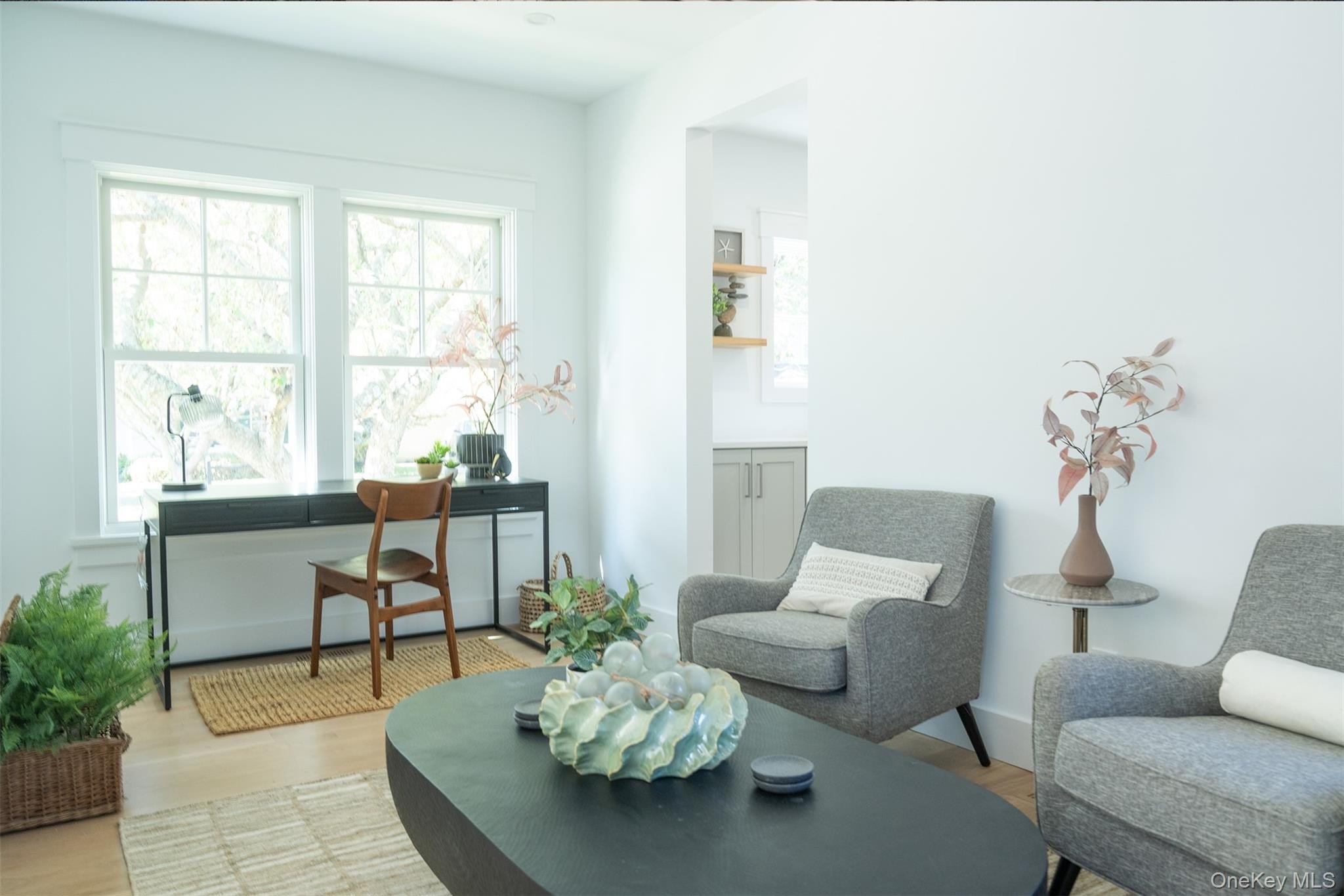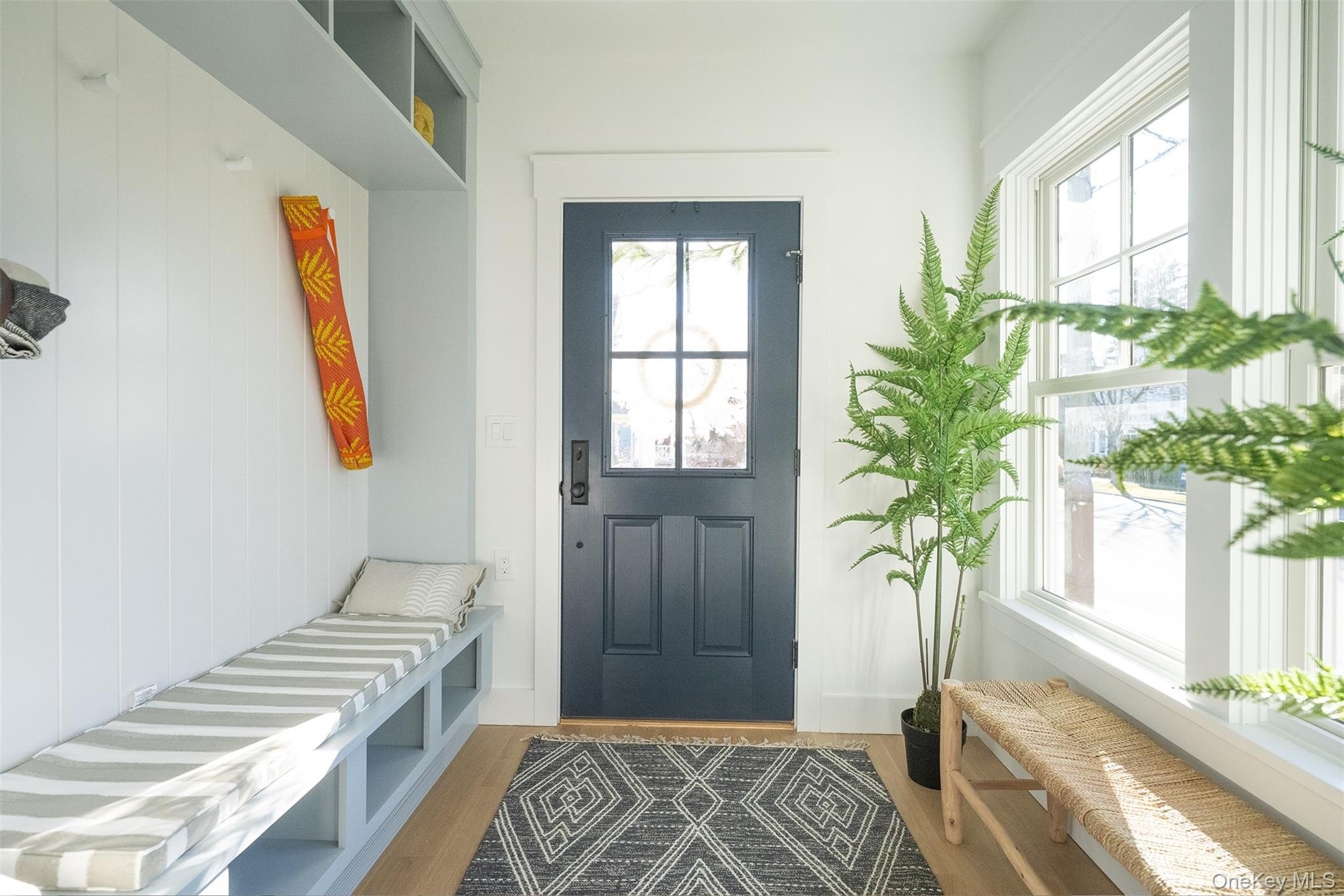 Okay, so I went to this house and it actually just works. You come in and there's this built in coat rack with cubbies for shoes (like finally, a spot for beach stuff). The first floor is totally open, living, dining, kitchen are all connected so everyone can hang out while you cook. Off the kitchen there's a porch set up for sitting and eating, and it looks right out to a cute backyard. The mudroom is clutch, storage cabinets, laundry, and a half bath, and a door straight outside. Plus there's a detached garage that's basically your beach gear locker, and the beach is literally a block away. it's just been completely renovated but still feels like Greenport Village, and with the low maintenance coastal siding, new windows, insulation, roof, funace are already done, we don't have to do any work. Also, you're like .3 miles to the shops, LIRR, Hampton Jitney and Shelter Island Ferry, so weekends are super easy for adventures. This is a Holiday Home that can work for us.
