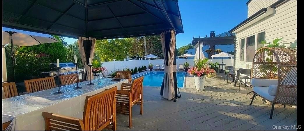 Welcome to your dream home in Deer Park! Nestled on a quiet Cul-De-Sac, this beautiful 4-bedroom, 3-bath Colonial offers the perfect blend of comfort, style, and modern updates. Step inside to a bright and inviting living room featuring a cozy fireplace, ideal for relaxing evenings. The updated kitchen is a true showstopper, boasting sleek finishes, ample cabinetry, and a seamless flow into the dining and entertaining spaces. Upstairs, you'll find generously sized bedrooms, including a primary suite with a spacious walk-in closet and primary bath. Outside, the backyard is a private oasis designed for year-round enjoyment. Take a dip in the sparkling inground pool, entertain on the deck, or unwind around the fire pit in the grassy area. An attached garage provides additional convenience and storage.This home is the complete package-offering space, updates, and an incredible outdoor retreat-all in a desirable Deer Park location.