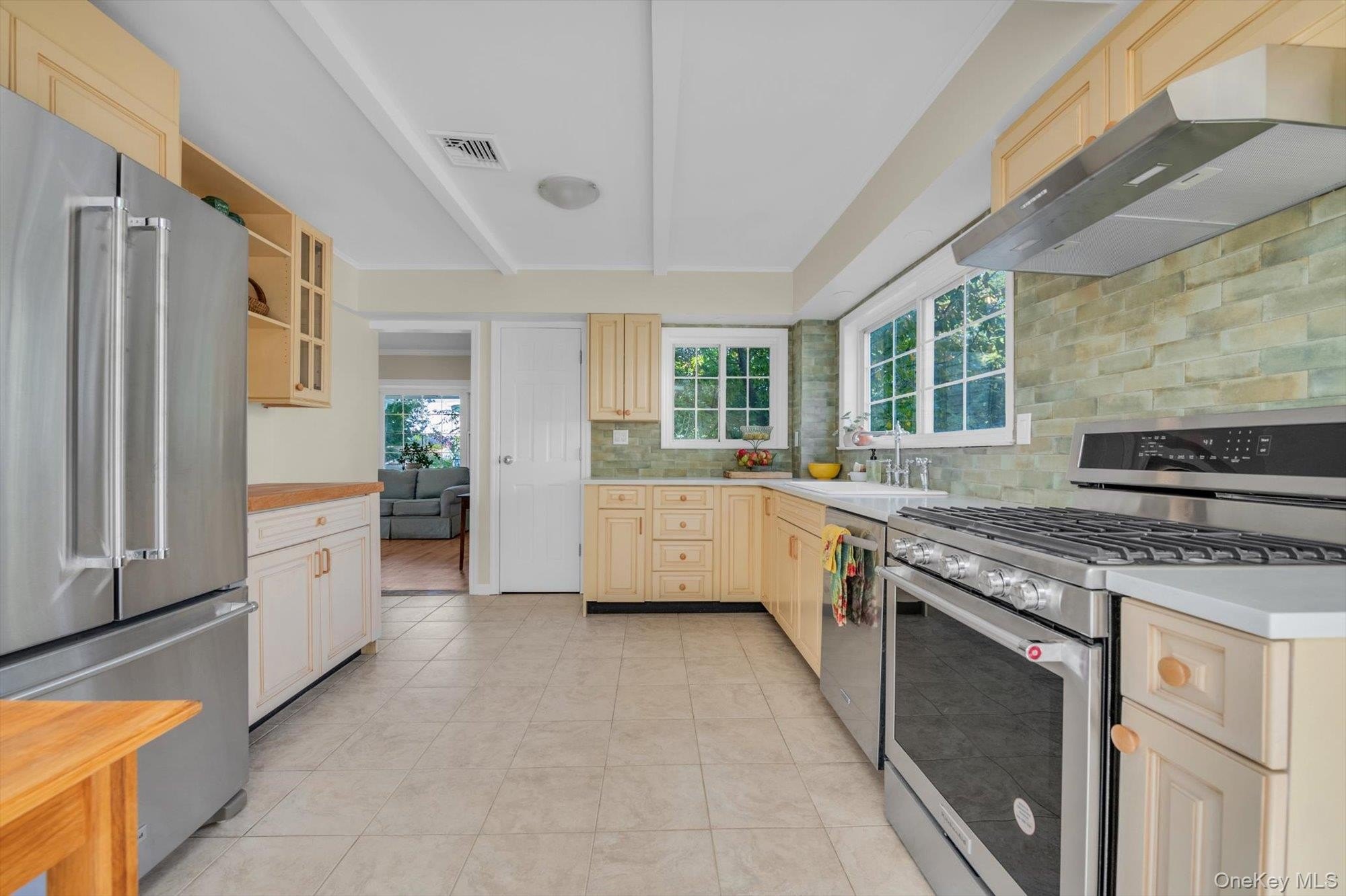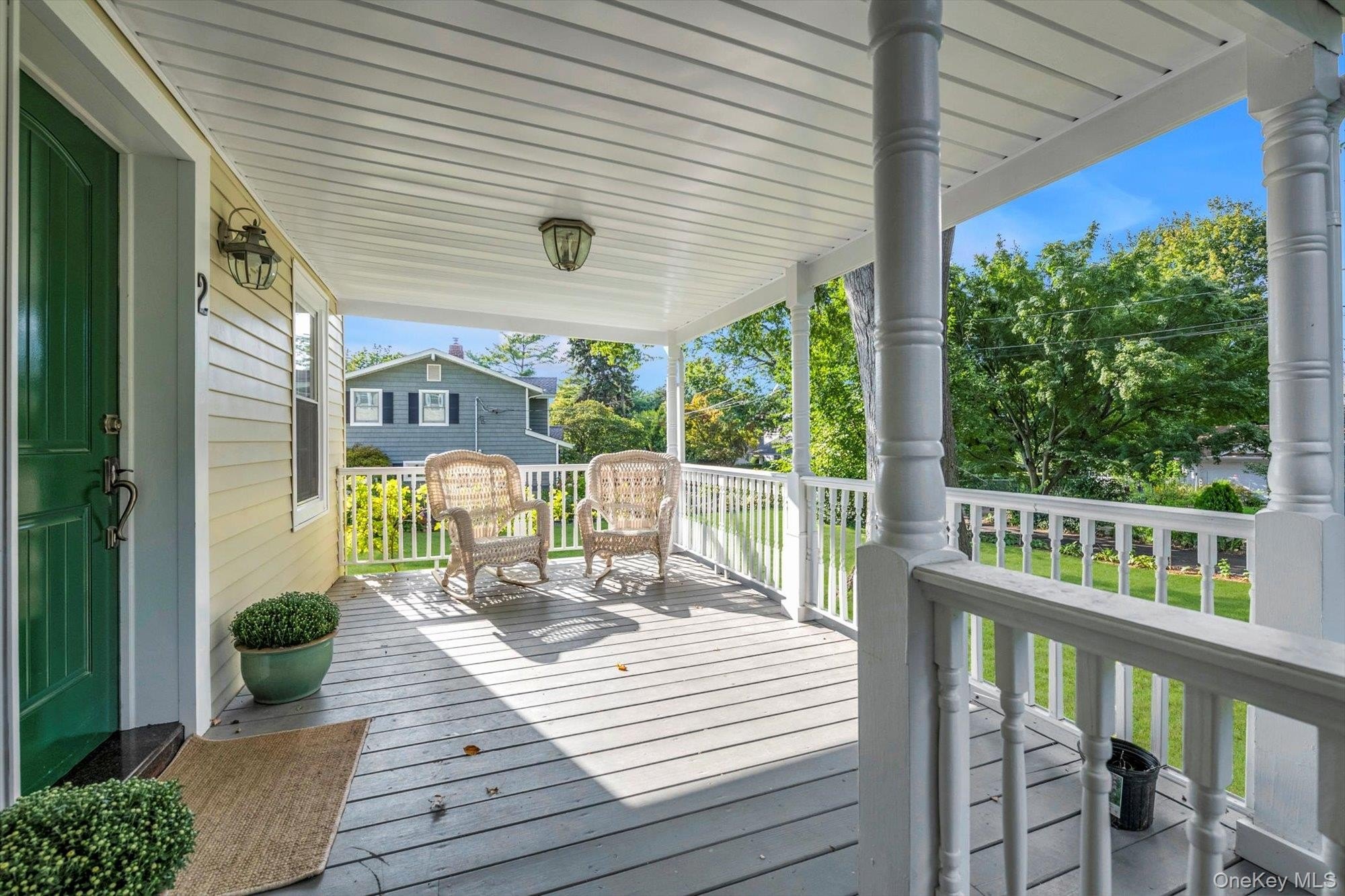 An Oasis in Port Washington. Escape to this quiet classic front porch Colonial tucked away on a private lane just a short distance to the water, restaurants, farmers' market, library and LIRR. Revel in the spectacular sunsets from the open deck, enjoy the oversized side yard under the big oak tree, tend to the beautiful gardens that surround this unique property, or just sit on the breezy front porch and savor the peace and quiet. This completely renovated home includes a formal living room with fireplace, sitting area, dining room, large kitchen with all new appliances, laundry room with new washer/dryer, and new half bath on the first floor, with three bedrooms, two new full bathrooms, a small office, and another sitting area upstairs. A new Amana HVAC system provides whole-house heat and cooling. Both the house and the garage have new roofs. A small, finished basement area and a two-car garage with loft provide plenty of space for storage. There's lots of room for a pool and/or expanding the home.