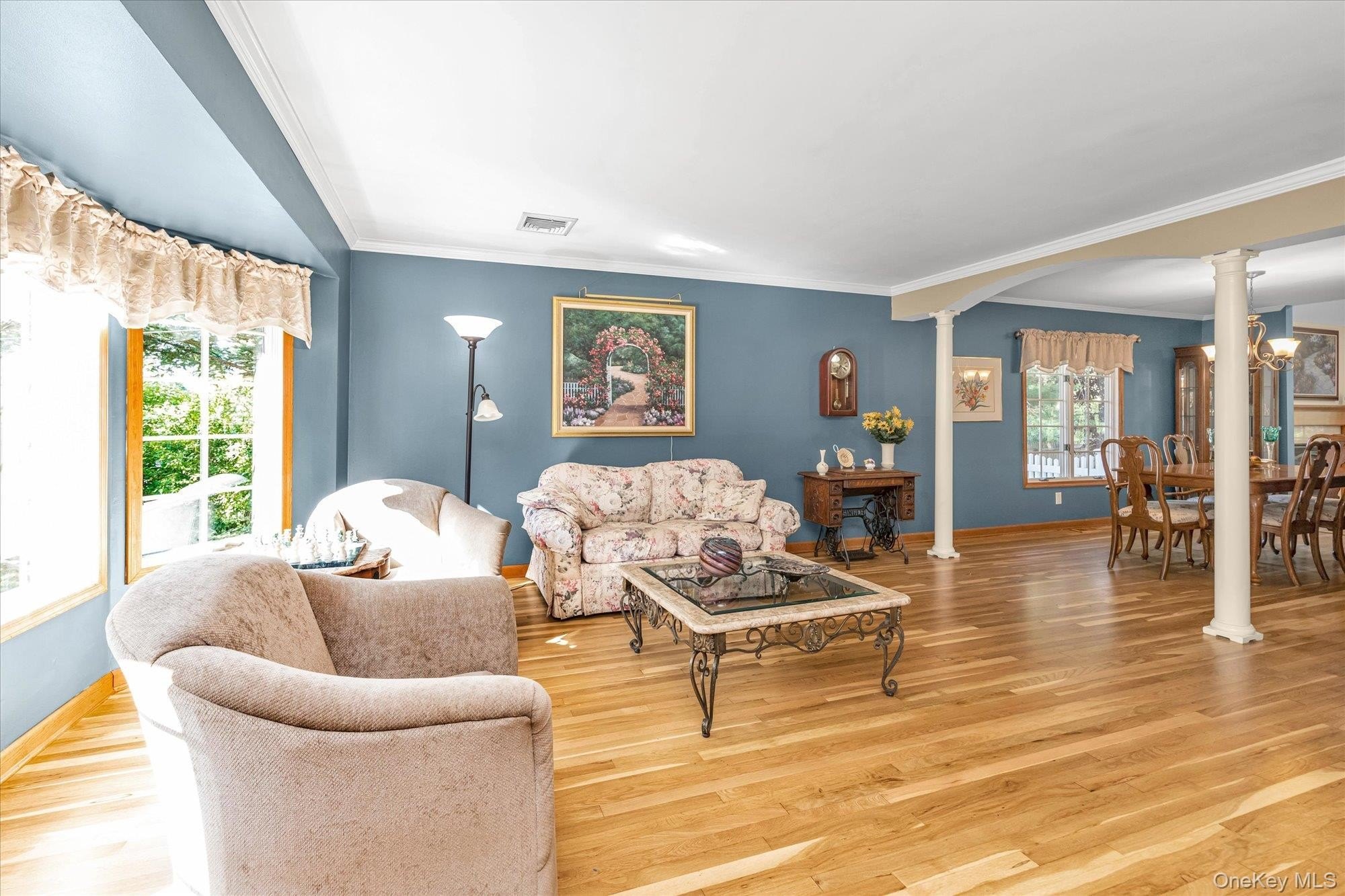 You'll want to see this beautifully expanded Split Ranch located in the heart of the Harborfields community. Set on a 1/2 acre of flat, fully fenced property, this home offers space, comfort, and thoughtful updates throughout. Originally built in 1956, the home was extended in 2006, adding valuable basement space and modern upgrades including granite countertops, a new roof, and central air conditioning. All stainless steel appliances were replaced in 2020, and every window has been upgraded to top-of-the-line double-pane Andersen windows. The home is heated with oil-fired forced hot air, but natural gas is already connected for the stove, dryer, and fireplace, making a future conversion simple. From the large addition, step out into a private backyard oasis. Enjoy the outdoors on the deck, great for entertaining, relax in the peaceful setting, or play a game on the blacktop basketball court tucked to the side of the home. This home has a few special surprises that truly set it apart, you'll have to see them in person. Just unpack, move right in, and start enjoying all this Harborfields gem has to offer.