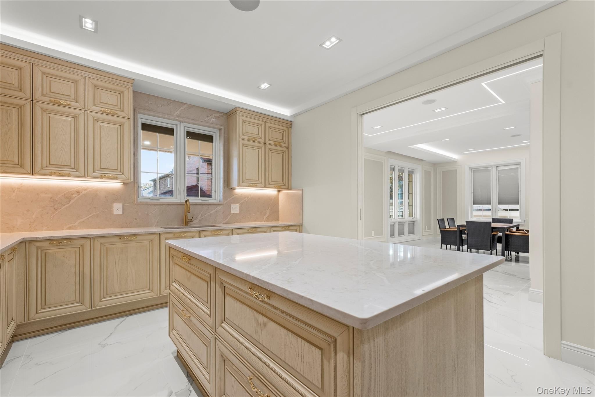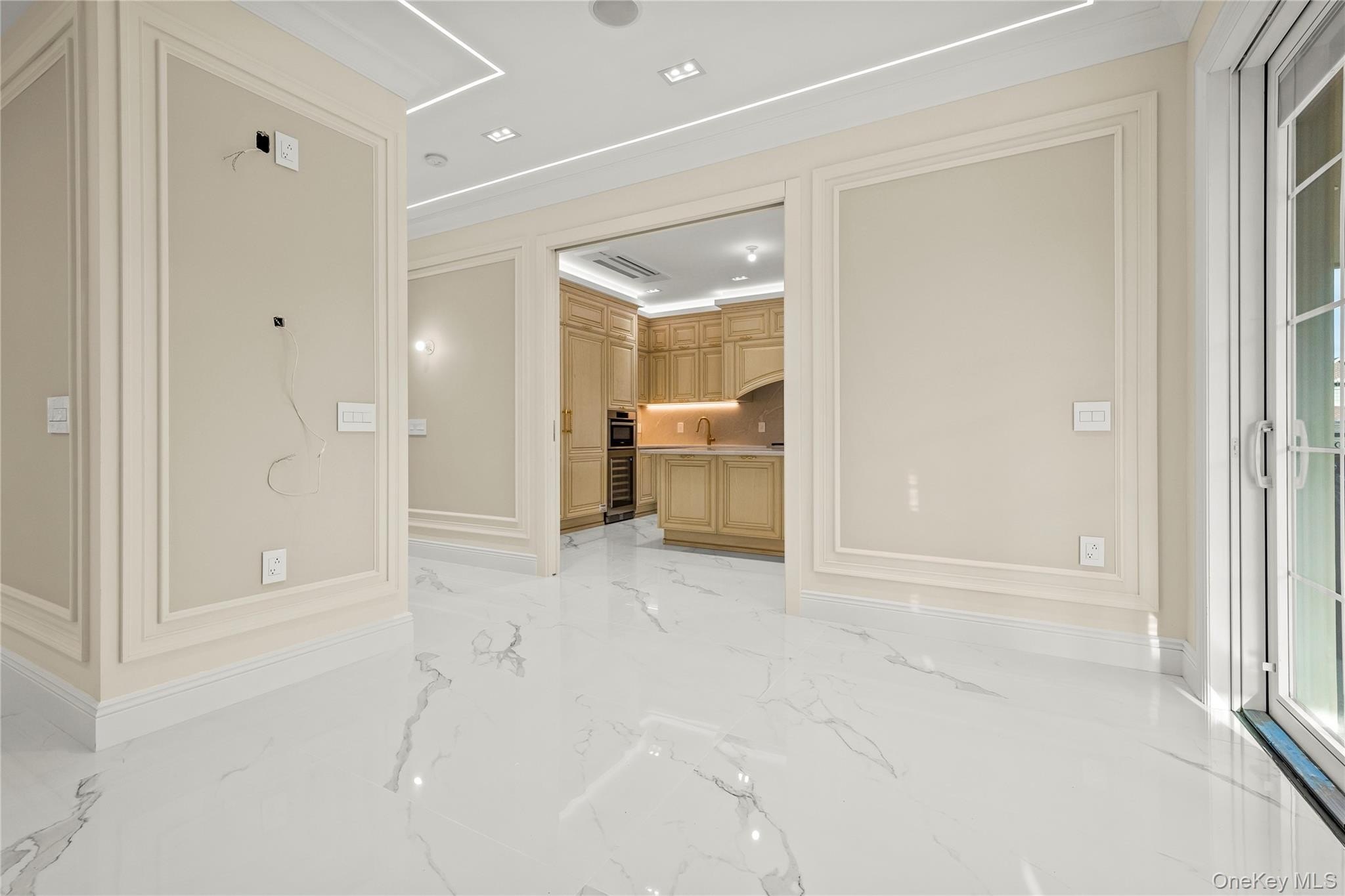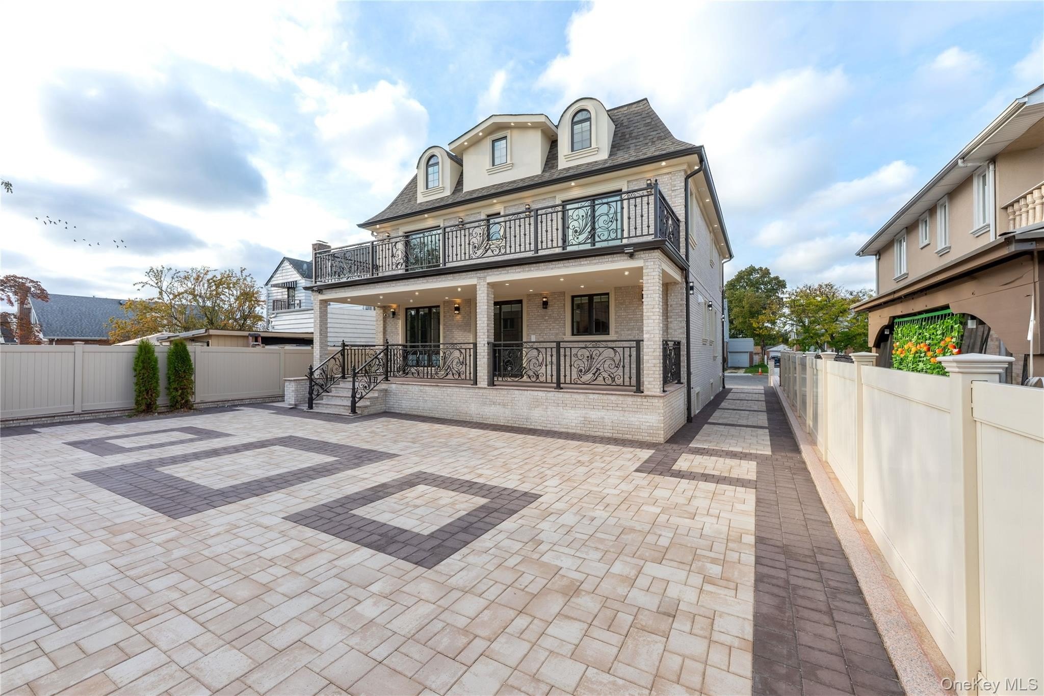 Welcome to this exquisite new 2025 Center Hall Colonial, ideally located in the heart of Fresh Meadows. Set on a 50x100 lot, this custom-built residence showcases timeless architecture, a thoughtful layout, and high-end finishes throughout. Featuring 6 bedrooms and 6.5 bathrooms, this home offers heated floors and high ceilings on every level, combining classic elegance with modern comfort. The main floor includes a spacious living room, a formal dining room, a first-floor master suite with a full bathroom, and a stylish powder room. The oversized eat-in kitchen is a true showpiece-outfitted with top-of-the-line appliances, dual sinks, custom cabinetry, polished stone countertops, and pocket doors for added privacy. Upstairs, you'll find four en-suite bedrooms, each with access to private balconies or terraces through elegant French doors. Three spa-inspired bathrooms feature designer fixtures and walk-in showers. The third floor offers additional flexibility with a large bedroom and a full bathroom. The finished basement boasts exceptionally high ceilings, a separate maid's quarters room, additional large open space perfect for a gym or office, a full laundry room, and a private entrance to the backyard. The beautifully paved yard is perfect for all needs. Prime location near St. John's University and Cunningham Park. Zoned for top-rated PS 173 Elementary and JHS 216, with citywide high school choice. Easy access to Manhattan via express buses and local bus routes to the subway. Close to shopping, dining, houses of worship, and entertainment along Union Turnpike, as well as JFK and LaGuardia Airports.