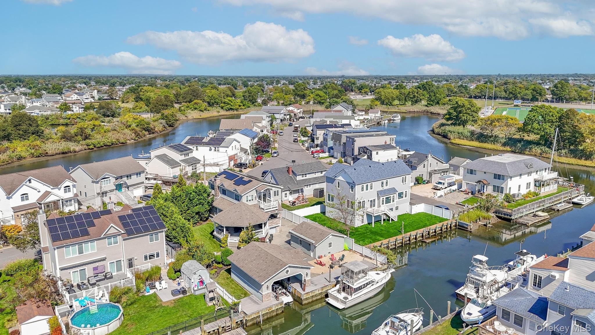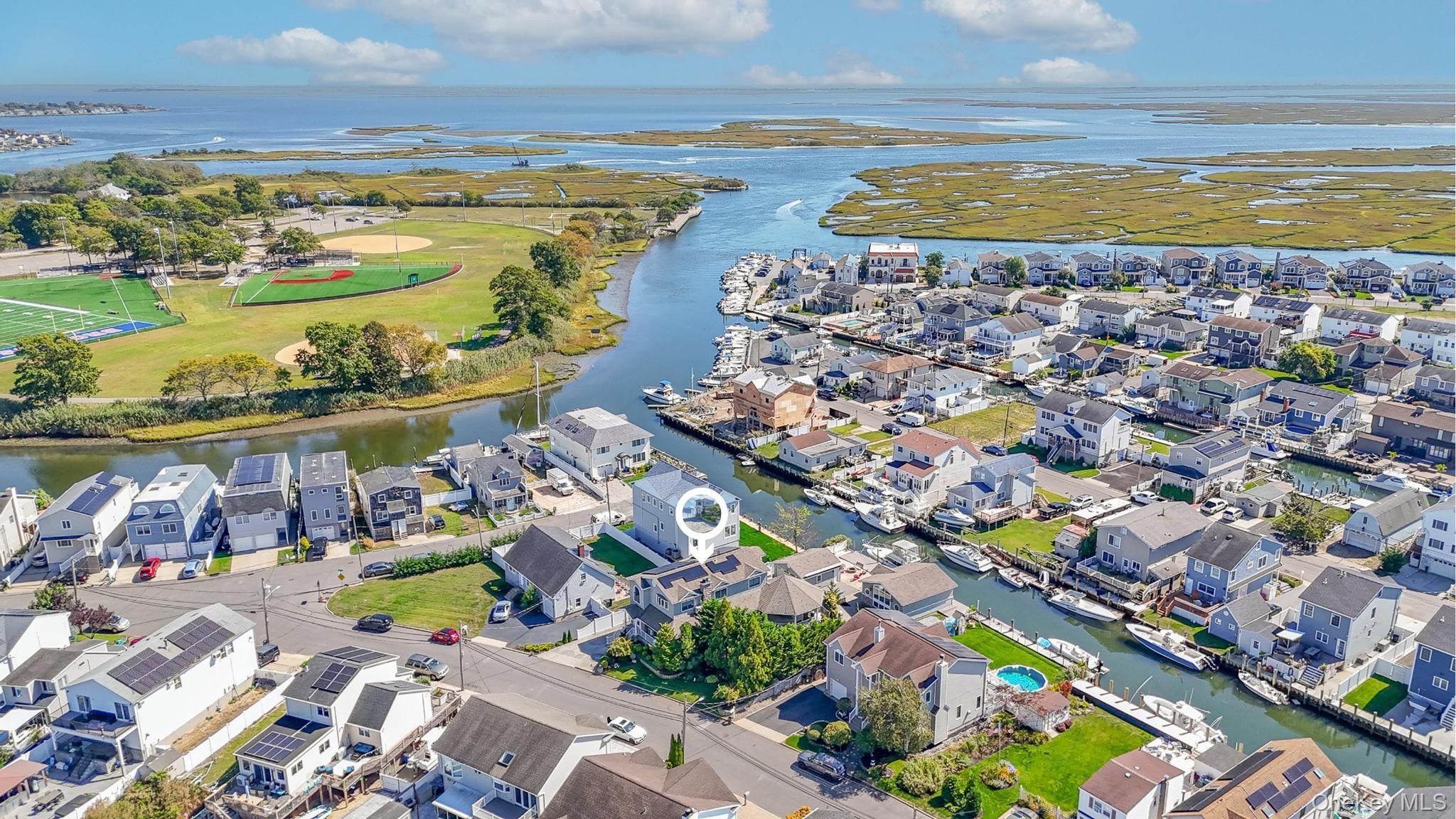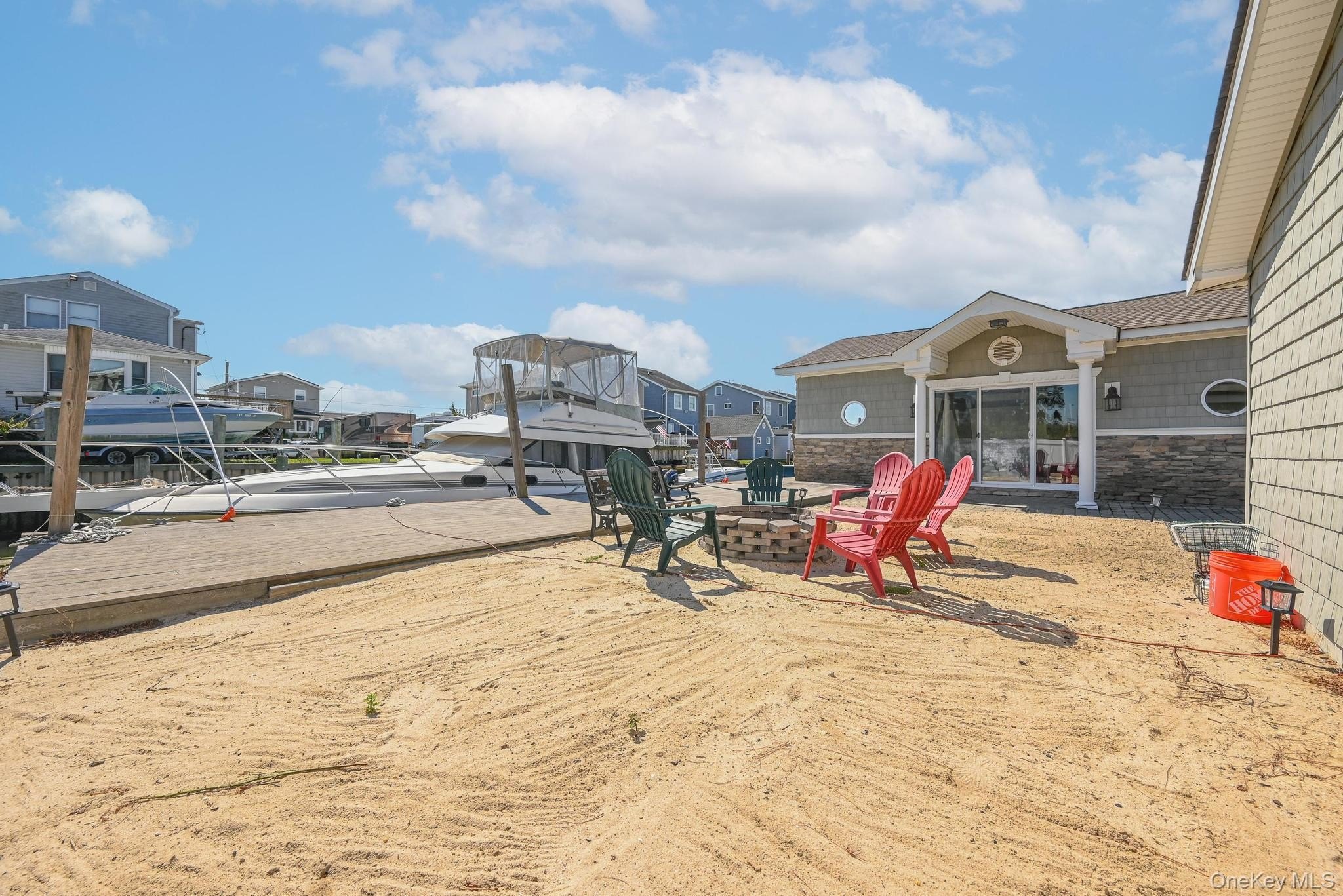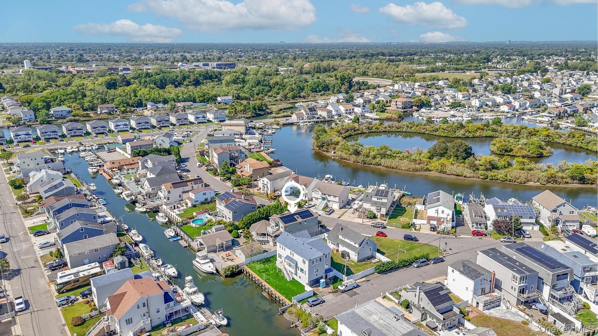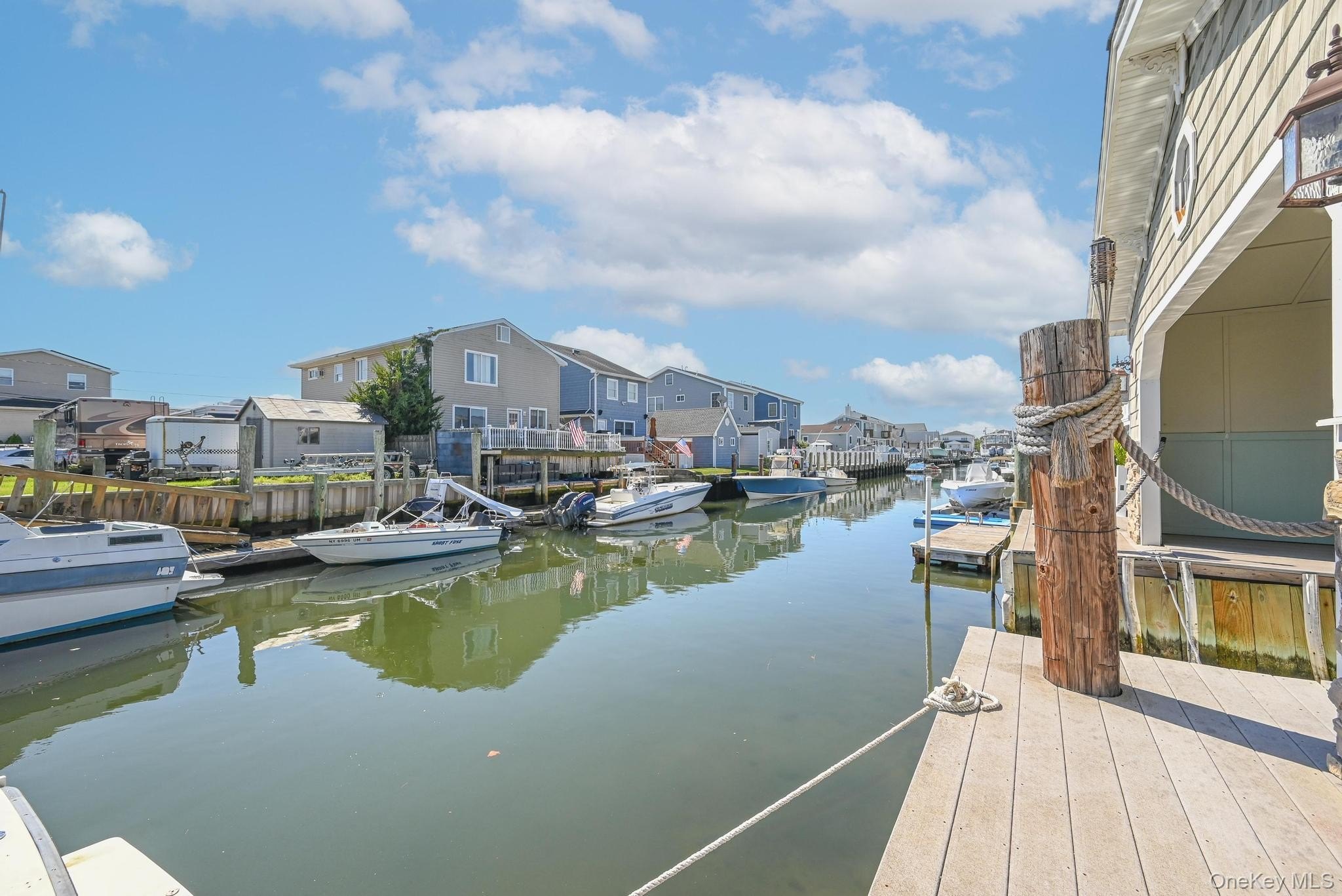 Tucked away at the end of a quiet street in the desirable Seaford Harbor, 3664 Somerset Dr is truly a one-of-a-kind raised waterfront colonial that perfectly blends luxury, character functionality, and coastal living just seconds from the open bay. The home welcomes you with a grand two-story entry foyer, oversized windows giving you tons of natural light throughout soaring 10-foot ceilings throughout the first floor, and an open layout from front to back that makes the space feel expansive and inviting. At its heart, a wood-burning fireplace with custom woodwork and a beautifully designed wet bar creates the perfect setting for entertaining, while the custom gourmet chef's kitchen features custom cherry cabinetry, expansive granite counters, stainless steel appliances, Thermador gas range/oven, a Viking wine fridge, double beverage drawers, a prep sink, pot filler, and under-cabinet lighting. The open concept flows seamlessly into the dining and living areas, all highlighted by recessed LED lighting, built-in speaker wiring, and elegant crown molding, chair rails, and millwork throughout. Upstairs, three oversized bedrooms include an enormous primary suite spanning the rear of the home with a private Trex deck balcony and breathtaking water views, while 2 designer full bathrooms offer tile floors, granite vanities, Jacuzzi tubs, and upstairs has a skylit walk-in shower with bench seating. Outside, an entertainer's paradise awaits with a wraparound front porch, extra deep brick paved driveway leading to detached 2 car garage w/ retractable awning, rear trex deck with an enormous 32 foot octagon pavilion & a full outdoor kitchen, all surrounded by professionally landscaped grounds with mature privacy hedges, a custom waterfall in the front yard, ample green space and a sanded firepit lounge area just off the dock. Boaters will appreciate the Trex dock and one of a kind detached boathouse with electric, slop sink, and storage, while a detached two-car garage with retractable awning and a deep brick-paved driveway add convenience and curb appeal. Additional features include a top-of-the-line CertainTeed Carriage House 50-year roof, cedar shake vinyl siding on entire house, garage & boathouse, Anderson windows, two 150-amp electrical panels, radiant heat on the first floor, split-system cooling/heating in every room, in ground sprinklers, pull-down attic storage, and a mechanical chandelier. More than just a home, this waterfront retreat is built with unmatched quality and thoughtful design, offering every amenity for both relaxation and entertaining. Solar panels are financed to own. Walking distance to Seaford Harbor Elementary, Cedar Creek Park, Neighborhood deli & dining and just a short drive to town & the Seaford Oyster Bay Expressway - A rare opportunity to own a truly one-of-a-kind waterfront colonial in Seaford Harbor.