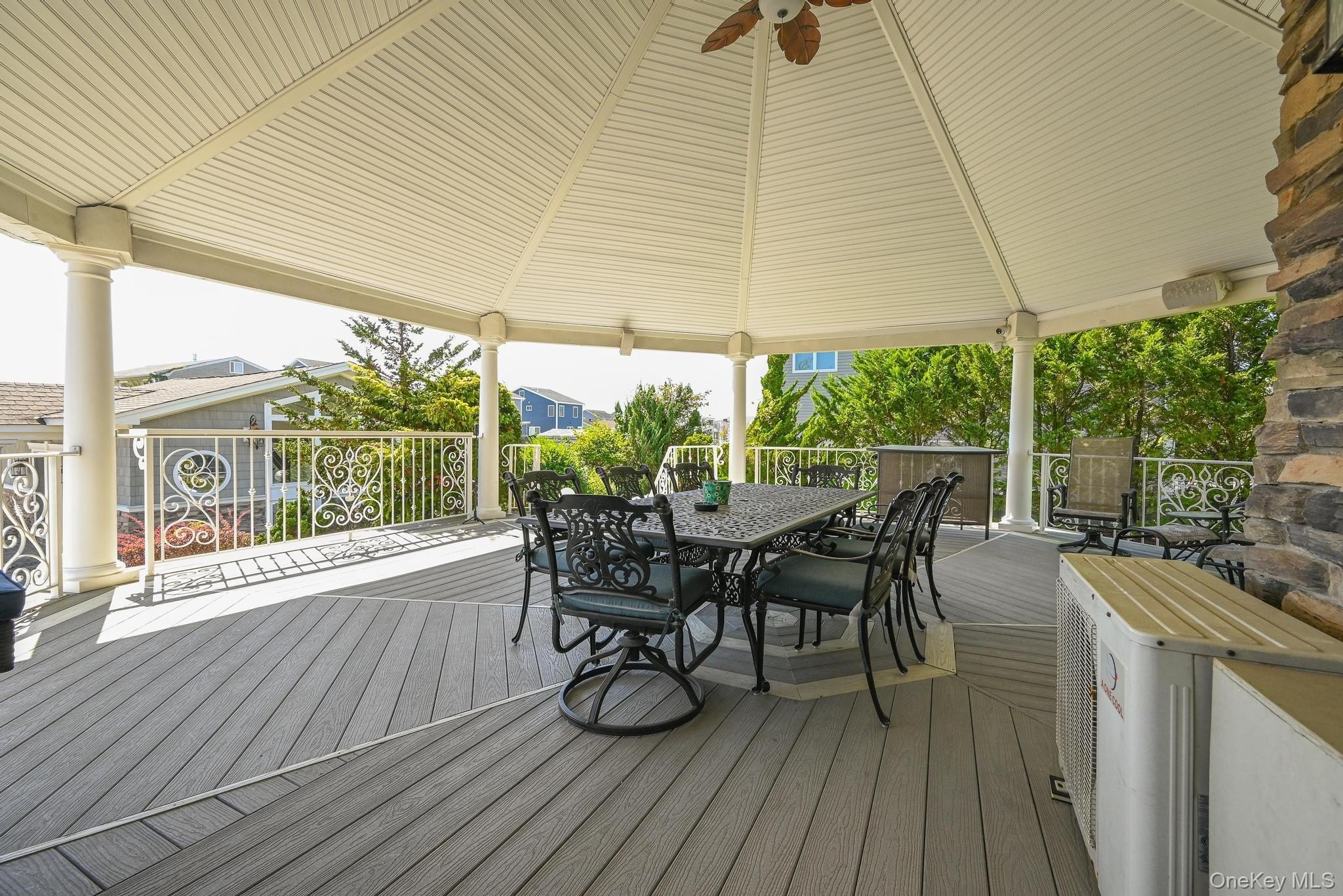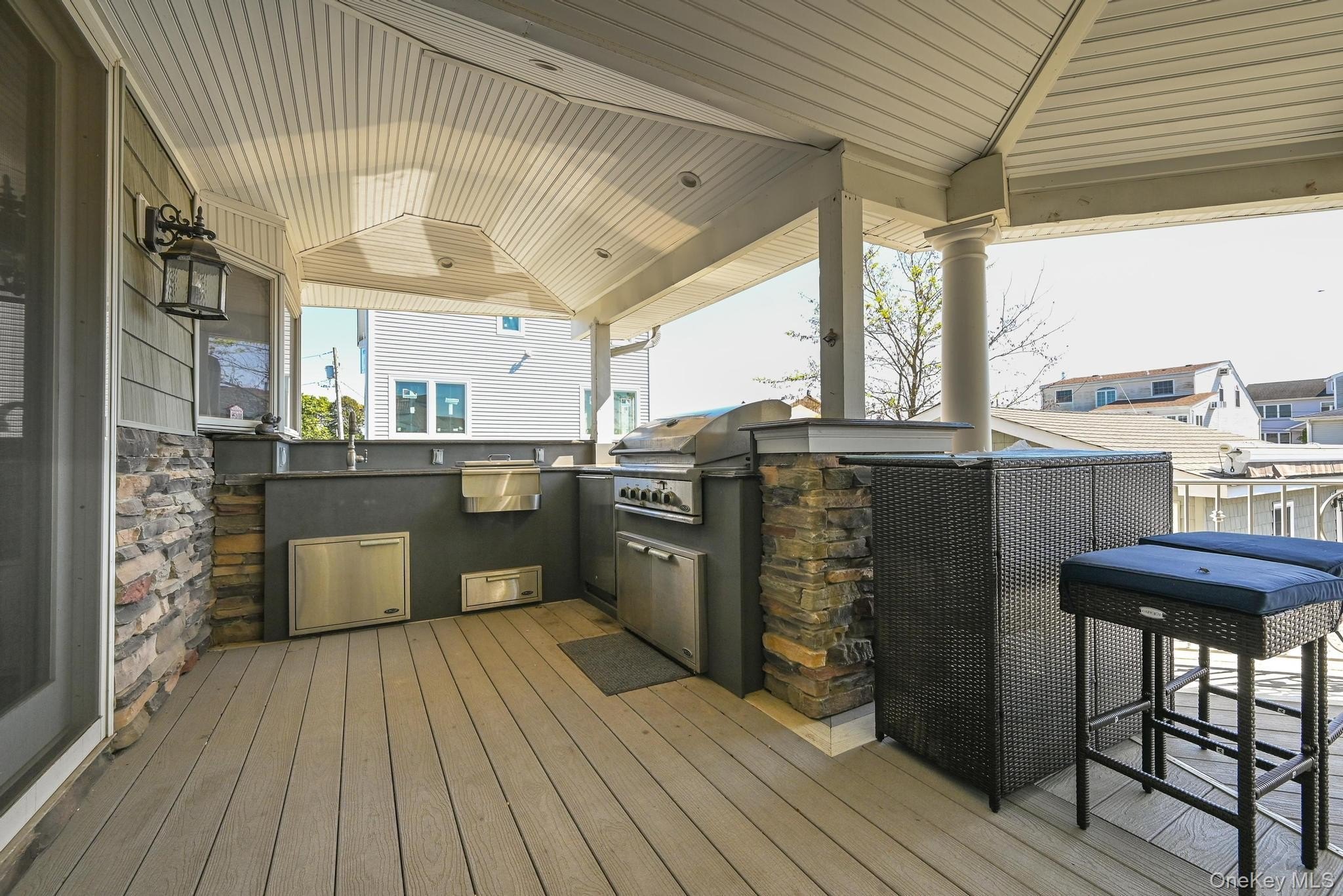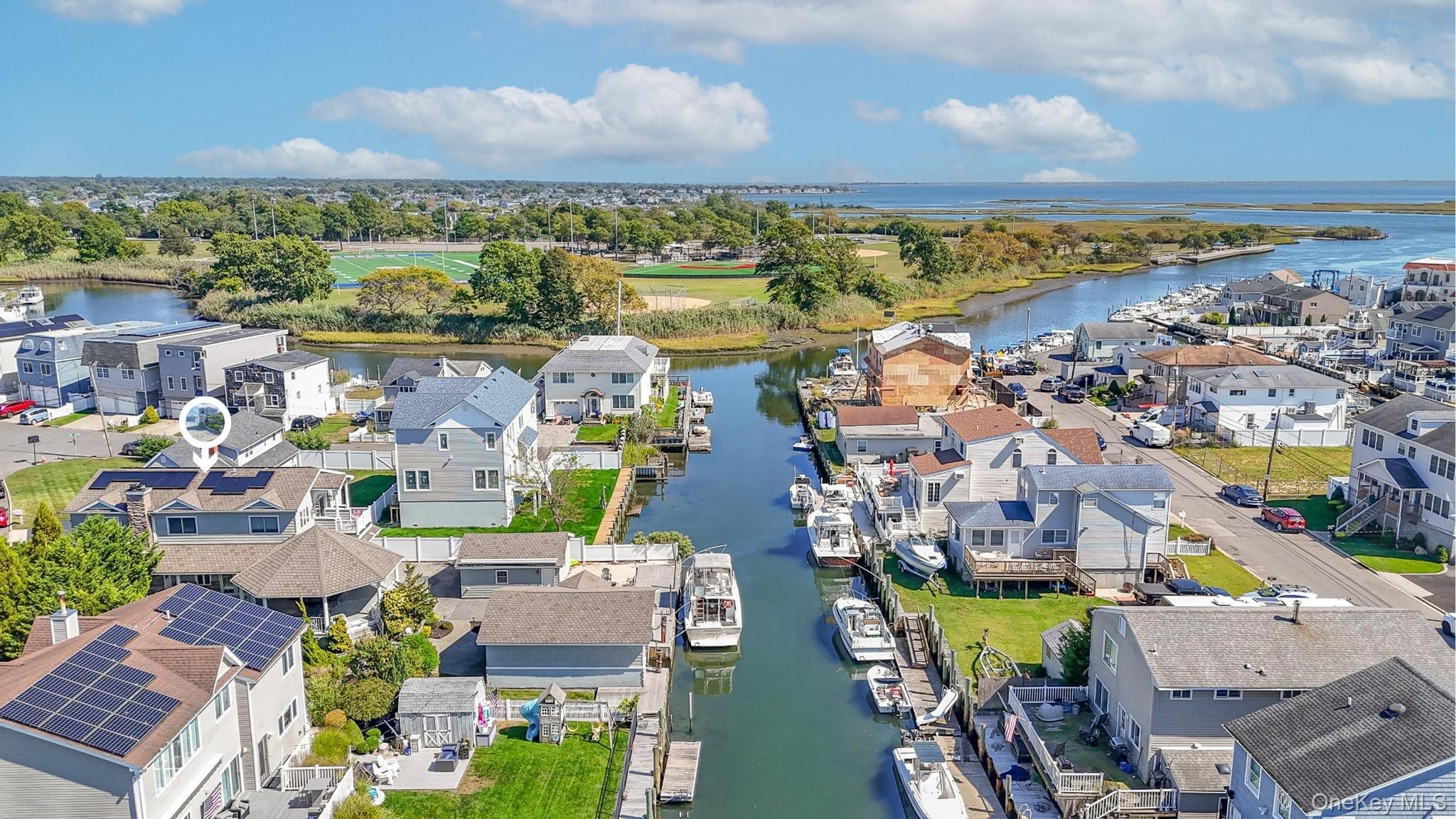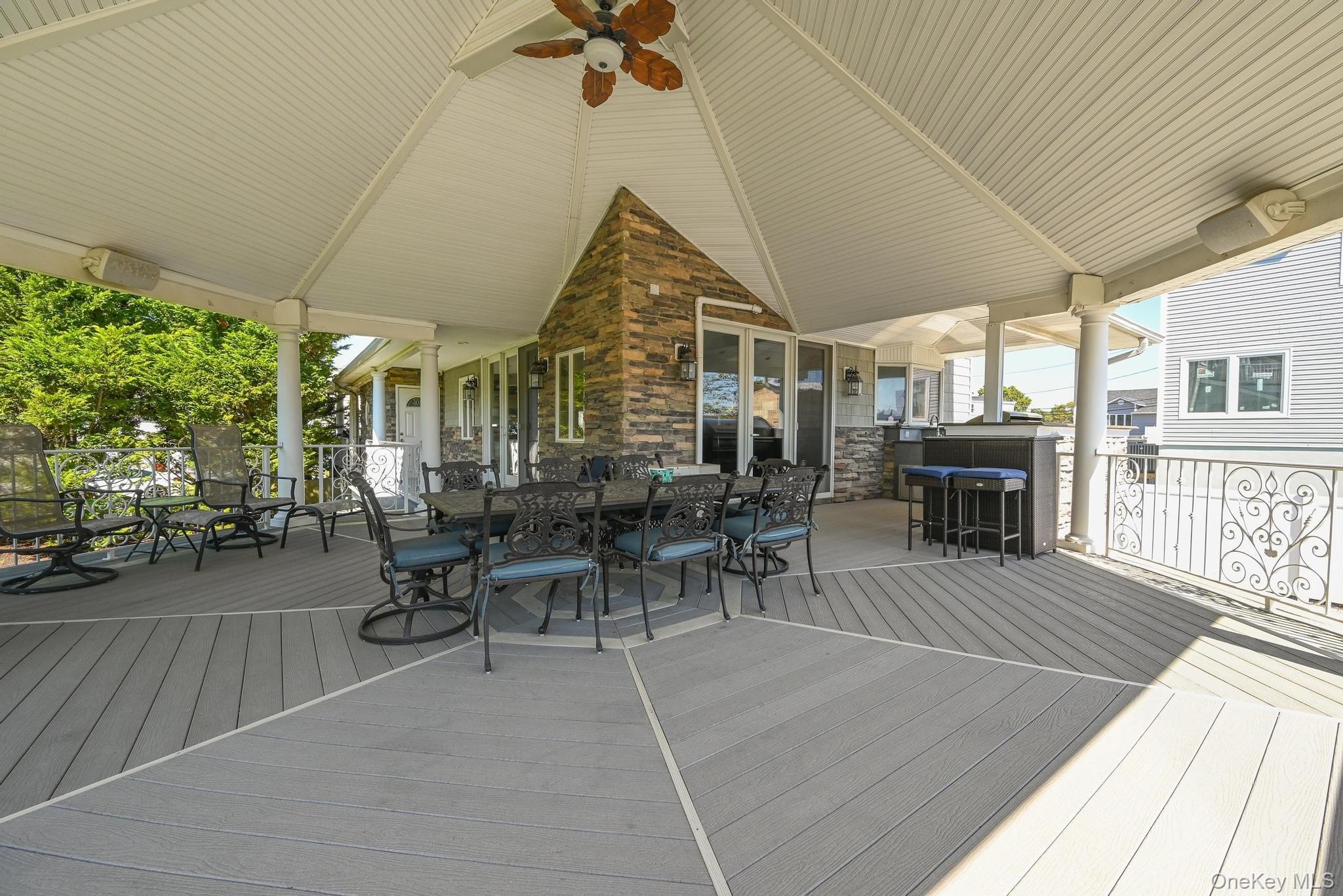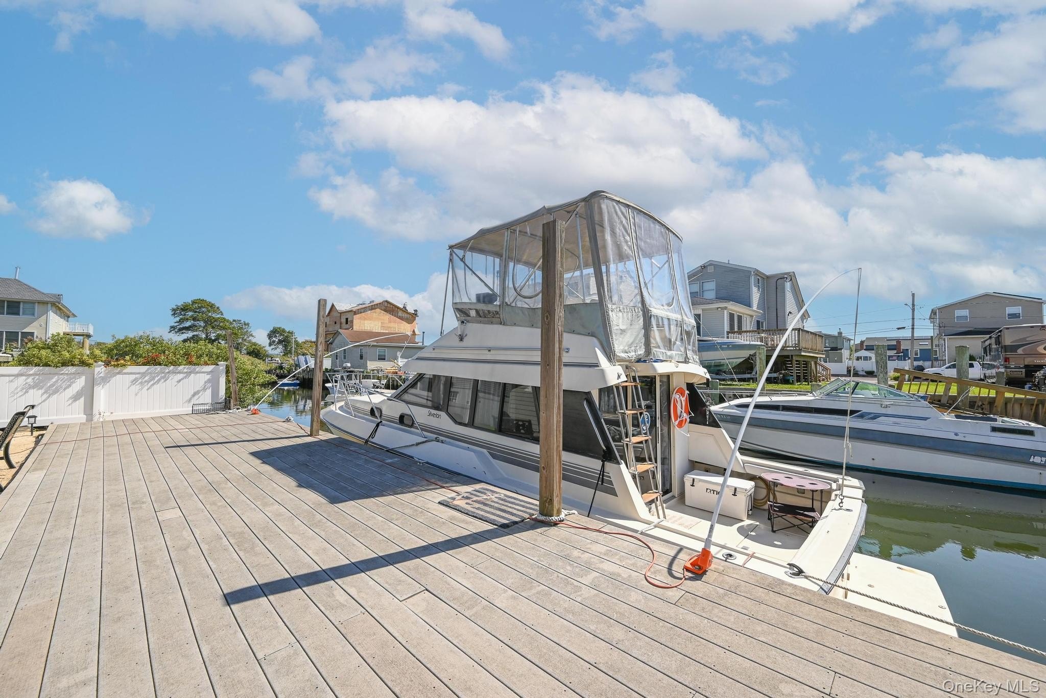Tucked away at the end of a quiet street in the desirable Seaford Harbor, 3664 Somerset Dr is truly a one-of-a-kind raised waterfront colonial that perfectly blends luxury, character functionality, and coastal living just seconds from the open bay. The home welcomes you with a grand two-story entry foyer, oversized windows giving you tons of natural light throughout soaring 10-foot ceilings throughout the first floor, and an open layout from front to back that makes the space feel expansive and inviting. At its heart, a wood-burning fireplace with custom woodwork and a beautifully designed wet bar creates the perfect setting for entertaining, while the custom gourmet chef's kitchen features custom cherry cabinetry, expansive granite counters, stainless steel appliances, Thermador gas range/oven, a Viking wine fridge, double beverage drawers, a prep sink, pot filler, and under-cabinet lighting. The open concept flows seamlessly into the dining and living areas, all highlighted by recessed LED lighting, built-in speaker wiring, and elegant crown molding, chair rails, and millwork throughout. Upstairs, three oversized bedrooms include an enormous primary suite spanning the rear of the home with a private Trex deck balcony and breathtaking water views, while 2 designer full bathrooms offer tile floors, granite vanities, Jacuzzi tubs, and upstairs has a skylit walk-in shower with bench seating. Outside, an entertainer's paradise awaits with a wraparound front porch, extra deep brick paved driveway leading to detached 2 car garage w/ retractable awning, rear trex deck with an enormous 32 foot octagon pavilion & a full outdoor kitchen, all surrounded by professionally landscaped grounds with mature privacy hedges, a custom waterfall in the front yard, ample green space and a sanded firepit lounge area just off the dock. Boaters will appreciate the Trex dock and one of a kind detached boathouse with electric, slop sink, and storage, while a detached two-car garage with retractable awning and a deep brick-paved driveway add convenience and curb appeal. Additional features include a top-of-the-line CertainTeed Carriage House 50-year roof, cedar shake vinyl siding on entire house, garage & boathouse, Anderson windows, two 150-amp electrical panels, radiant heat on the first floor, split-system cooling/heating in every room, in ground sprinklers, pull-down attic storage, and a mechanical chandelier. More than just a home, this waterfront retreat is built with unmatched quality and thoughtful design, offering every amenity for both relaxation and entertaining. Solar panels are financed to own. Walking distance to Seaford Harbor Elementary, Cedar Creek Park, Neighborhood deli & dining and just a short drive to town & the Seaford Oyster Bay Expressway - A rare opportunity to own a truly one-of-a-kind waterfront colonial in Seaford Harbor.