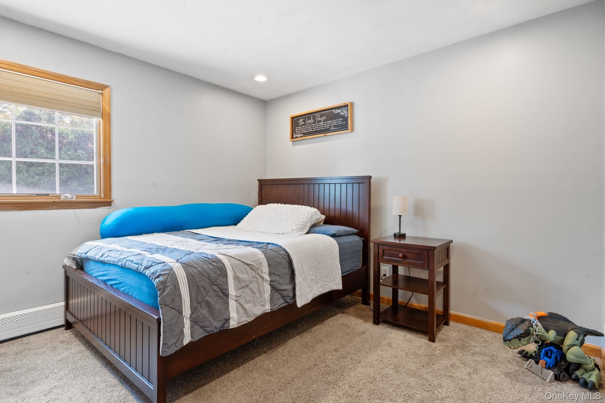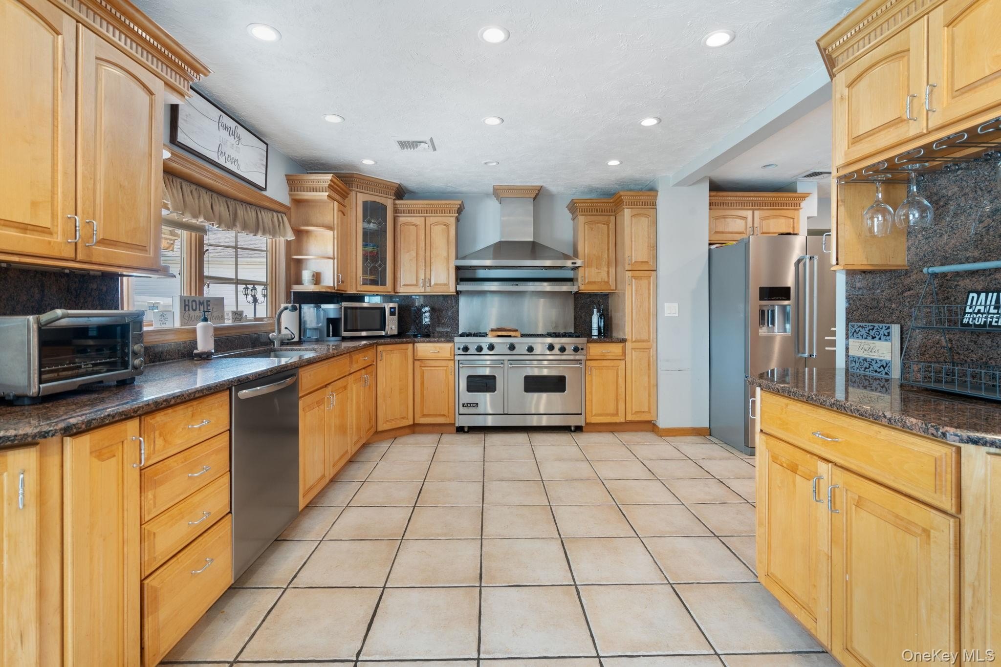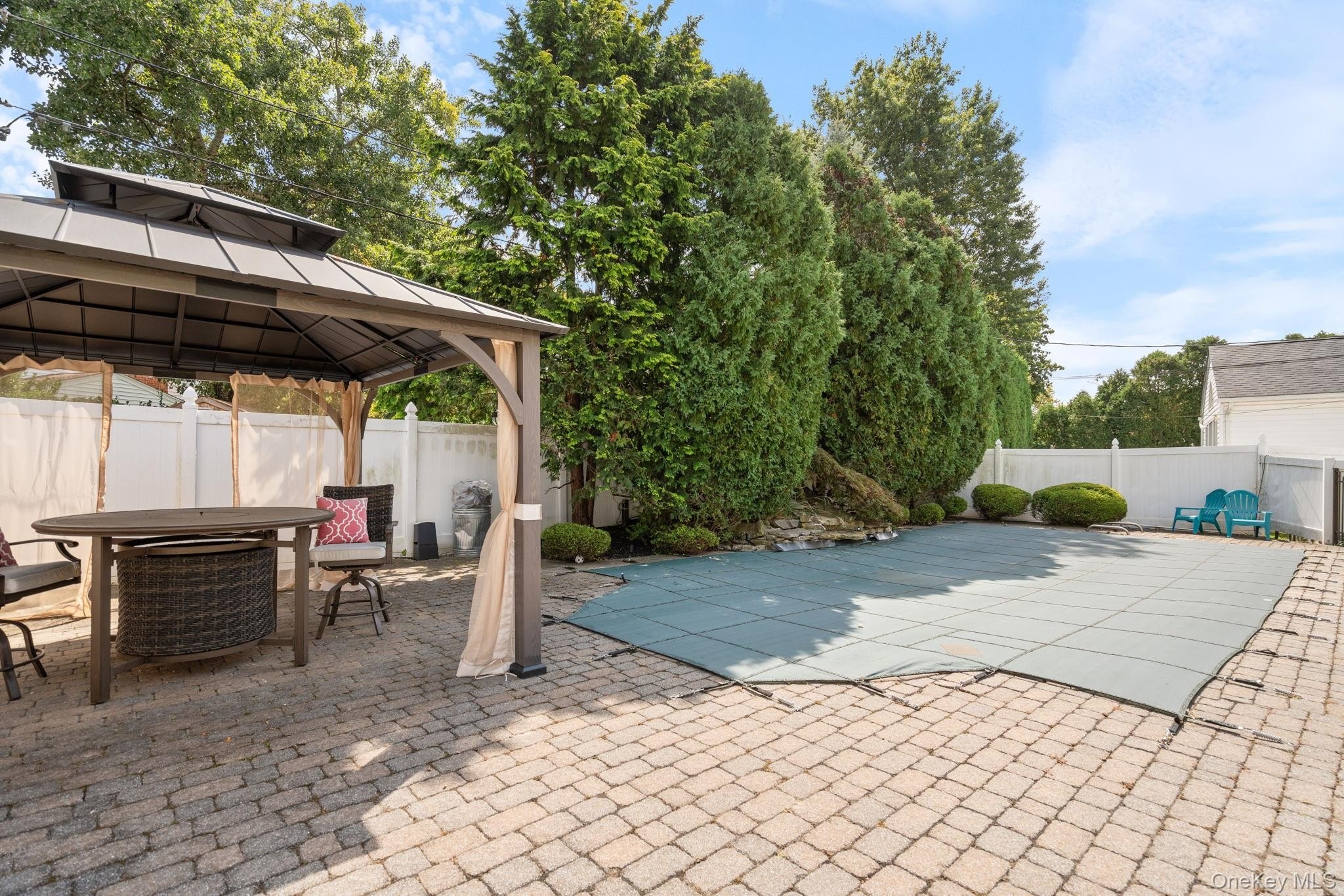 Stunning Melville Home: "Built for Comfort" Welcome to this exceptional 4-bedroom, 2.5-bathroom residence located in the highly sought-after Half Hollow Hills School District, where comfort meets luxury in every detail. Step inside and you will find the Inviting High-Ceiling Dining Room with floor to ceiling natural stone wood burning fireplace. Experience the elegance that is enhanced with multiple skylights, a beautiful bay window and sliders to a Sunroom that fills the home with natural light. Entertain while cooking in style with granite counter tops, a Viking oven, Kitchen Aid refrigerator and dishwasher, beautiful cabinetry with lights, a deep sink, and radiant heated floors for those chilly mornings or just spread out and Relax in your extra-large den/family room. Escape to your Luxurious Primary Suite Retreat featuring professional grade high ceiling lighting with a gorgeous fireplace and direct access to a spa-like master bathroom equipped with skylight, relaxing jacuzzi tub and luxurious modern shower. The updated hot water heating system ensures a soothing experience year-round. Make memories in your Outdoor Oasis with this beautifully landscaped property designed for relaxation and entertainment, featuring outdoor LED in-ground lighting (controlled by automatic timer), an electronically controlled retractable Awning and impressive 20,000-gallon in-ground pool (18' x 36') with waterfall, multiple jets, multi-colored lights, spa heater and diving board. The yard boasts fresh natural sod/grass and a brand new shed. The U-shaped driveway accommodates 3-5 vehicles comfortably making it perfect for hosting family and friends. The house is equipped with indoor and outdoor LED ceiling lighting and Slomin's professionally installed video equipment with a built-in central vacuum system for convenience. The property features a commercial-grade central air conditioning system that provides powerful cooling throughout the home. Additional highlights include new washer/dryer, high electrical outlets in every room for easy access to electronics as well as other options including low dim lighting that provide a unique ambiance. This remarkable home offers the ultimate blend of comfort, luxury and modern technology perfectly located in a beautiful residential neighborhood, just steps away from top-rated schools and amenities. Don't miss the chance to make this dream home your own!