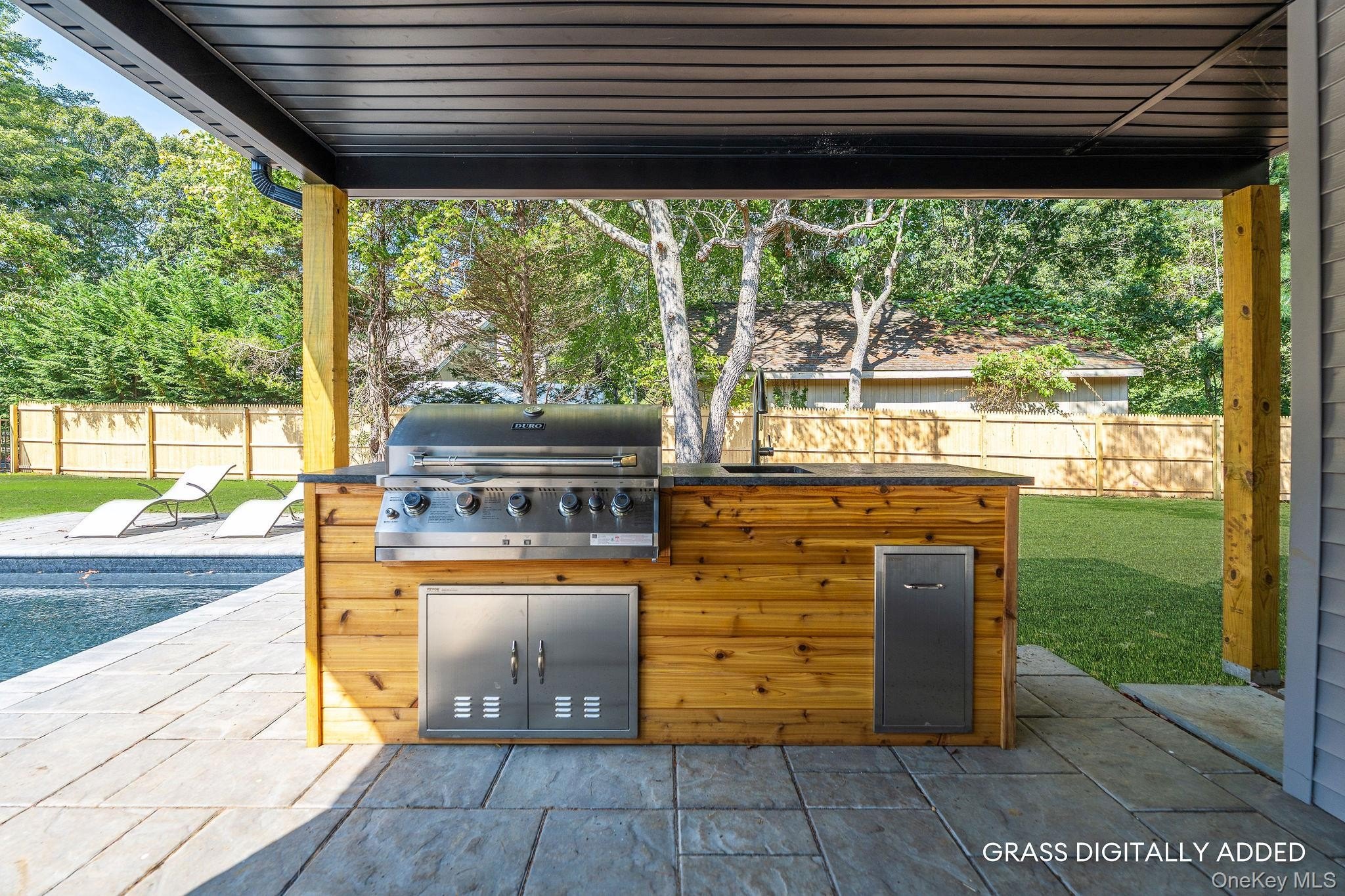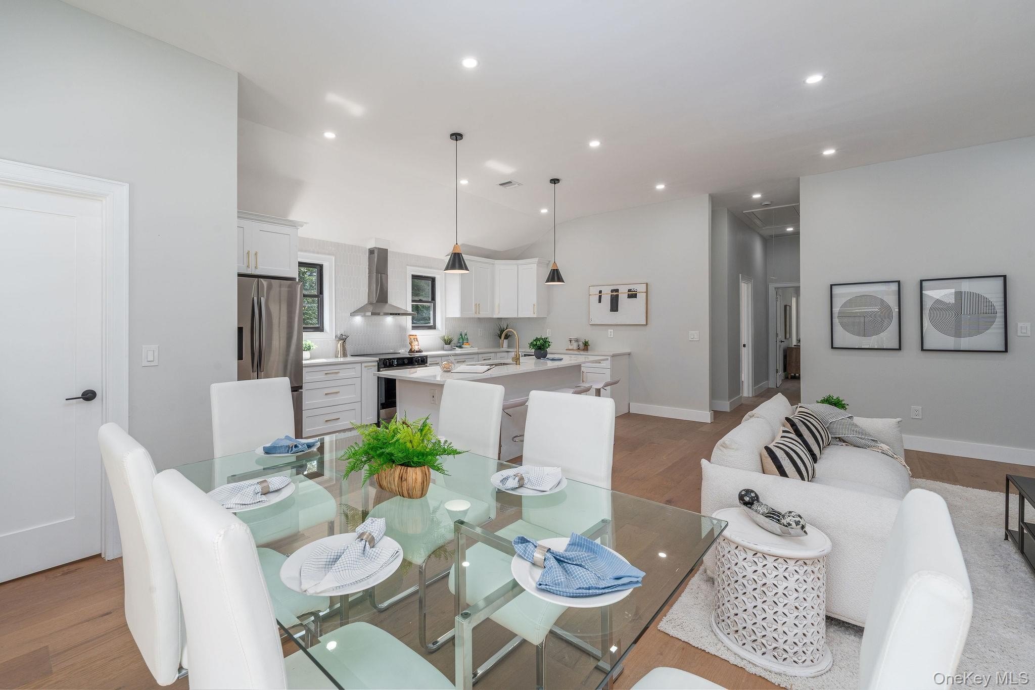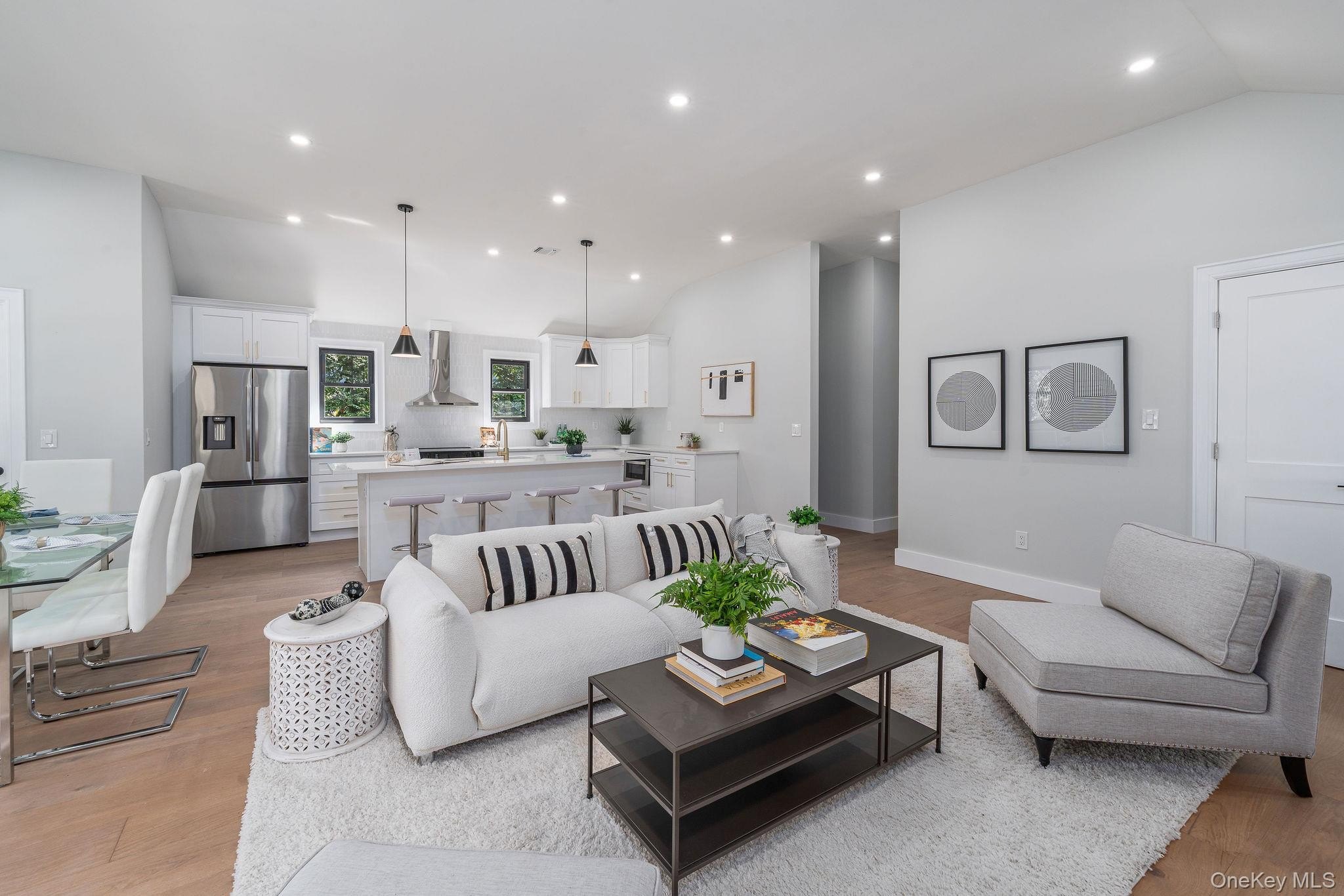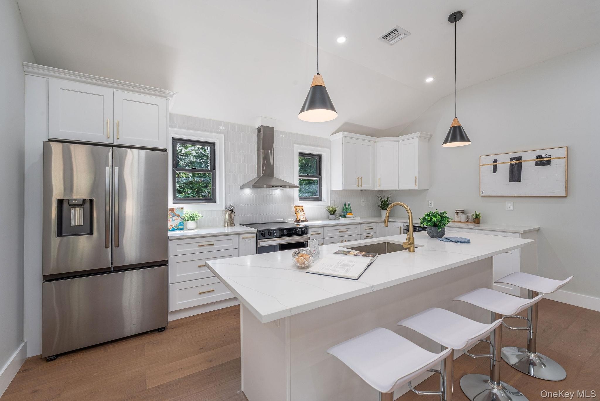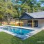 This fully renovated 3-bedroom, 2.5-bath home offers 1,400 sq ft of modern living with soaring 10' vaulted ceilings throughout. Complete renovation in 2025. The primary suite features a walk-in closet and marble-tiled bath. A new high-efficiency Bosch electric central air and heating system, smart Alexa-ready lighting, sprinkler system, and all new WaterSense appliances ensure comfort and convenience. The kitchen includes a wine fridge, while a separate laundry room adds functionality. Step outside to a resort-style backyard with a brand-new 14'x36' heated saltwater pool with in-pool sun deck, Hayward electric heater, outdoor kitchen, new paver patio with full drainage, and built-in enclosed shed. The pool house offers 508 finished sq ft, plus an additional 353 sq ft across two rooms ready to be completed with proper permits, featuring its own water heater and mini split AC. All new windows, siding, roof, flooring and more! Additional upgrades include a new IA septic system sized for expansion, two dry wells, a new well tank, and everything designed for efficiency and low maintenance