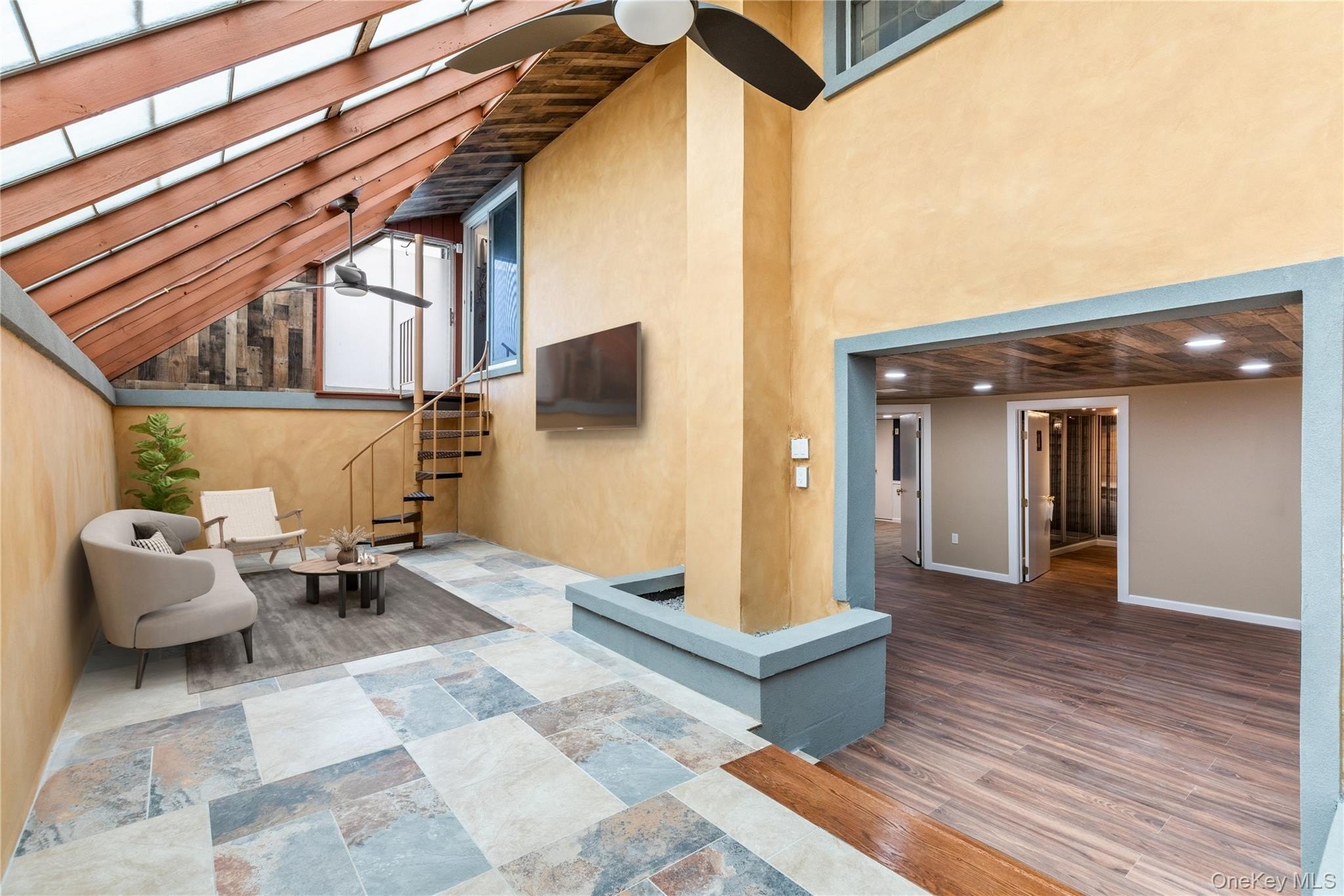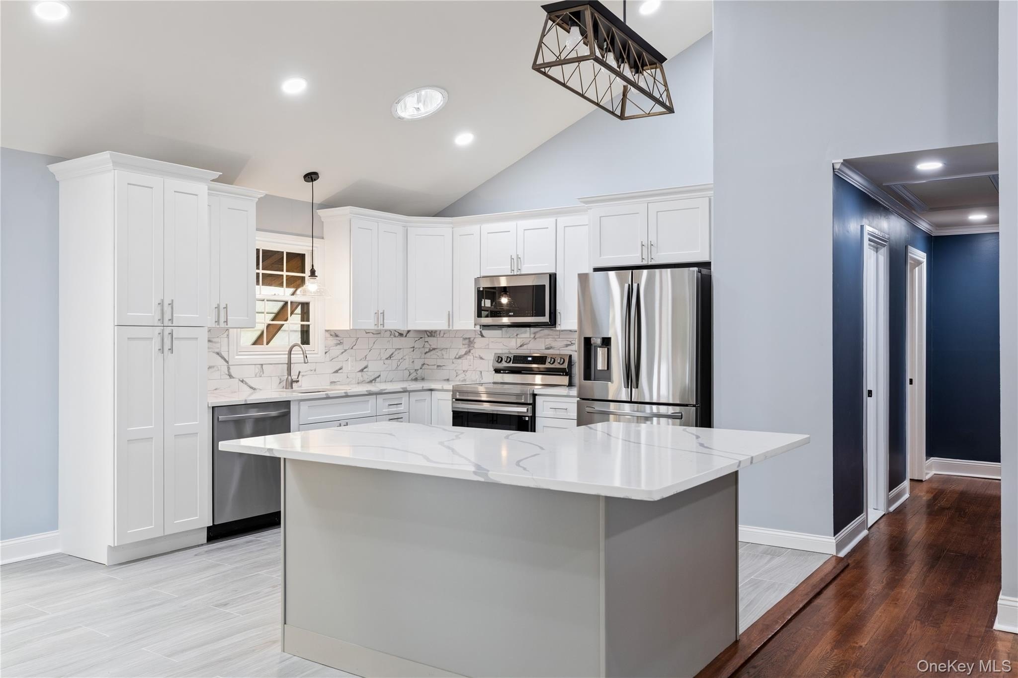 Discover this beautifully renovated 4-bedroom, 2-bathroom ranch, ideally positioned on a sought-after corner lot in Holbrook. Designed for comfort and effortless living, the home welcomes you with a bright, open-concept layout featuring vaulted ceilings, crown molding, recessed lighting, and skylights that flood the space with natural light. The spacious primary suite offers a peaceful retreat, complete with sliding glass doors that lead to a versatile sunroom-perfect for a den, home office, gym, playroom, or creative studio. Step outside to a backyard oasis where a sparkling saltwater pool with new pool liner, invites summer relaxation and entertaining. A unique entertainment room adds even more charm, featuring a custom retractable slot car track with key-an unexpected delight for hobbyists and guests alike. This home comes equipped with owned solar panels, delivering an energy-efficient and cost-effective heating solution that keeps utility bills low and comfort levels high. Enjoy the peace of mind that comes with sustainable living-no lease, no extra fees, just long-term savings and eco-friendly performance. Whether you're heating the home through chilly seasons or powering daily essentials, the solar system offers reliable, economical support year-round. Blending style, functionality, and indoor-outdoor living, this exceptional ranch delivers everything you're looking for in one of Holbrook's most desirable neighborhoods. Close to all conveniences-this is a must-see!