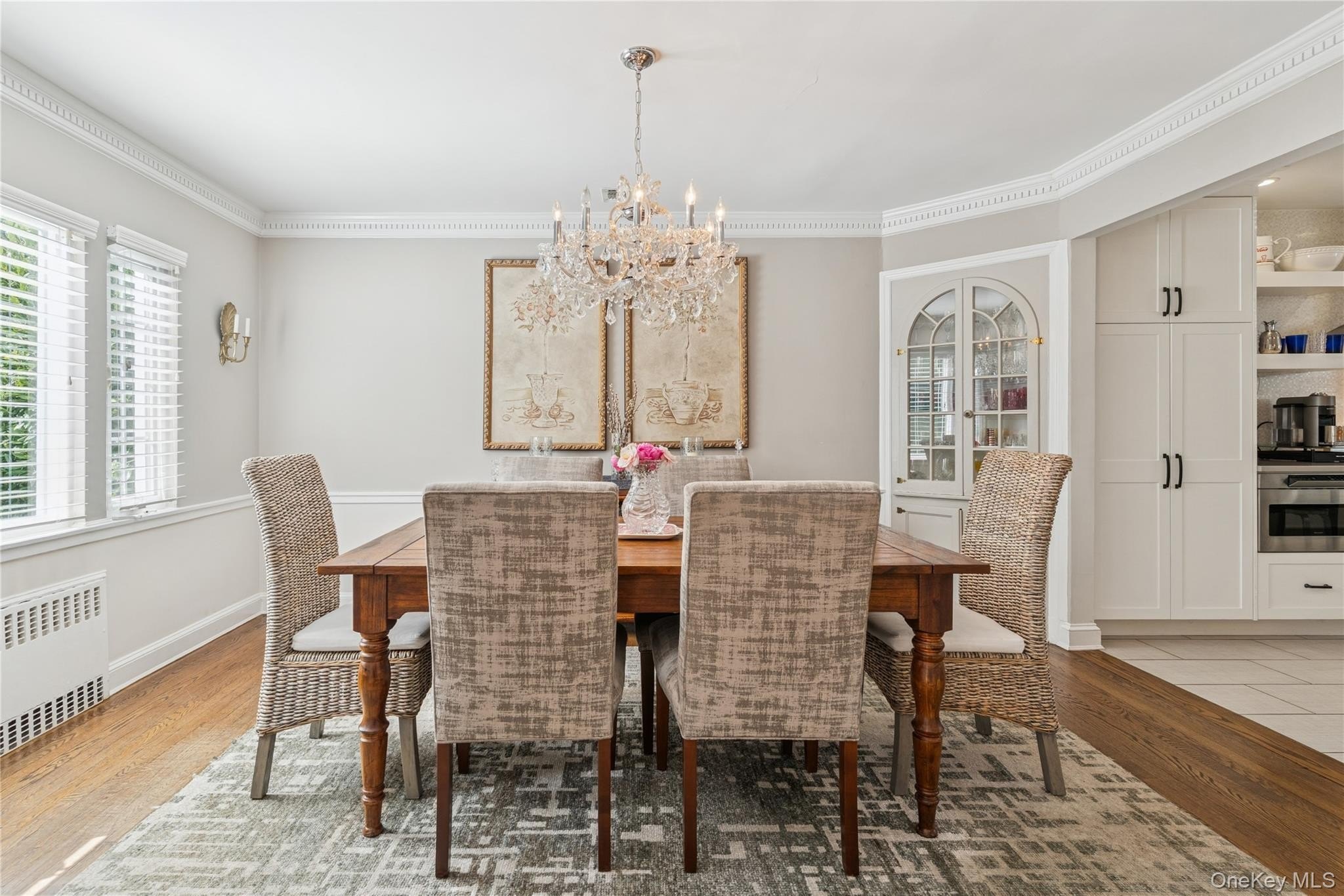Charming and elegant stone and brick Colonial with modern comforts. Welcome to this sophisticated 3-bedroom, 1.5-bath Colonial, perfectly situated mid-block in the heart of Garden City's desirable Mott Section. Blending timeless style with today's conveniences, this home offers gracious, sun-filled spaces throughout. The first floor features a beautifully renovated kitchen, with white cabinetry, high-end appliances and quartz counters, The open and spacious dining room, highlighted by an oversized south-facing window, is ideal for casual or formal dining. he living room showcases dental molding, built-in cabinetry, and a wood-burning fireplace, and a French door that opens to a charming patio and landscaped and private yard. Upstairs are three generous bedrooms, including an exceptionally large primary, and a beautifully updated hall bath. The lower level adds wonderful bonus space with a recreation room, laundry area, utilities, and storage. An attached one-car garage and inviting front porch complete this lovely property. With its classic layout, inviting flow, and beautifully maintained details, this home perfectly balances character and comfort-ideal for both everyday living and effortless entertaining.