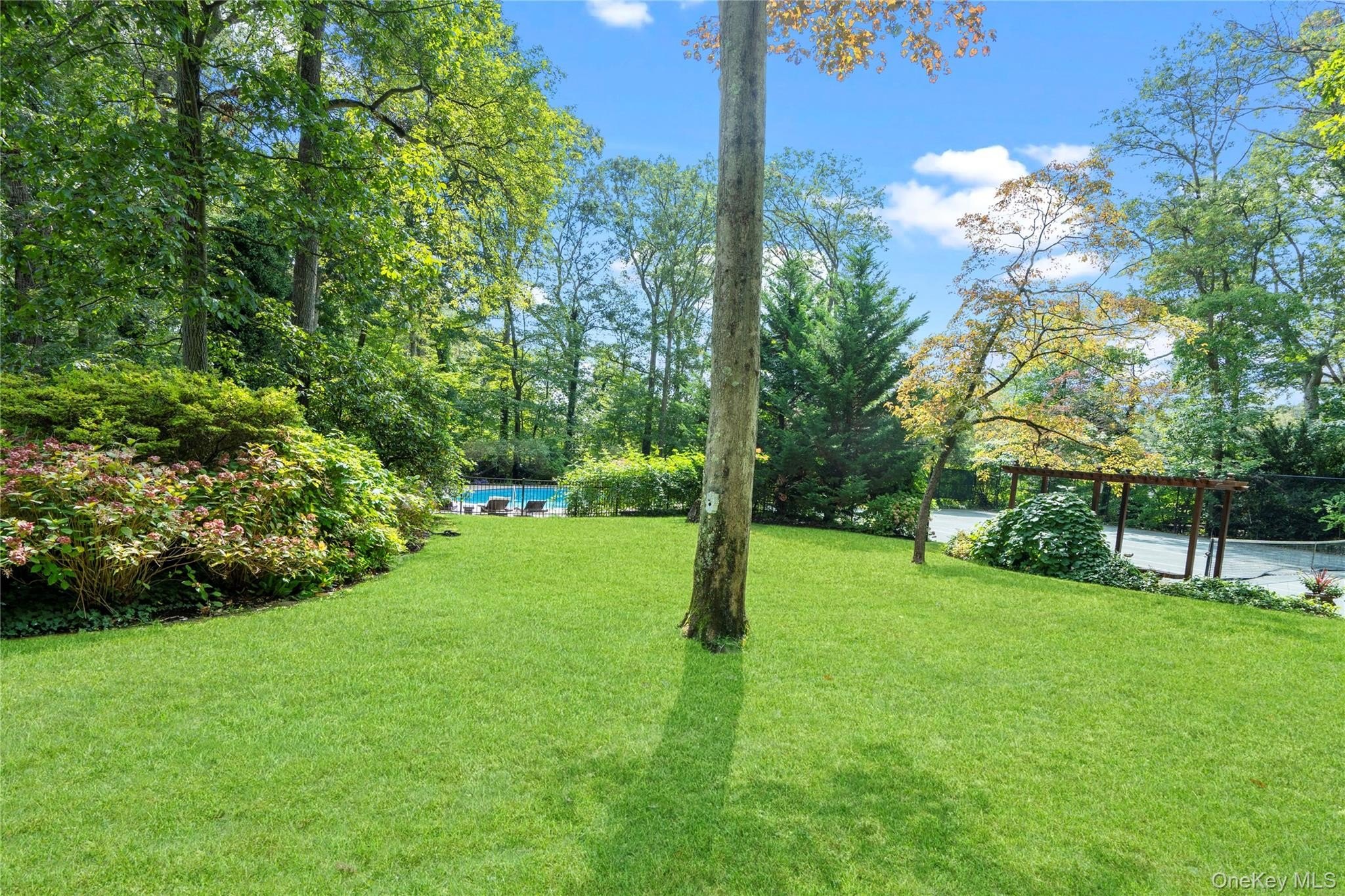Welcome to your own private paradise in the highly desirable Old Chester Hills neighborhood, which has remained a somewhat hidden gem - with only 3 entrances, little traffic, and beautiful canopied streets where charm and tranquility abound. This stunning 4-bedroom, 3.5-bath home offers 2,284 square feet of beautifully updated living space on a magical 1-acre oasis that will take your breath away. The moment you venture into the backyard, you'll feel transported to another world - a secluded sanctuary where mature perennial gardens create natural borders around an impressive array of outdoor amenities that dreams are made of. The yard is truly the star of this show - imagine hosting unforgettable gatherings around the huge in-ground heated pool with its charming pool house while challenging friends to a game on your private bocce court or tennis court. Multiple patios and walkways wind through the landscaped grounds, creating intimate spaces for morning coffee or evening cocktails. When the sun sets, the extensive lighting system transforms this outdoor wonderland into an enchanting nighttime retreat that's just as captivating as it is during the day. Inside, you'll discover thoughtfully updated spaces, including a dramatic great room with soaring high ceiling and a stunning stone floor-to-ceiling Vermont pecan marble fireplace that serves as the heart of the home. The formal dining room flows seamlessly into the recently refreshed eat-in kitchen. Fresh paint throughout and updated light fixtures add a modern touch to the home's classic charm. The main level welcomes you through an entrance foyer and features crown molding, built-in features, a cathedral ceiling, natural woodwork, recessed lighting, and an open floor plan perfect for entertaining. Upstairs, you'll find two comfortable bedrooms, a full bathroom, and a primary bedroom retreat with an en-suite bathroom and wall-to-wall custom closet. The versatile lower level is an entertainer's dream with a huge den featuring a second fireplace, large Pella quadruple french patio doors that open directly to the outdoor resort-like yard, a powder room with an expansive window and slate floor and walls, a spacious laundry room with ample storage, and a flexible 4th bedroom/office with separate entrance - perfect for guests or a home office. Additional features include a covered porch walkway, brand new roof, smart thermostats, entertainment cabinets, and plenty of storage throughout. The home also boasts hardwood and ceramic tile flooring, a full slab with crawl space, a partially finished attic, central air, oil heat, and a 2-car garage with commercial-grade shelving. Outdoor amenities include the regulation size tennis court as well as bocce court with har-tru surfaces, 6 person jacuzzi hot tub, oversized heated 25' x 50' free form/kidney shaped in-ground pool, playground, a basketball hoop, a fire pit, a pergola, a pool cabana with full bathroom (inlcuding shower) and wet bar, shed, Fido electric fence, wrought iron and steel ornamental fencing with gate around pool, a designated dog run, a wired security system, new Ring camera, 16-zone sprinkler system with new control panel and rain sensor, and Leafguard gutters. Located in the much sought-after Old Chester Hills neighborhood and award-winning Elwood school district, this private sanctuary offers the perfect blend of tranquil retreat and active lifestyle. With the high school just 1.7 miles away and nearby Berkeley Jackson County Park featuring a scenic 2.3-mile walking loop, and only minutes away from vibrant Huntington Village with The Paramount and Founder's Room, scenic Hecksher Park with Heckscher Museum of Art, and easy access to parkways, shopping, and dining, you'll enjoy both convenience and connectivity to community amenities - where every day feels like a vacation in your own idyllic haven. View the virtual tour to see this special home's seasonal beauty.