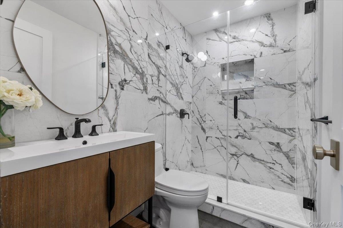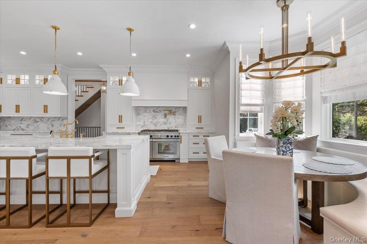 Welcome to 5 Gerry Lane, an extraordinary new construction in the prestigious Village of Lloyd Harbor. Set on two landscaped acres, this almost 8,500 sq. ft. custom residence was designed with today's modern lifestyle in mind, offering five en-suite bedrooms, 6.5 baths, and striking architectural details throughout. At the heart of the home is the chef's kitchen, featuring Thermador appliances, Calcutta Oro marble countertops, island and backsplash. The large center island has seating for four, a sunlit breakfast nook for six, and space for a dining table that can host twelve-ideal for both intimate gatherings and large-scale entertaining. The open floor plan flows effortlessly into the great room, while wide-plank wire-brushed white oak floors add warmth and sophistication throughout. A first-floor en-suite bedroom with direct yard access provides flexibility for guests or extended family. Upstairs, the primary suite is a true retreat, offering a sunlit walk-in closet and a spa-inspired bath with radiant-heated marble floors, soaking tub, and custom shower. Three additional oversized en-suite bedrooms complete the second level, with rear-facing suites opening to a glass-lined balcony overlooking the grounds. The finished lower level enhances the lifestyle with a recreation room, professional gym with full-height windows, and a driveway-accessed garage bay designed for the car enthusiast-perfect for showcasing rare automobiles. Outdoors, the home is framed by bluestone patios and walkways, Belgian block curbing, a crushed bluestone driveway, in-ground sprinklers, and lush landscaping. A circular driveway with automatic gates provides additional privacy and presence. Residents enjoy membership in the exclusive Hawk Beach Association, with private beach access and dock use for moored boats. Ideally located near Caumsett State Park, village beaches, and the shops and dining of Huntington and Cold Spring Harbor, with the Cold Spring Harbor train station offering a convenient 55-minute commute to Manhattan. 5 Gerry Lane delivers the perfect blend of luxury, lifestyle, and location in one of Long Island's most coveted communities.