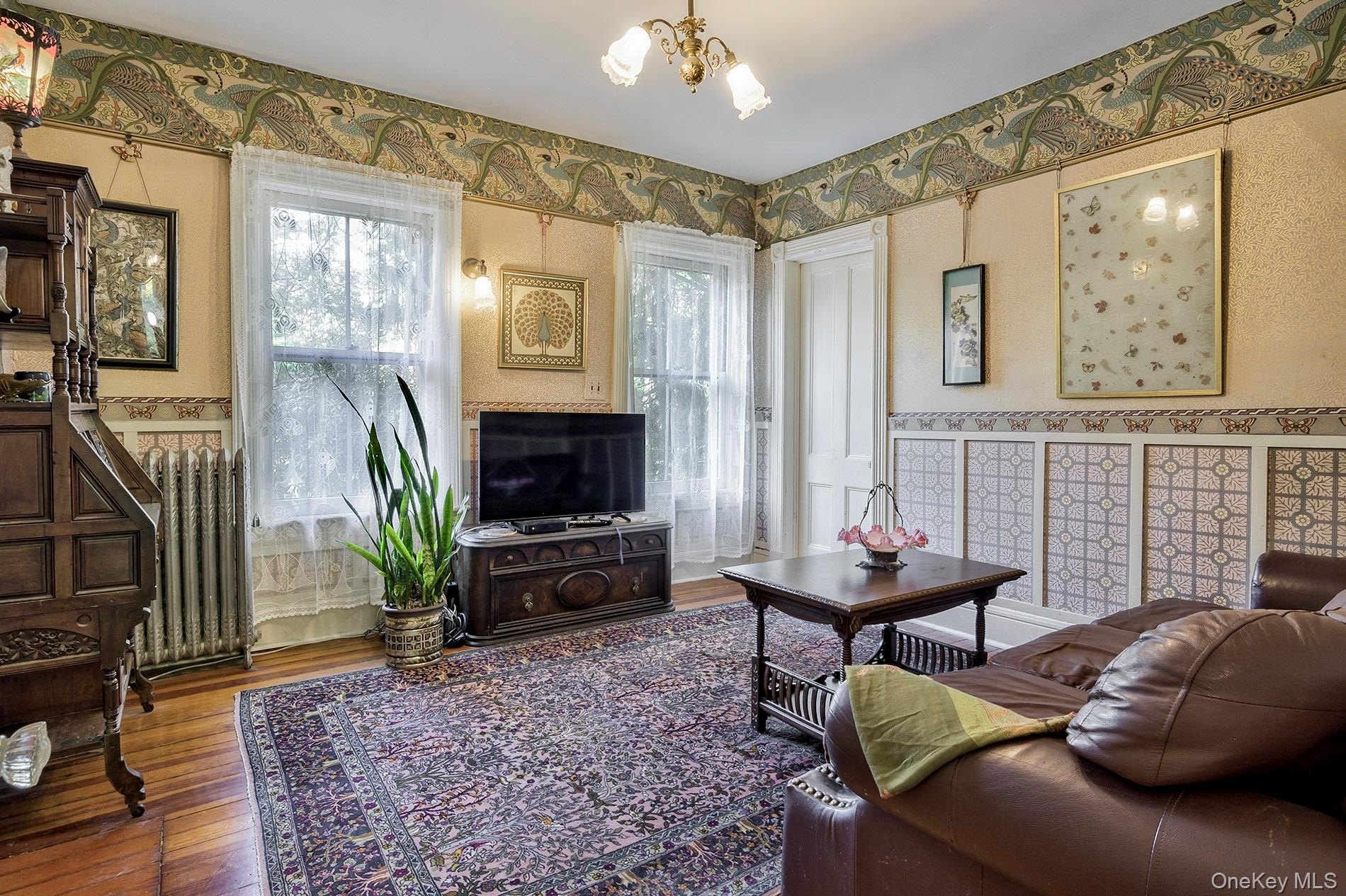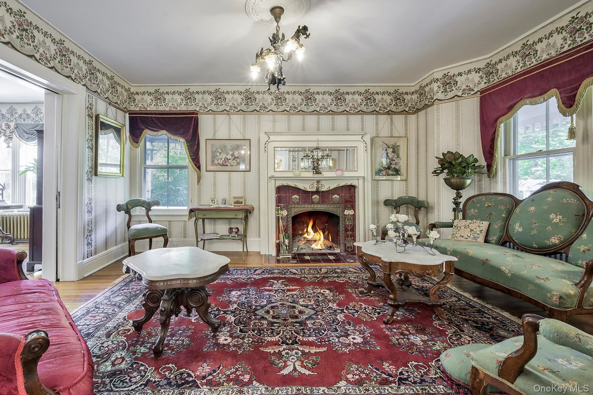 Step into timeless elegance at 150 Ocean Avenue, Northport, a Queen Anne Victorian designed by renowned architect George F. Barber. This Painted Lady has been lovingly preserved with nearly all original moldings, doors, windows, and heart-pine floors. Period wallpapers, restored plaster medallions, and antique lighting create a home rich in historic detail, while thoughtful updates-gourmet kitchen with Crown Point cabinetry, Viking range, marble-tiled baths-provide modern comfort. The striking turret with its octagonal "Pilot House" offers a unique retreat, while spacious parlors, dining room, and wraparound porch invite gatherings. The home offers an updated Roof (1 year new), Heating System (1 month new), Driveway (2 weeks new), Electrical Panel. The home sits on a mostly level 1.1 acre plot, surrounded by mature trees and steeped in history, this rare offering blends architectural beauty, modern updates, and an enduring sense of place. LOW Taxes too $13,000! Prime location; in the heart of historic Northport Village; quaint shops, delicious restaurants and cozy pubs. Spend the morning at the farmers market, stroll the harborside park, and take in a show at the theater in the evening. A wonderful community to plant roots and grow dreams. A remarkable residence to cherish. Come see why 150 Ocean Avenue is more than a home-it is a legacy.