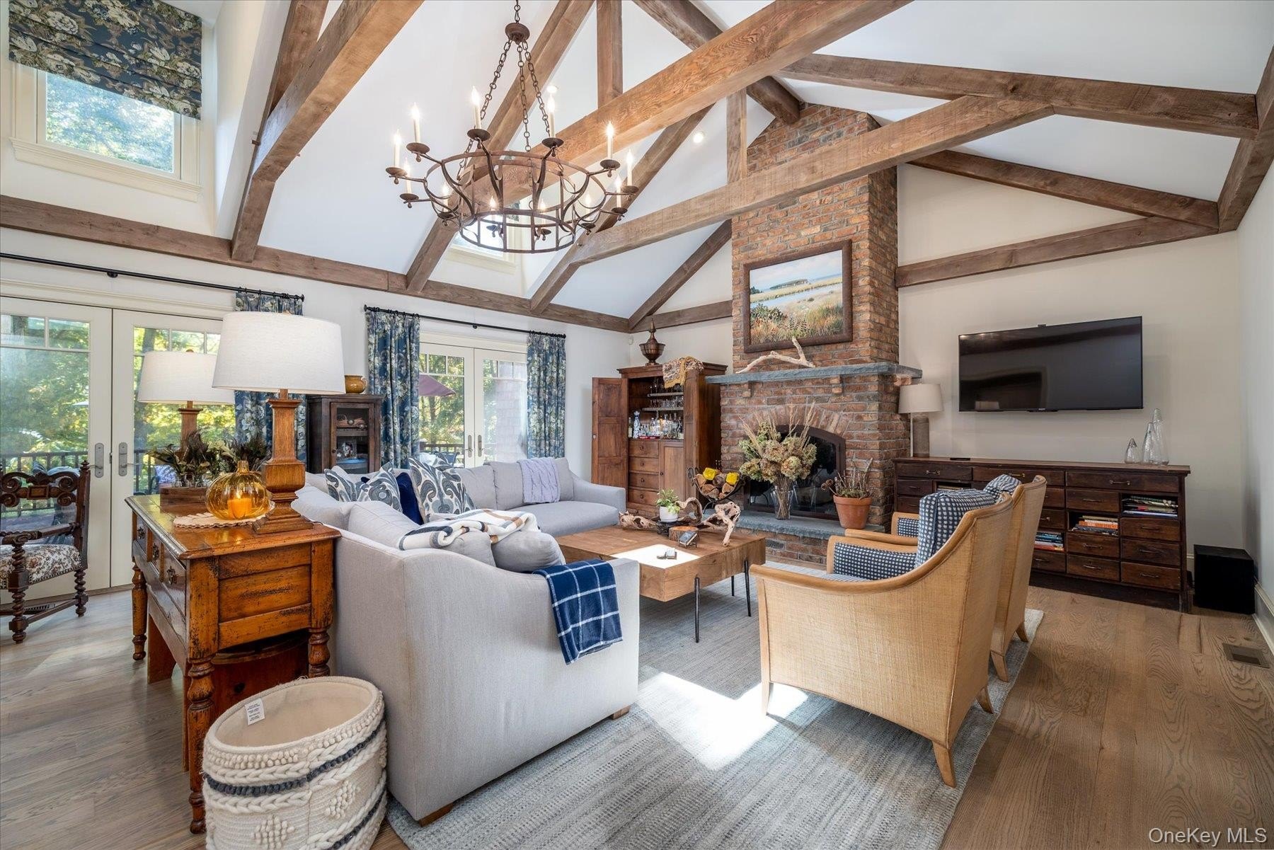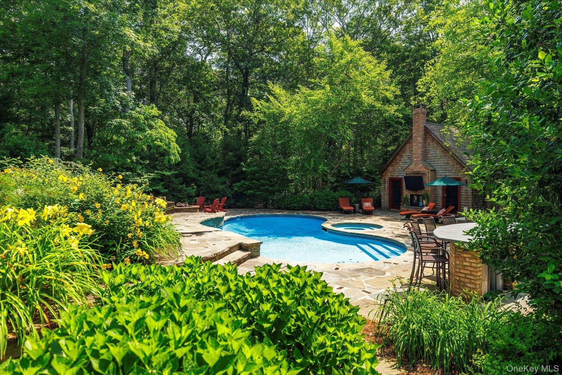 Secluded, Luxury Style Estate & Compound with Resort-Style Living In Serene Natural Setting Set on nearly 5 private acres surrounded by the 400-acre Laurel Lake Preserve and bordered by state parkland, this expansive rustic-traditional Cape-style compound offers exceptional privacy and year-round comfort. With approximately 9,900 square feet of living space, the residence blends timeless design with a layout ideal for both entertaining and everyday living. The home features 6 bedrooms, 5 full baths, and 2 half bath. At its center is a chef's kitchen with premium appliances, center island, and a well-appointed butler's pantry. Generous dining and living areas with 2 fireplaces flow seamlessly to the outdoors -including a screened-in porch, and wrap-around deck overlooking the beautifully landscaped lawn, backyard, and outdoor entertainment area. The finished lower level offers walk-out access and includes a fitness studio, climate-controlled 2,250-bottle wine cellar, home theatre with built-in projector and sound system, home office, custom bar, and entertainment area with booth seating. A large bonus room above the garage and an unfinished attic provide additional flexible space with endless possibilities - perfect for a creative studio, private guest retreat, or future expansion. Outdoors, resort-style living continues around the heated saltwater pool and spa, complemented by a 400-square-foot pool house with outdoor shower, dual-sided fireplace, built-in TV, fire-pit area, and custom outdoor grill. The landscaped grounds include space for a tennis court, a pond, private parking area near the entrance, and a network of private trails within the property perimeter leading directly to Laurel Lake Preserve hiking paths. In addition to hiking, the scenic Laurel Lake Preserve is also considered a popular destination for fishing, canoeing, kayaking, and birdwatching - offering endless ways to enjoy nature just beyond your doorstep. Additional features include a storage shed, partial fencing, and manicured lawns and gardens ideal for gatherings and leisure. Located just minutes from local farm stands, vineyards, golf courses, public beaches, the hamlet, restaurants, and public transportation, this secluded estate offers the ultimate North Fork retreat - combining natural beauty, recreation, and refined living.