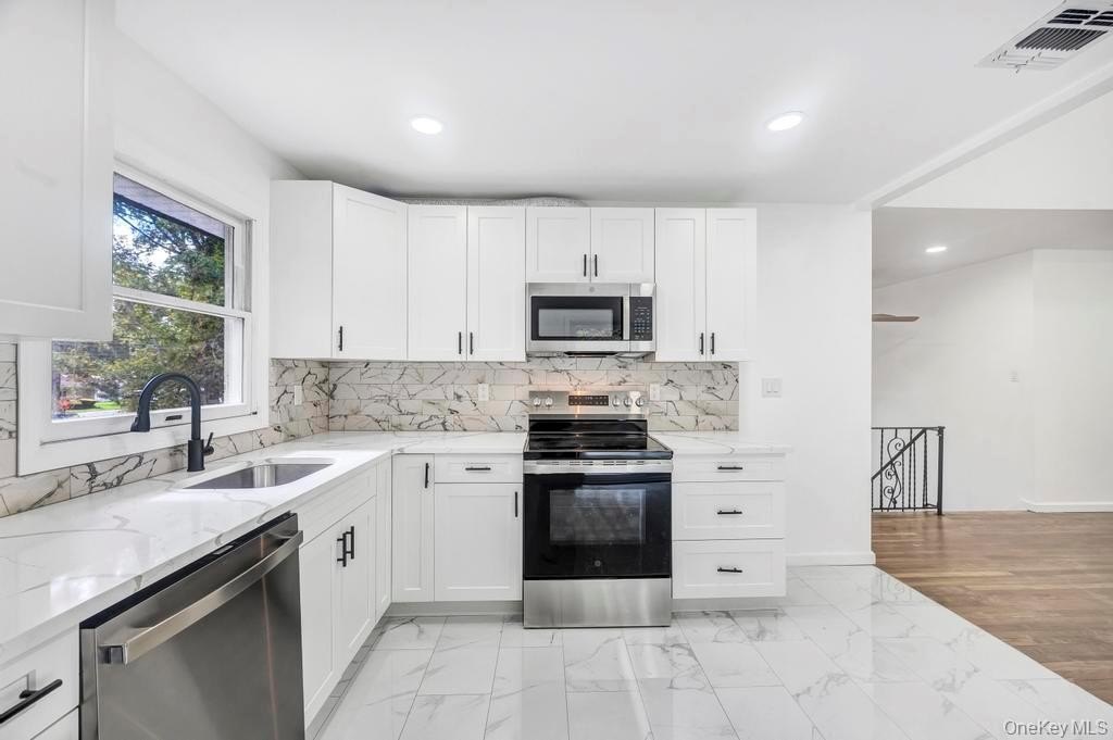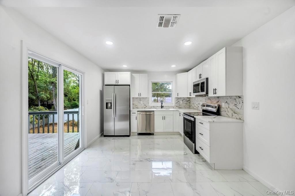 Welcome to 37 Cedar Branch, Middle Island! Discover this beautifully renovated Hi-Ranch located in the heart of Middle Island - where modern upgrades meet comfort and functionality. This stunning home offers 5 spacious bedrooms, including a primary suite with a Jack & Jill bathroom, and an open-concept living area with soaring high ceilings that fill the space with natural light. The modern kitchen features sliding glass doors that lead to a large upper deck, perfect for entertaining or enjoying peaceful sunsets. On the lower level, you'll find a versatile living space - ideal for extended family, a home office, gym, or guest suite - and a potential Mother-Daughter setup with proper permits. The area also includes a fully finished laundry room, private entrance, and sliding doors leading to a second deck and spacious backyard, perfect for gatherings or relaxation. Recent updates include: New roof & siding, Upgraded electric system & panel, New plumbing throughout, Brand new AC system,Fresh paint & flooring - move-in ready! Enjoy convenient access to Middle Country schools, Cathedral Pines County Park, Prosser Pines Nature Preserve, local shopping, restaurants, and major highways.