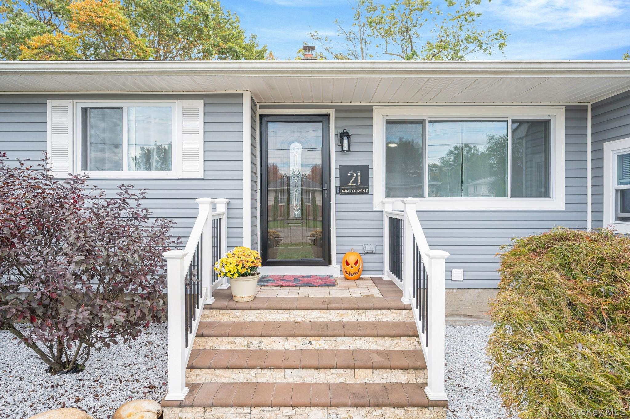 Welcome To 21 Francisco Ave! Experience modern living in this fully renovated 4-bedroom, 3-full-bath expanded ranch with a partial basement. The primary bedroom has a primary en-suite, a beautiful soak in tub, full shower, and his or her sinks. The kitchen has stainless steel appliances, granite counter tops, and spacious layout. The dining room can fit all of your guests and the built in electrical fire place compliments the setting perfectly. This move-in ready home combines comfort, and efficiency, perfectly situated on a quiet dead-end street with southern exposure for abundant natural light. Located just four blocks from the LIRR, two blocks from bus stops, and within close proximity to local schools and transportation, this home offers easy access to everything you need. The partial basement includes bonus space. Potential mother/daughter with proper permits. There are sooooooo many upgrades such as tesla solar panels with battery back up, a new roof, new windows, new cesspool, new siding, tankless hot water system, and paver driveway. New storage shed and fresh landscaping. Freshly painted interior. Your dream home awaits but don't wait too long or she'll be gone!