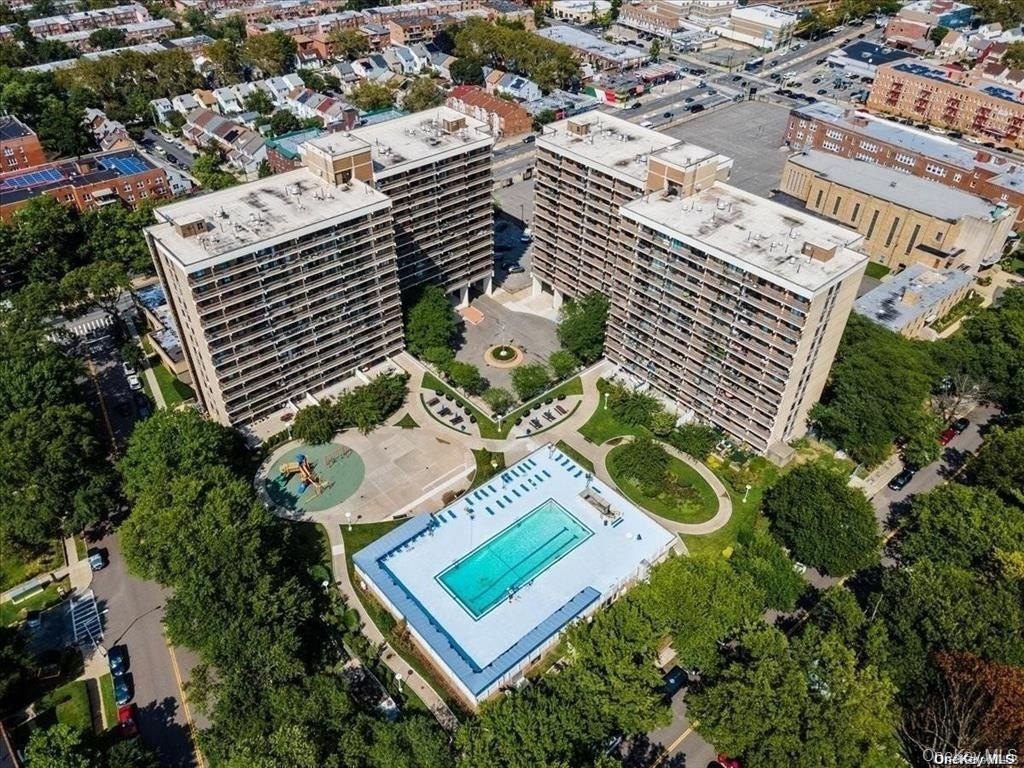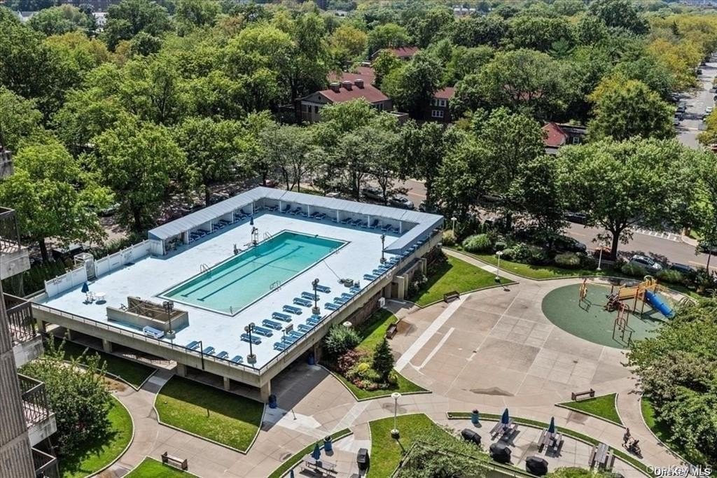 Discover refined high-rise living in Queens at 152-18 Union Turnpike Unit 9P, an exceptional studio-style residence within the distinguished Village Mall at Hillcrest. This modern elevator condominium offers an enviable combination of value, location, and amenity-rich lifestyle in the heart of Kew Garden Hills, just minutes from Union Turnpike's vibrant dining, retail, and transit corridor. Floor-to-ceiling expanses of glass frame sweeping views of treetops and skyline across the building's elevated terrace deck. Beyond your private living space, the building delivers an upscale residential experience: a 24-hour doorman, sprawling Olympic-size outdoor pool, landscaped promenade, fully equipped fitness center, children's playground, barbecue areas, and laundry rooms on every floor. Unit 9P includes its own balcony, in-building indoor parking, and a concrete-floored layout designed for quiet living and maximum flexibility. With express buses to Manhattan steps from the front door and quick access to the Grand Central and Van Wyck expressways, this residence places you connected to the city yet apart in a peaceful, amenity-rich community. Whether you are stepping into the market for the first time or looking for a streamlined urban base, this home offers an exceptional opportunity.