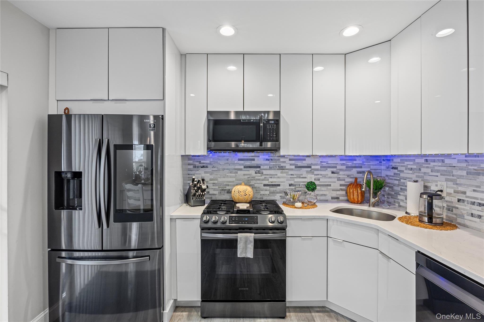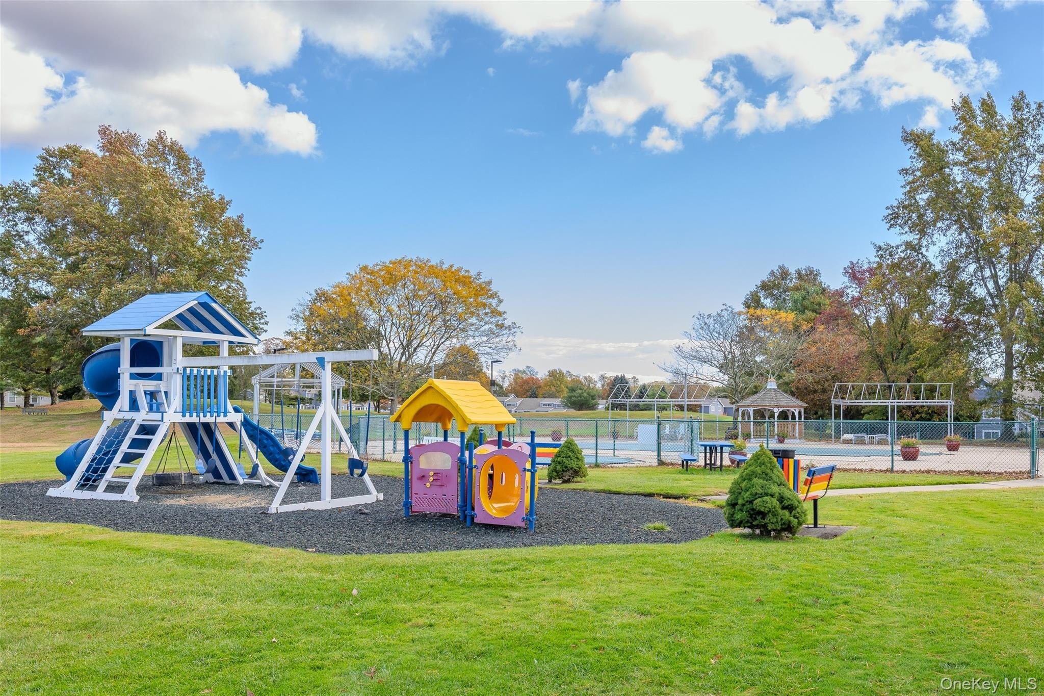 This tastefully remodeled townhome was designed with style and functionality in mind, featuring state-of-the-art appliances and modern finishes throughout. The spacious living and dining areas flow seamlessly to sliding glass doors that open to a large private patio with peaceful, unobstructed views-perfect for relaxing or entertaining. The convenience of a first-floor primary bedroom with ensuite bath and first-floor laundry adds to the home's easy living design, while the second floor includes a comfortable loft-style sitting area, an additional large bedroom with a walk in closet and another full bath. Set in a community that feels like a year-round vacation, residents enjoy a golf course, two welcoming clubhouses, indoor and outdoor pools, a fitness center, and countless clubs and activities to share with friends and neighbors. Move right in and experience the best of Long Island living - everything you need is here at 4 Cari Lane!