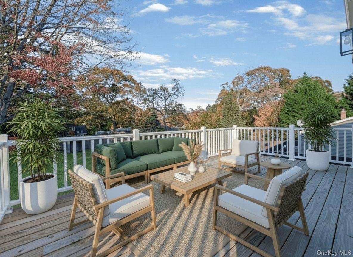 Discover the perfect balance of luxury, comfort, and convenience! Ideally located in a prime location in the Middle Country School District, New Lane Elementary School, Dawnwood Middle School and Cemtereach High School. This newly renovated 4-bedroom, 2-bath home showcases exceptional craftsmanship and modern design throughout. Step inside to an open, sun-filled floor plan that seamlessly connects the living, dining, and kitchen areas-perfect for both everyday living and entertaining. The gourmet kitchen is a true showstopper, featuring sleek white shaker cabinetry, gleaming quartz countertops, and premium stainless-steel appliances. Every detail has been thoughtfully updated, including all-new mechanicals, plumbing, electrical, and HVAC, a new roof, windows, and vinyl siding, and secure PVC fencing for added privacy. The interiors are finished with luxury vinyl plank flooring, elegant custom tilework in both bathrooms with frameless glass shower doors, and a convenient dedicated laundry area. The dining area opens effortlessly to a private rear deck, providing the perfect space for outdoor dining or relaxation. With its walkable location near local amenities, schools, shops, and dining, this home delivers a truly turnkey lifestyle of ease and sophistication. Don't miss this rare opportunity.