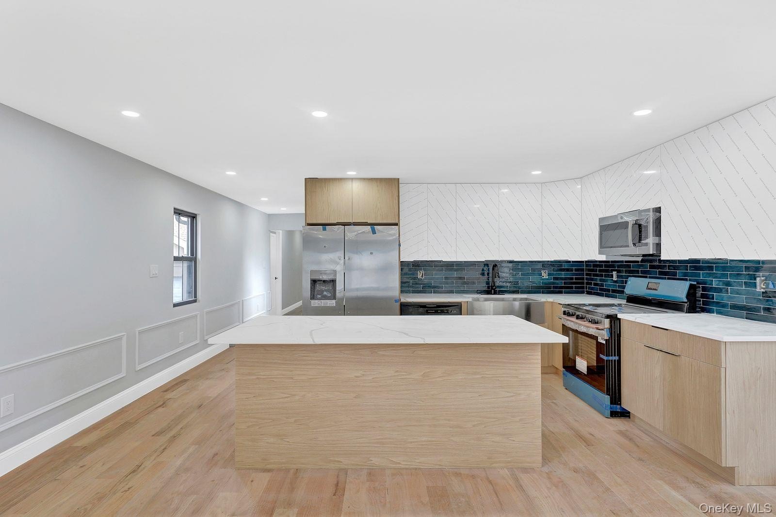 Space, style & modern luxury come together at 338 Calhoun Avenue. A Charming, newly renovated detached single-family Hi-Ranch nestled on a beautiful tree lined street of Throggs Neck neighborhood in the Bronx has a unique MOTHER-DAUGHTER set up. This turnkey, move in ready property is the perfect combination of high-end finishes, modern technology, impeccable details and will captivate you from the moment you arrive with its warm & welcoming energy. Open the door and enter an expansive sun-drenched Living Room and Dining Area which provides great space for entertaining. Dining area is overlooked by chefs' granite Kitchen equipped with floor to ceiling cabinetry & boast full-sized stainless-steel appliances. Fully tiled Windowed Bathroom equipped with state-of-the-art wall & floor tiles. Spacious Three Bedrooms equipped with ample closet space. Master bedroom is equipped with a private en-suite. Lower street-level with separate entry is very Spacious, Full Finished Basement with Full Bathroom and Kitchenette and easily be used as an in-law Two-Bedroom suite. This Beautiful House has been fully gutted and remodeled by an expert team of contractors featuring select wide hardwood flooring, recessed lighting, brand new electrical, heating and plumbing Conveniently located with close proximity to major transportation, schools, shopping centers, restaurants, cafes, restaurants, and many other vibrant neighborhood amenities. This "PRICED TO SELL" Fully Renovated House can be yours today! Sellers are very motivated. ALL OFFERS WILL BE CONSIDERED. Less expensive than renting.
