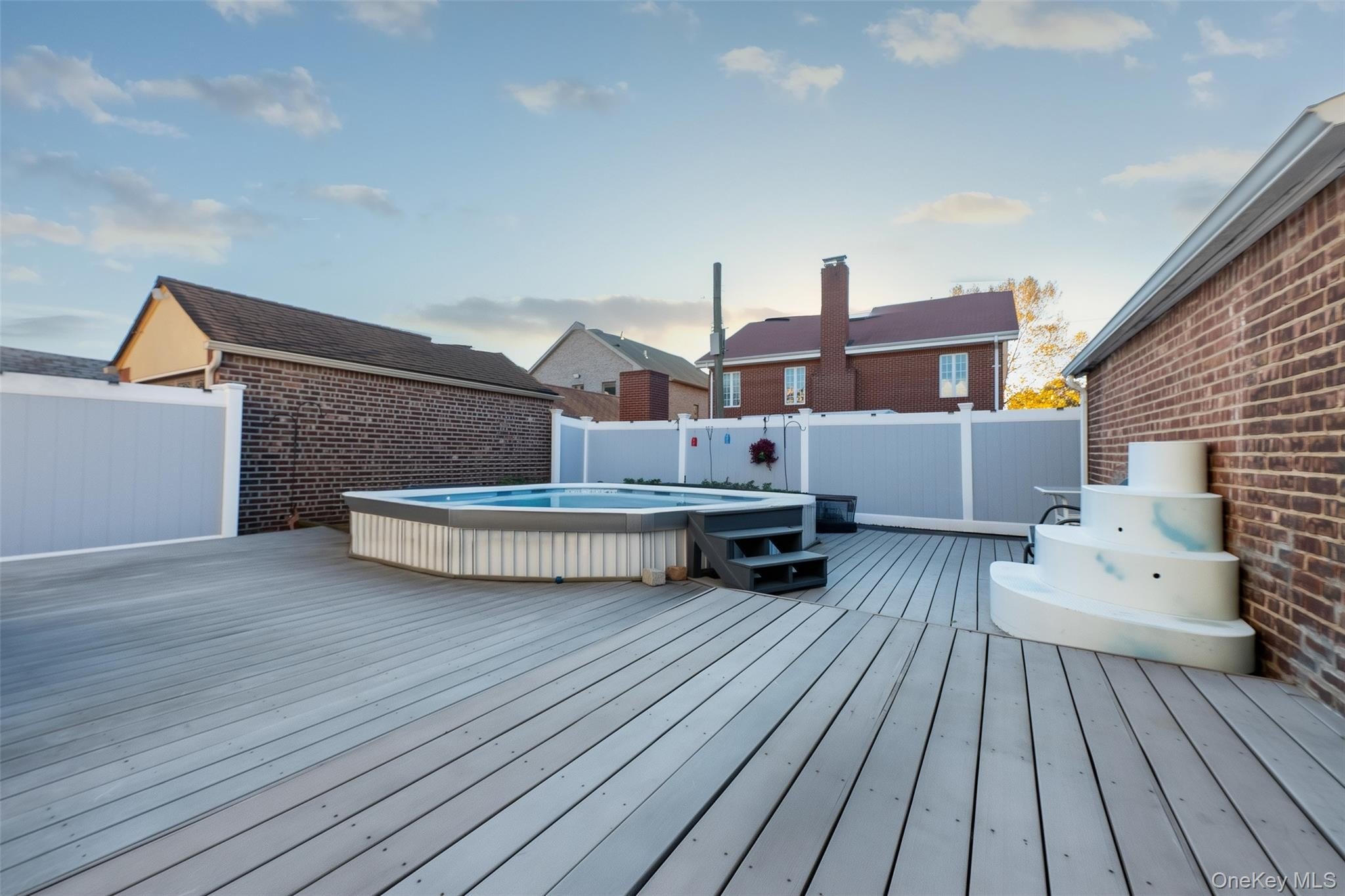 Welcome to this charming Cape-style home in the heart of Fresh Meadows! This beautifully maintained residence features four spacious bedrooms and three full bathrooms, offering ample space for comfortable living. Step into a warm and inviting Living Room with a cozy fireplace, Formal dining Room, and an eat-in kitchen. The home also boasts updated windows and efficient gas heating. The fully finished basement provides a versatile space perfect for recreation or a home office. Outside, enjoy a generous backyard complete with a spacious deck and a half in-ground pool for summer fun. A detached garage adds both convenience and extra storage. Located in top-rated School District 26, this home is close to major transportation, Cunningham Park, highways, schools, and St. John's University.