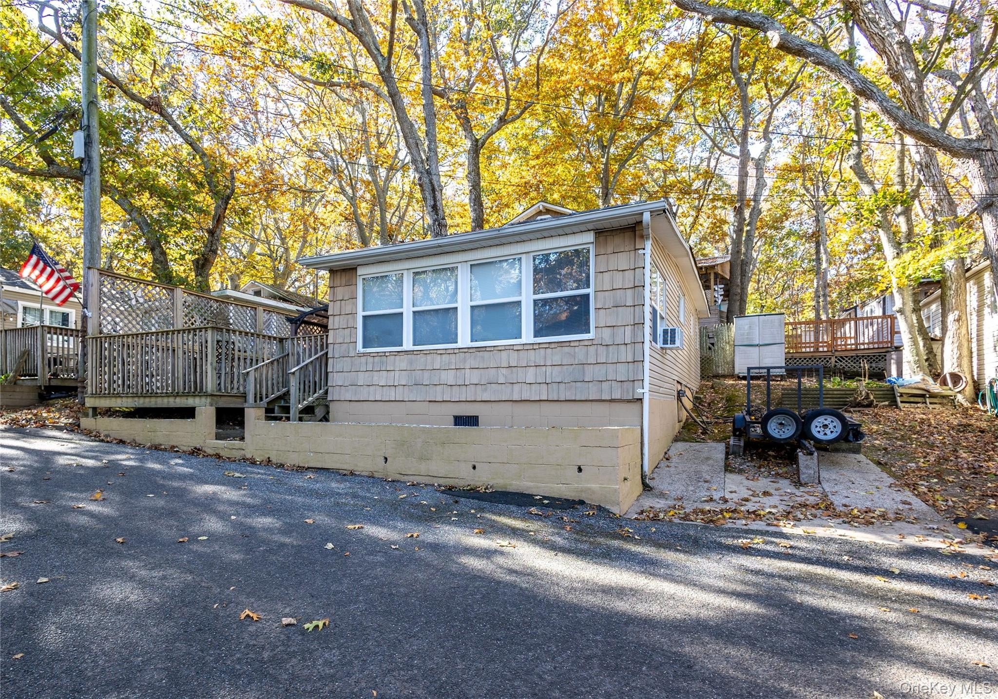 Location Location! This cottage is very close to the path to the Beach & Offers Peak A Boo Views from its Living Room & Deck! With Numerous Updates throughout you will see the value in this Vacation Home Located in Desirable Seasonal Only Community of Woodcliff Park Open April 15-October 15. Updates include Tile Floors, Updated Kitchen W/Built in Pantry, Granite Counters, & Several Updated Appliances, All New Furniture in Most of the home included in the sale, 2 Ac Units, New Plumbing pipes, & Tastefully Renovated Bathroom, Laundry For Convenience, & Spacious Entertainers Deck W/Gazebo Accent on Back for those that want some shade. Enjoy the beach or one of the numerous other local attractions like Splish splash water park, Wine Country, Outlet Shopping, Golfing, Horseback Riding, Fresh Farm Stands, Atlantis Aquarium & More. Start Making Memories to Last a Lifetime today. Land Is Leased at Approx $8k annually. Cash Sales Only.