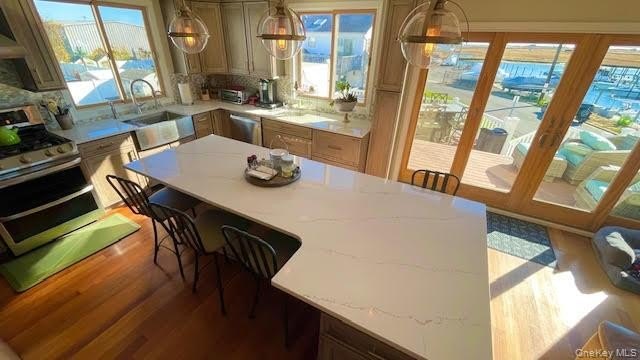 Embrace the South Shore lifestyle in this beautifully updated Colonial, built in 2002 .A rare newer home in an area known for its classic waterfront charm. with over 2,200 square feet of living space, 4 bedrooms, and 2 full baths, Custom built ins, cathedral ceilings ,ceiling fans ,chef's kitchen his and hers closets ,sliders out to magnificent panoramic bay views, recessed lighting, storage, vaulted ceilings, granite countertops and full garage. This home offers the perfect balance of modern comfort ,phenomenal updates and coastal serenity with sweeping south shore Bay views! Perched high and dry in 2002 this home ensures extremely low flood premium! Located south overlooking the great south bay, you'll enjoy sweeping water views and refreshing sea breezes that make every day feel like a vacation. The thoughtfully designed layout includes a flexible living area ideal for hosting guests, creating a private retreat, or setting up a home office offering comfort and privacy under one roof. From the inviting kitchen and spacious gathering rooms to the well-appointed updates throughout, every detail reflects pride of ownership with a perfectly positioned south facing deck that can host friends and family while taking the serene open bay views. 1 car garage 4 car driveway, and low taxes under $13,000 after STAR, YES YOU HAVE READ THAT CORRECTLY! A location surrounded by waterfront beauty make this an exceptional find for those who dream of living close to the shore with plenty of opportunity to keep a boat close by without the burden, responsibility, upkeep and cost associated with waterfront or bulkheading . Discover the space, views, and lifestyle that make the South Shore so special! This is your opportunity A home that truly brings it all together. Opportunity is not a lengthy visitor!