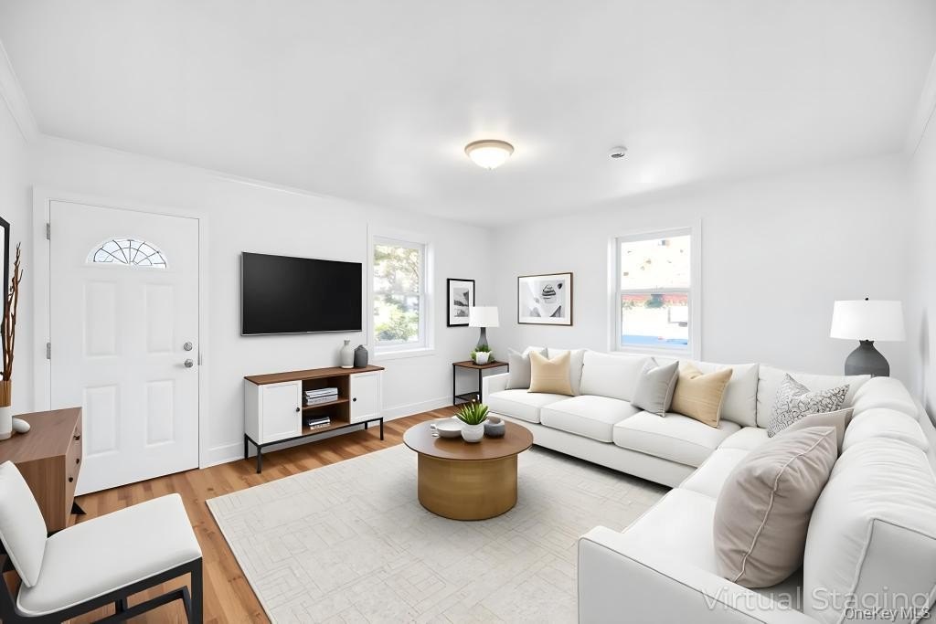 Welcome to this beautifully renovated inline ranch in a prime Central Islip location. This move-in ready home features two spacious bedrooms, one updated bath, a generous living room, and an open eat-in kitchen complete with new cabinets and countertops. A full unfinished basement offers excellent storage and future possibilities, and the detached garage adds valuable convenience. Situated minutes from major expressways and highways, shopping, convenience stores, schools, and public transportation, this home provides exceptional accessibility. Central Islip amenities include a local golf course, nearby universities, and several rapidly developing neighborhoods, making this an area with strong growth and community appeal. A must-see property offering comfort, value, and incredible convenience.